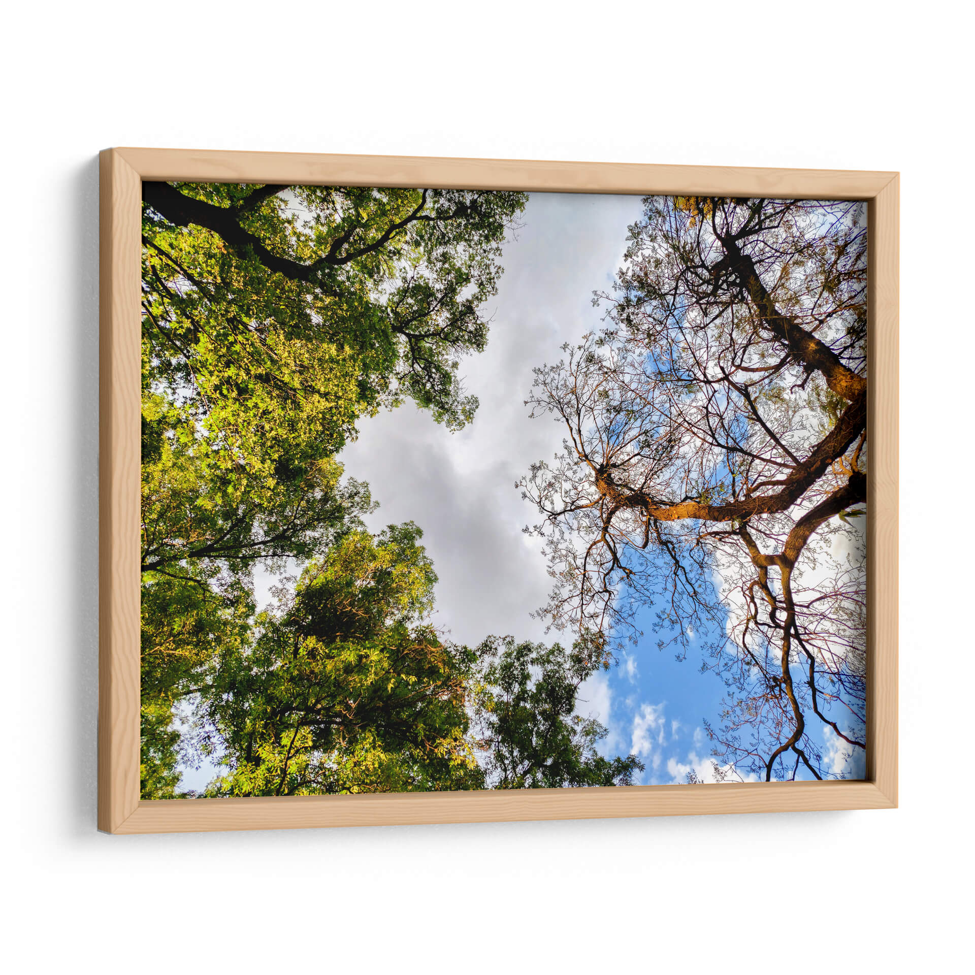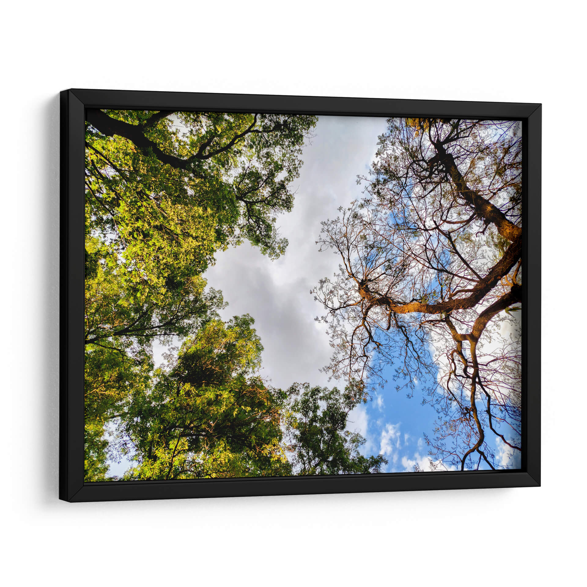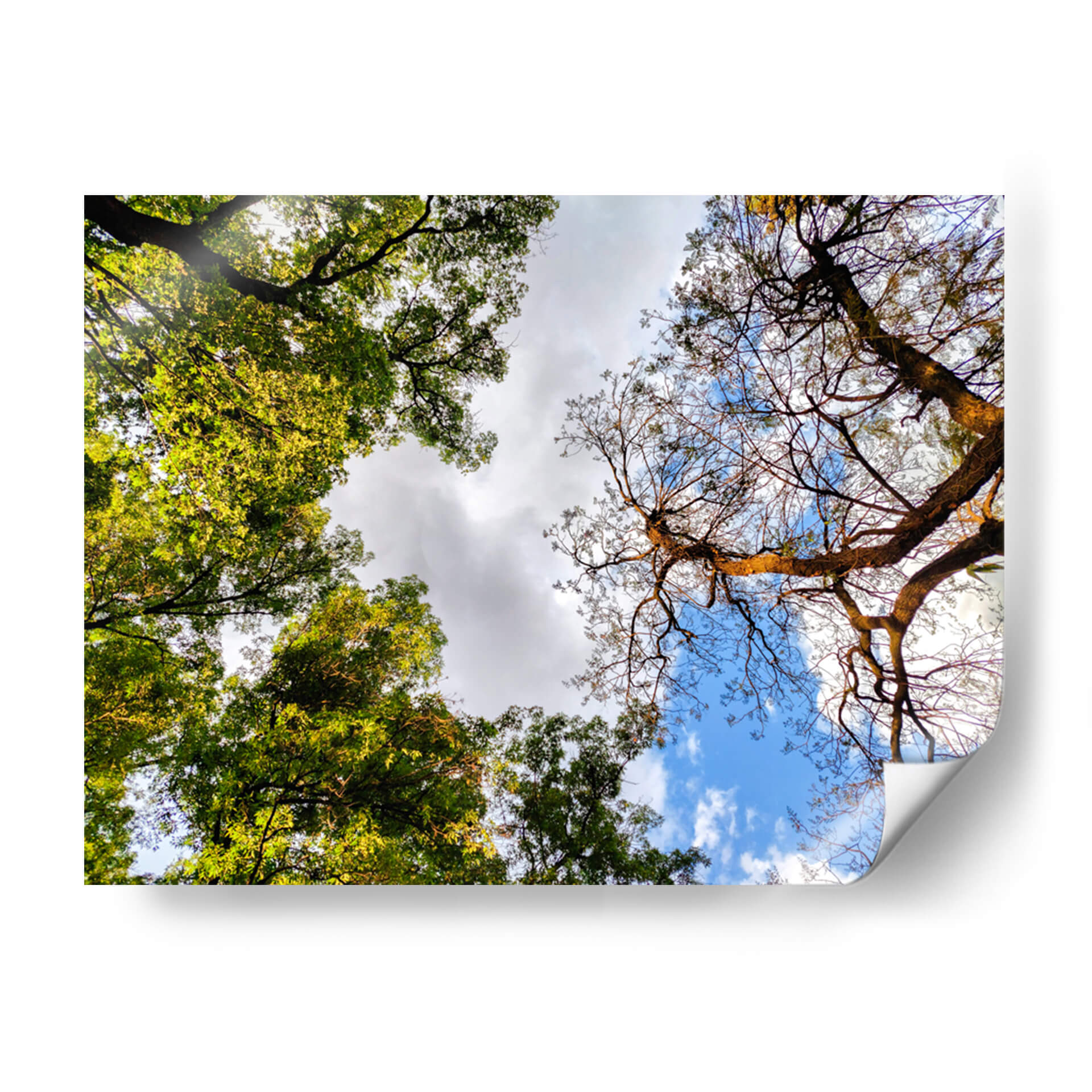 Sumérgete en la majestuosidad de la naturaleza con "Dualidad II", una obra de arte que captura la perspectiva única de mirar hacia el cielo a través de un dosel de árboles. La imagen te transporta a un bosque sereno, donde las ramas frondosas y verdes de un lado contrastan con la intrincada red de ramas desnudas y ocres del otro. La luz del sol se filtra a través del follaje, creando un juego de sombras y brillos que añade profundidad y realismo a la escena. El cielo azul vibrante, salpicado de nubes algodonosas, actúa como un lienzo natural que realza la dramática forma de los árboles. Esta pieza es ideal para quienes buscan infundir en su hogar u oficina una sensación de conexión con la naturaleza, aportando calma y una dosis de belleza orgánica. "Dualidad II" es más que una simple decoración; es una ventana a la tranquilidad del mundo natural, perfecta para salones, dormitorios o espacios de trabajo que necesiten un toque de serenidad y sofisticación. Descubre la armonía entre la exuberancia y la desnudez, la vida y la quietud, en este evocador cuadro decorativo. Una elección excepcional para amantes del arte y la naturaleza.