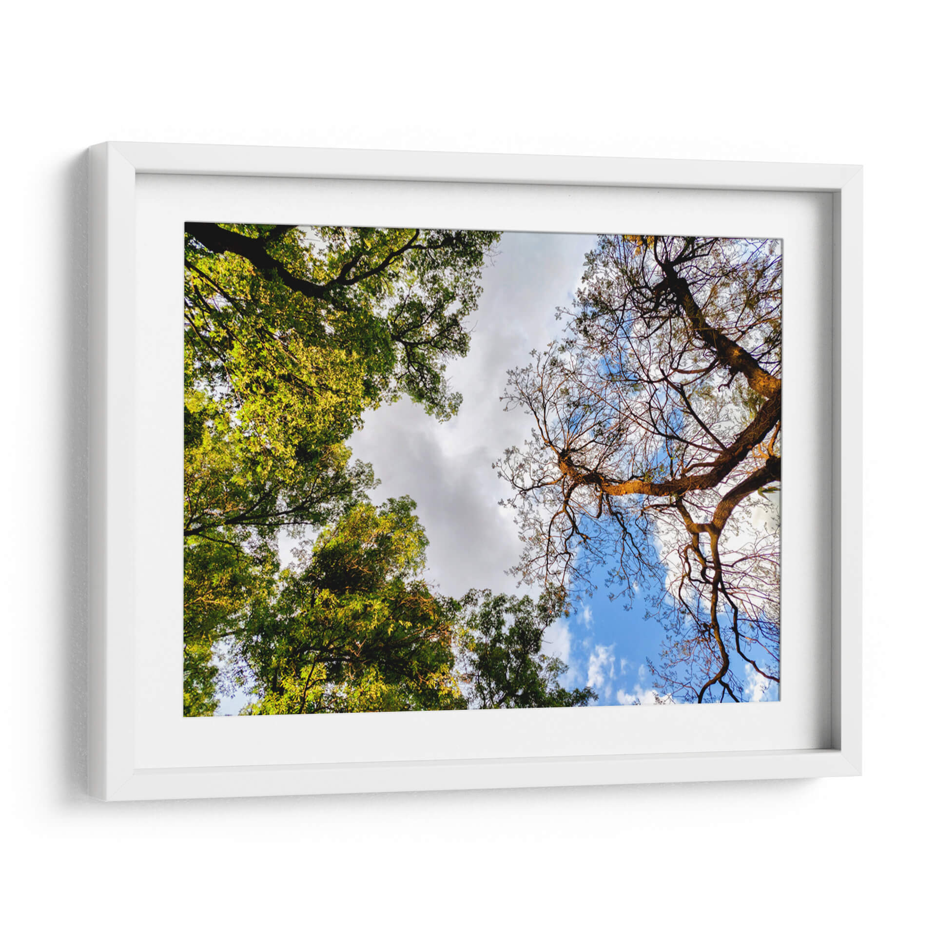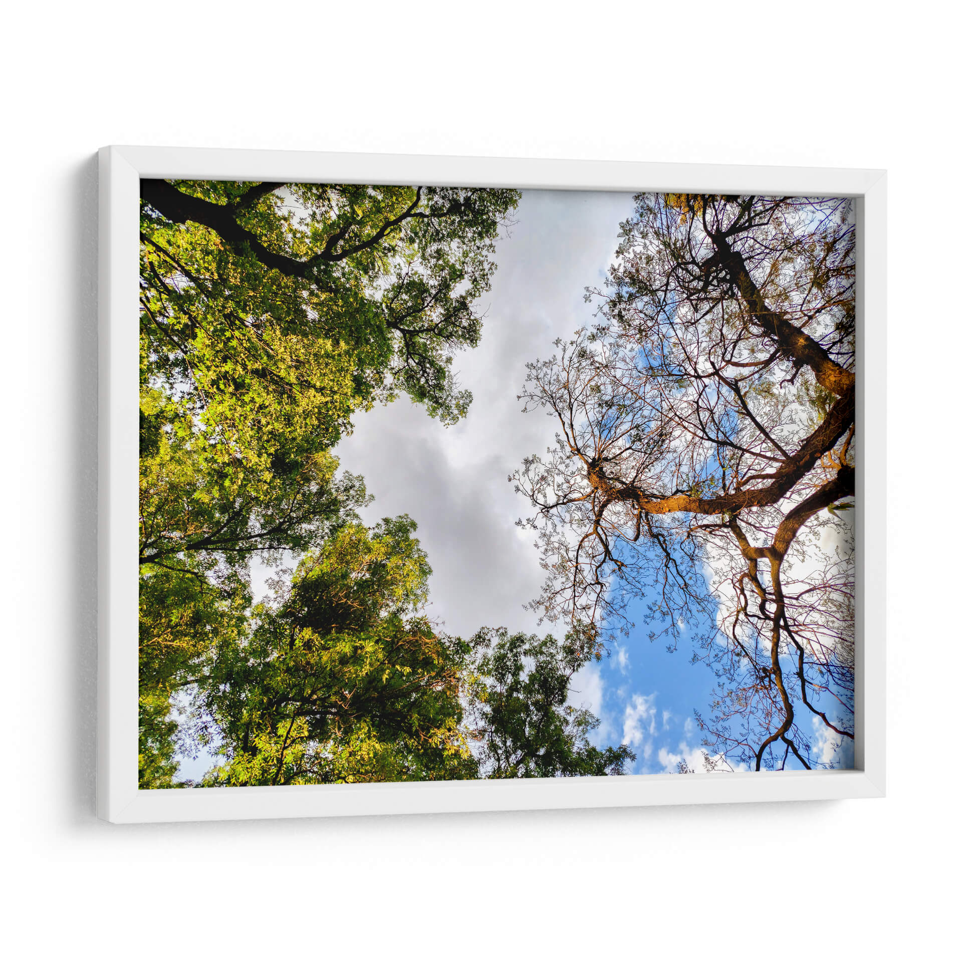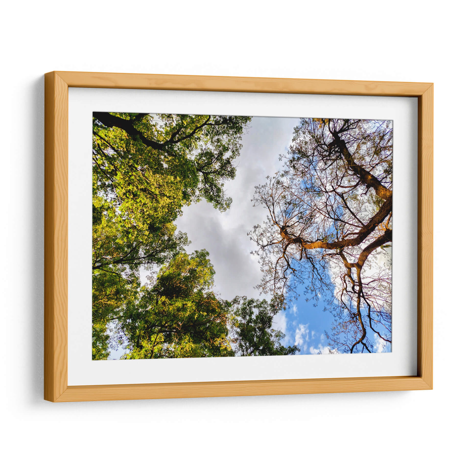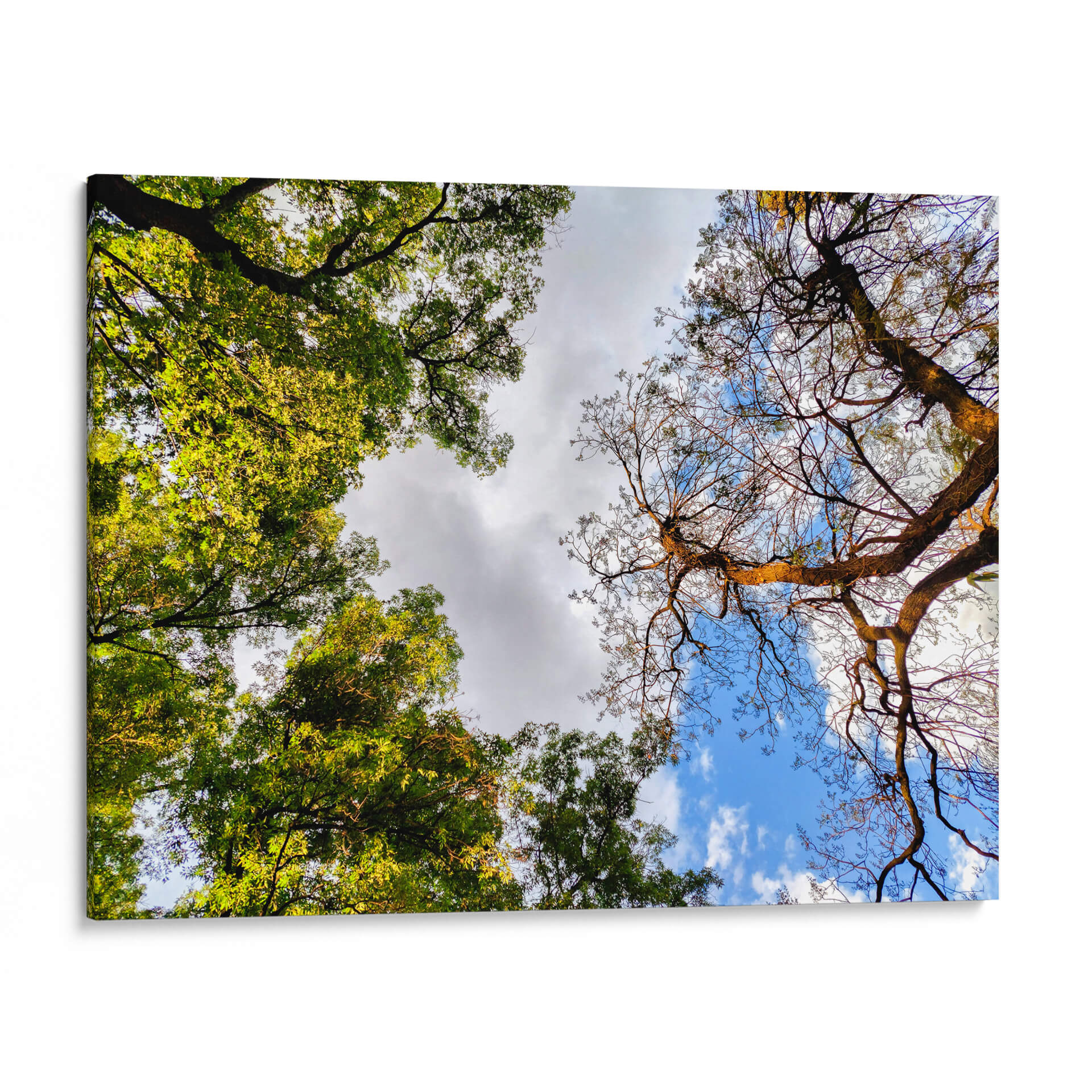 Sumérgete en la majestuosidad de la naturaleza con "Dualidad II", una obra de arte que captura la perspectiva única de mirar hacia el cielo a través de un dosel de árboles. La imagen te transporta a un bosque sereno, donde las ramas frondosas y verdes de un lado contrastan con la intrincada red de ramas desnudas y ocres del otro. La luz del sol se filtra a través del follaje, creando un juego de sombras y brillos que añade profundidad y realismo a la escena. El cielo azul vibrante, salpicado de nubes algodonosas, actúa como un lienzo natural que realza la dramática forma de los árboles. Esta pieza es ideal para quienes buscan infundir en su hogar u oficina una sensación de conexión con la naturaleza, aportando calma y una dosis de belleza orgánica. "Dualidad II" es más que una simple decoración; es una ventana a la tranquilidad del mundo natural, perfecta para salones, dormitorios o espacios de trabajo que necesiten un toque de serenidad y sofisticación. Descubre la armonía entre la exuberancia y la desnudez, la vida y la quietud, en este evocador cuadro decorativo. Una elección excepcional para amantes del arte y la naturaleza.