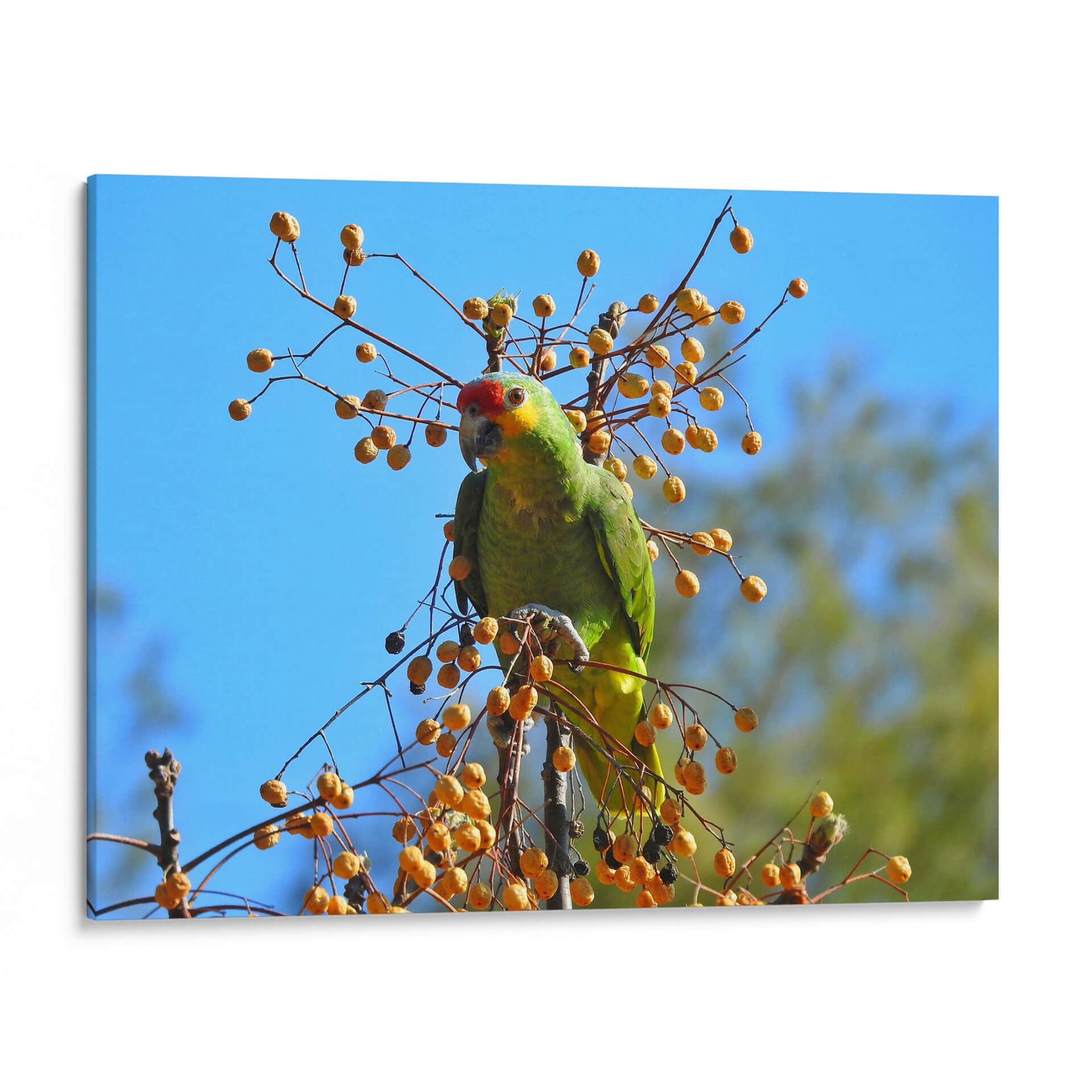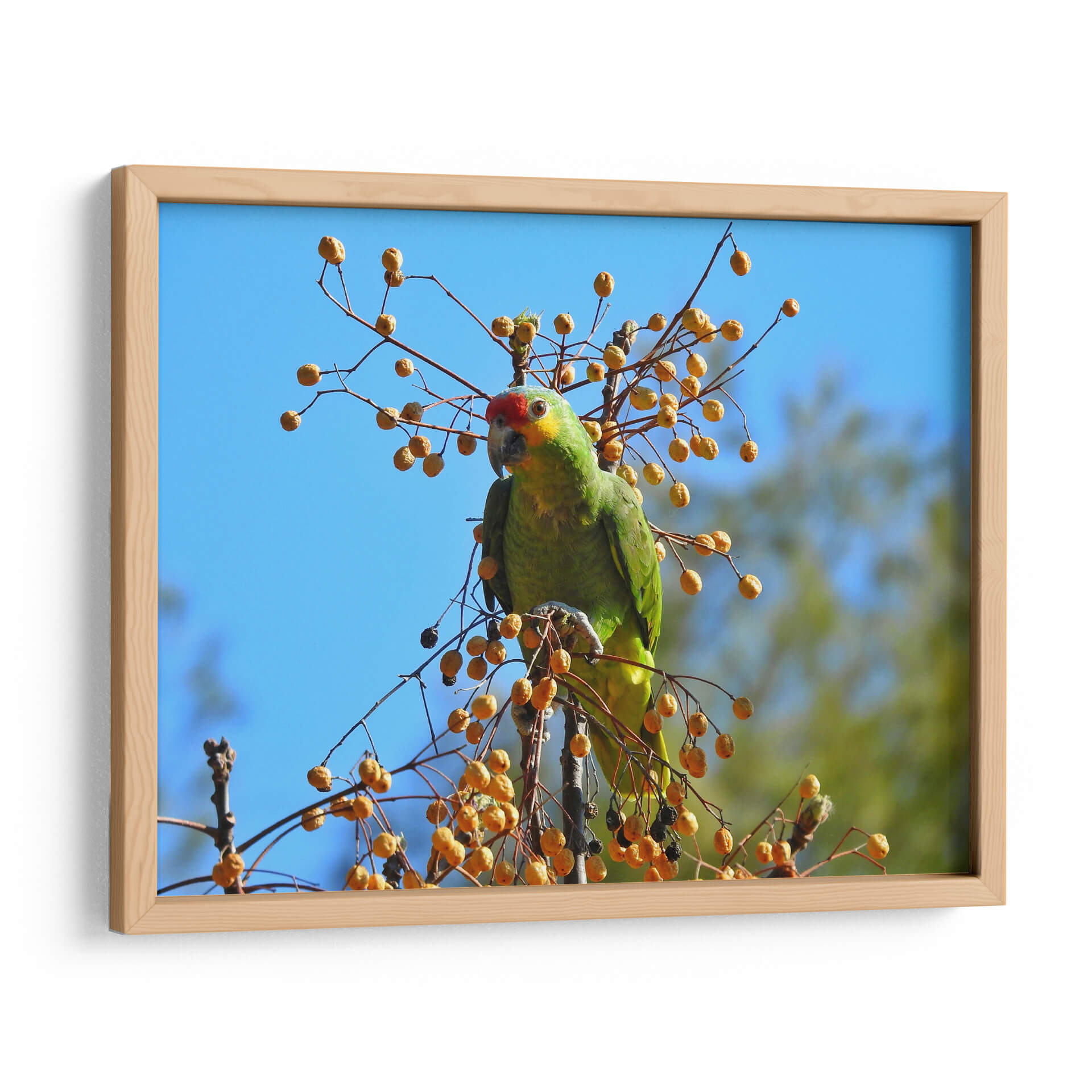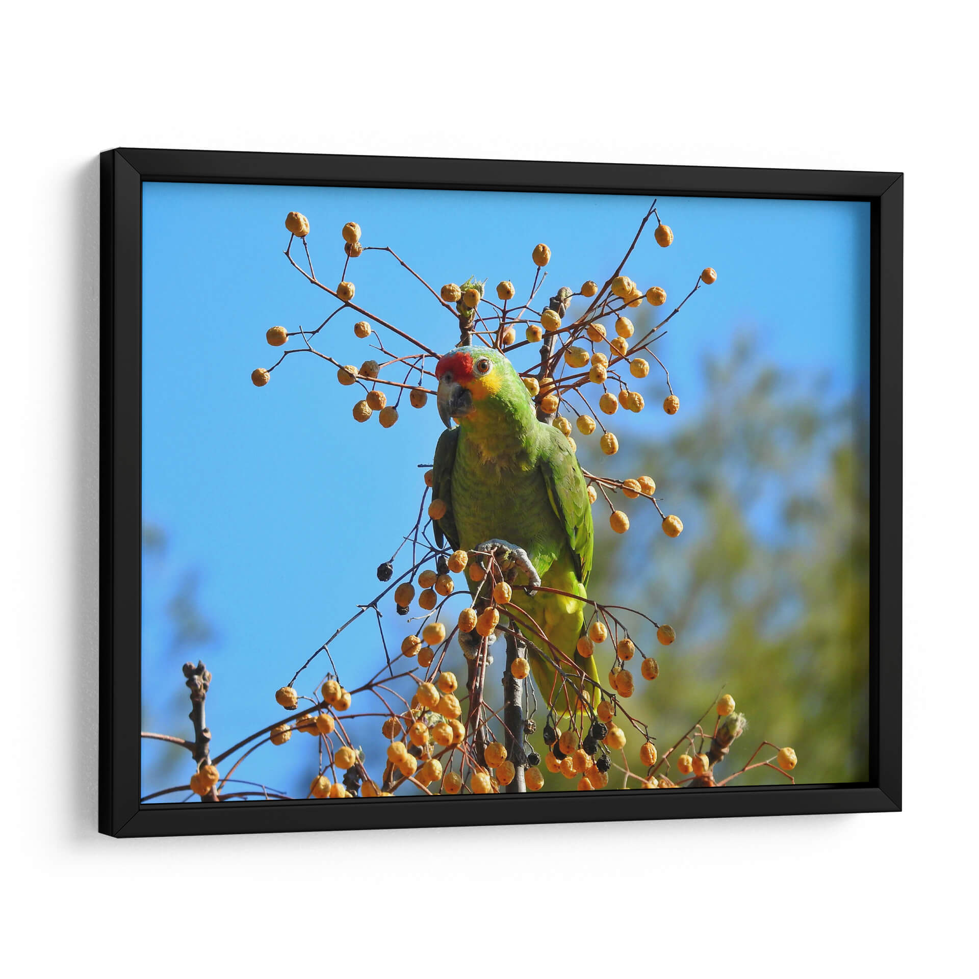 Sumérgete en la vibrante belleza de la naturaleza con nuestro cuadro decorativo 'Loro a la Deriva' de Isabel Soria. Esta obra captura la esencia de un loro verde, con su distintivo toque rojo en la cabeza y amarillo en el pico, posado con serenidad sobre una rama cargada de pequeñas bayas amarillas. El fondo, un cielo azul intenso y un follaje suavemente desenfocado, crea un contraste que resalta la figura central y la riqueza de los detalles. La composición fotográfica y los colores vivos infunden una sensación de vitalidad y paz, invitando a la contemplación de la fauna exótica y la delicadeza del mundo natural. Ideal para añadir un punto de color y vida a cualquier espacio, desde un salón moderno hasta un rincón tranquilo en tu hogar u oficina. Este cuadro decorativo no es solo una pieza de arte, sino una ventana a un momento de paz y esplendor natural que transformará tu ambiente, aportando un toque de alegría y sofisticación.