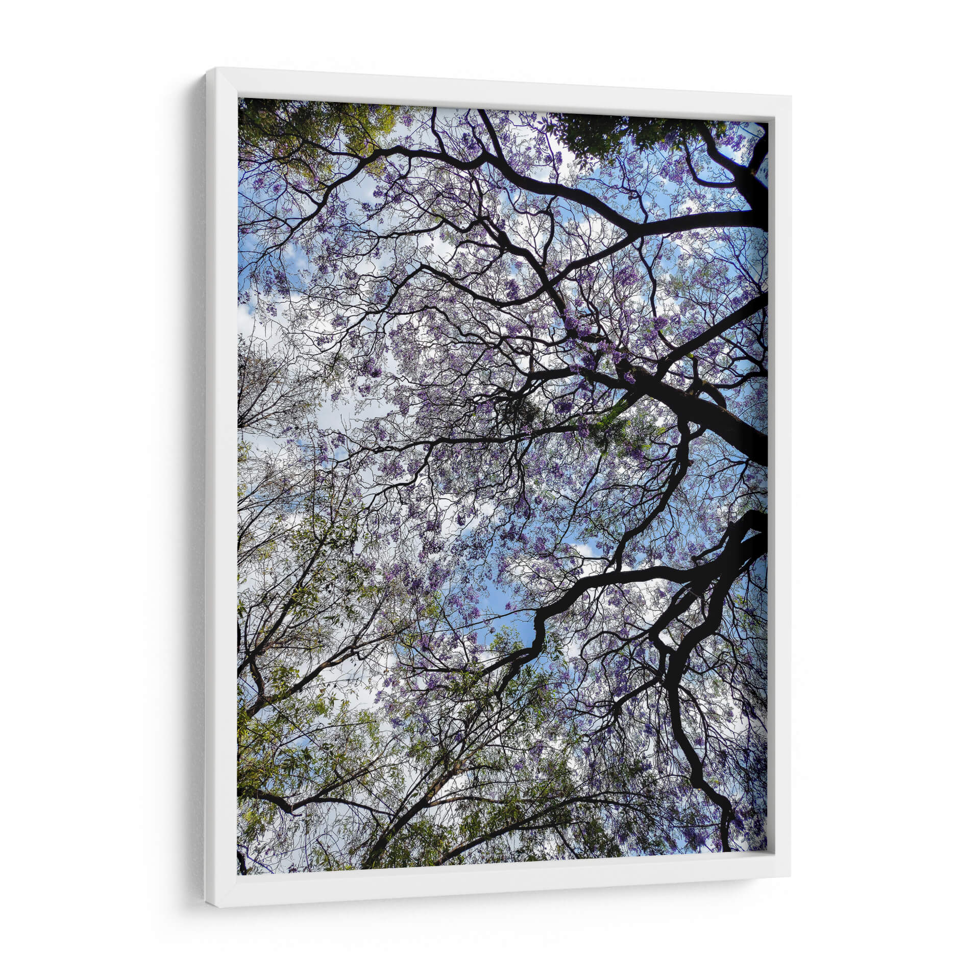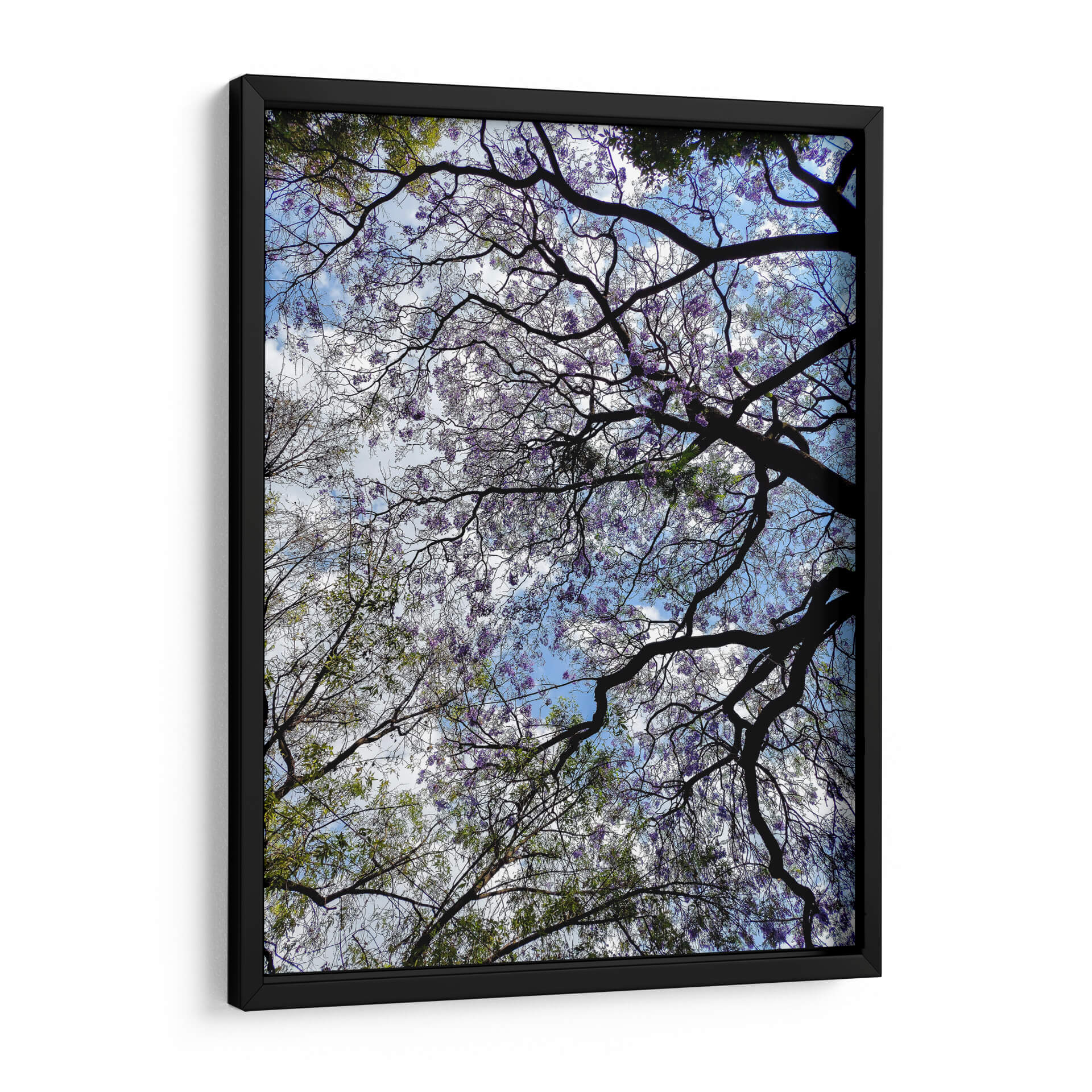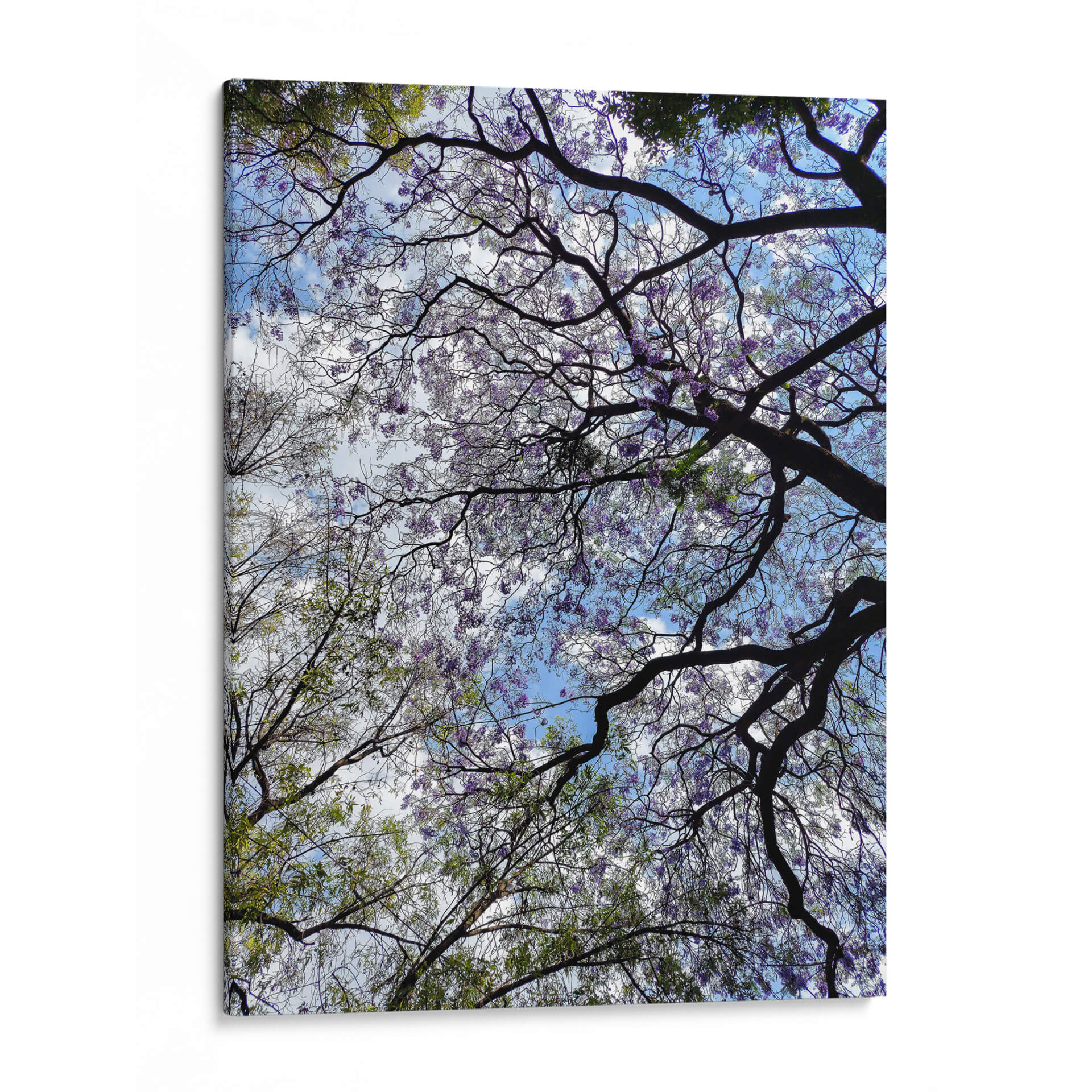 Sumérgete en la serenidad de 'Ramas Floreciendo', una obra de Bernardo Miranda que captura la efímera belleza de la naturaleza en plena floración. Este cuadro decorativo te transporta bajo un dosel de ramas entrelazadas, adornadas con delicadas flores de jacaranda en tonos violeta y morado. El cielo azul y las nubes esponjosas forman un telón de fondo vibrante que resalta la intrincada red de ramas oscuras, creando un juego de luces y sombras que aporta profundidad y dinamismo a la composición. La perspectiva, mirando hacia arriba, invita a la contemplación y a sentir la inmensidad del cielo y la vitalidad de la naturaleza. Ideal para añadir un toque de color y frescura a tu sala de estar, dormitorio o estudio, este lienzo evoca sensaciones de renovación, calma y conexión con el exterior. Su estilo fotográfico realista, con un enfoque en la textura y los detalles de las ramas y las flores, lo convierte en una pieza versátil que complementa tanto decoraciones modernas como más tradicionales. 'Ramas Floreciendo' no es solo una imagen, es una invitación a pausar y admirar la poesía visual que nos rodea, transformando cualquier espacio en un oasis de tranquilidad y belleza natural. Descubre la magia de la primavera capturada en una obra que inspira y eleva el espíritu.
