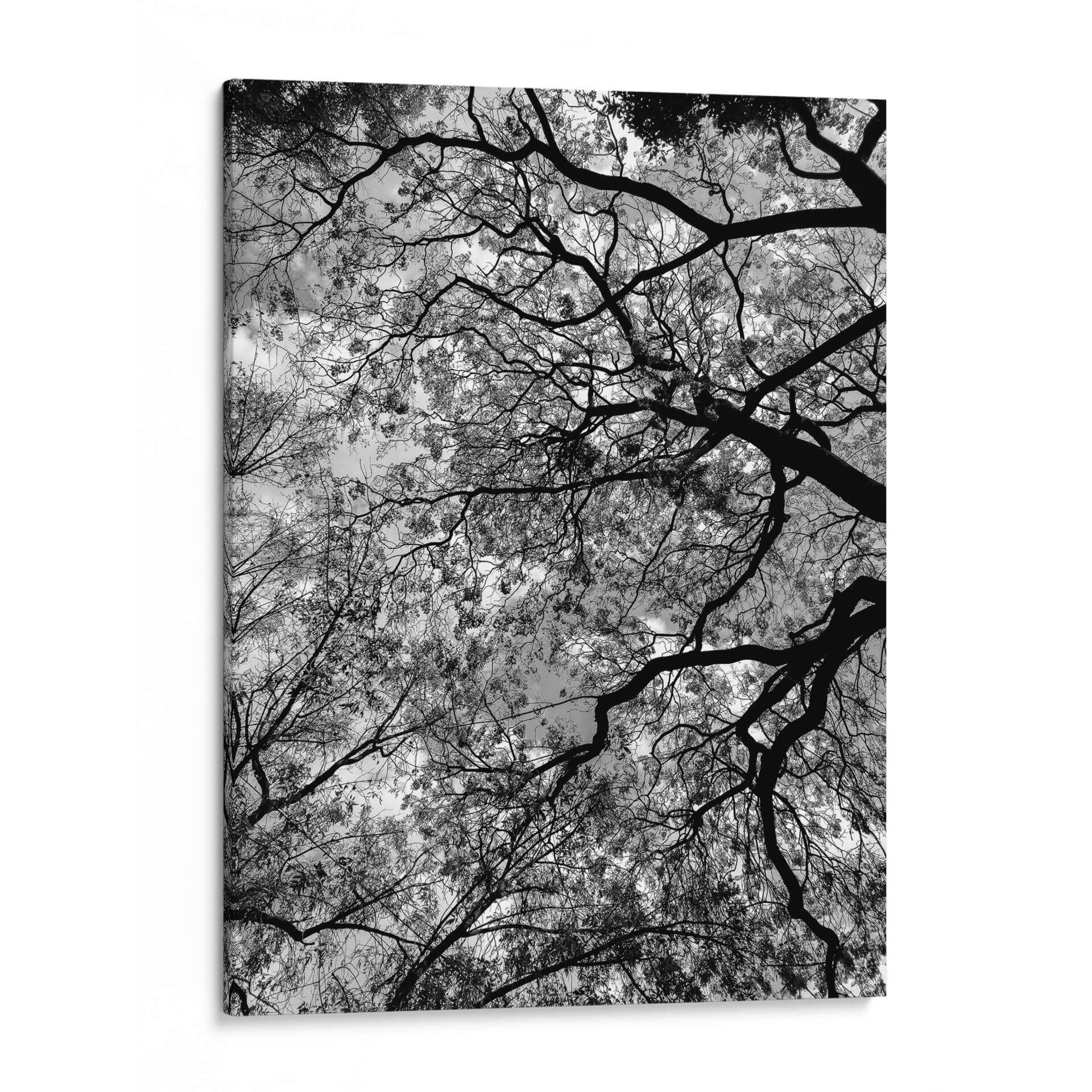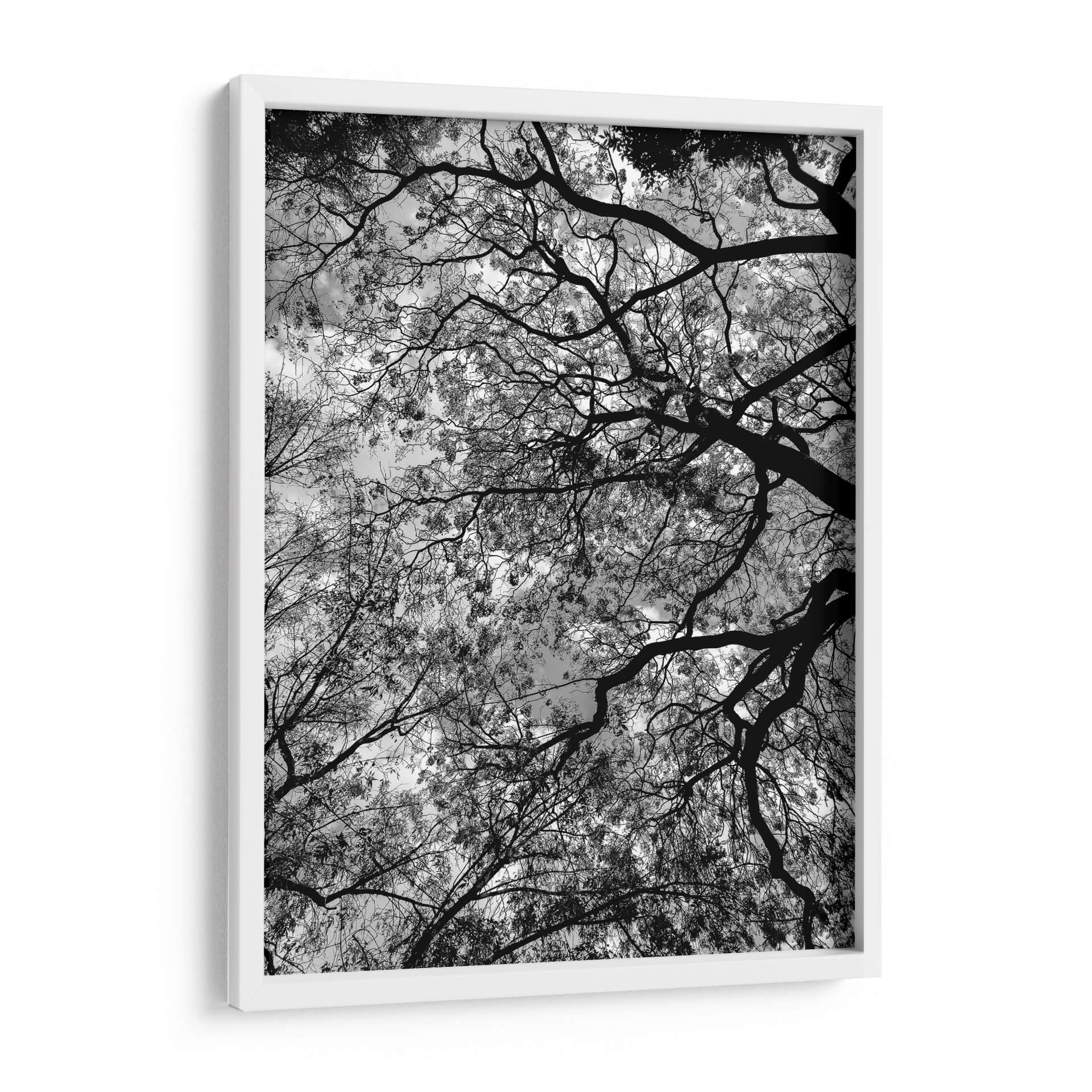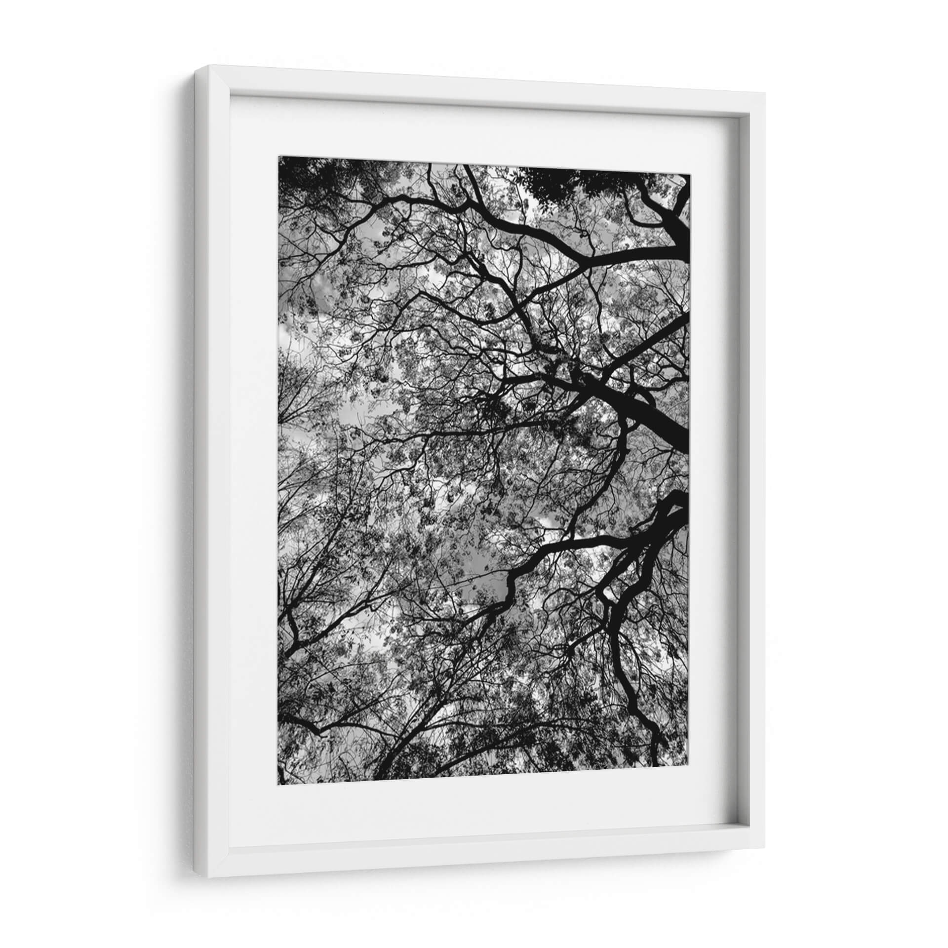 Sumérgete en la contemplación de "Ramas Floreciendo, Blanco y Negro", una obra maestra del artista Bernardo Miranda que captura la intrincada belleza de la naturaleza en su máxima expresión. Esta pieza, presentada en un evocador monocromatismo, te transporta a un bosque frondoso visto desde abajo, donde las ramas de los árboles se entrelazan creando un dosel fascinante y detallado contra un cielo nublado. El juego de luces y sombras, acentuado por la ausencia de color, genera una atmósfera de serenidad y misterio, invitando a la reflexión y la introspección. El estilo fotográfico y la composición audaz hacen de este cuadro decorativo un elemento visual impactante, perfecto para añadir profundidad y carácter a cualquier espacio. Imagina este cuadro adornando tu sala de estar, aportando un toque de elegancia atemporal, o creando un rincón de paz en tu estudio u oficina. "Ramas Floreciendo" no es solo una decoración, es una invitación a conectar con la calma y la complejidad del mundo natural, transformando tu hogar en un santuario de arte y tranquilidad. Ideal para amantes del arte contemporáneo y para quienes buscan piezas únicas que hablen al alma.