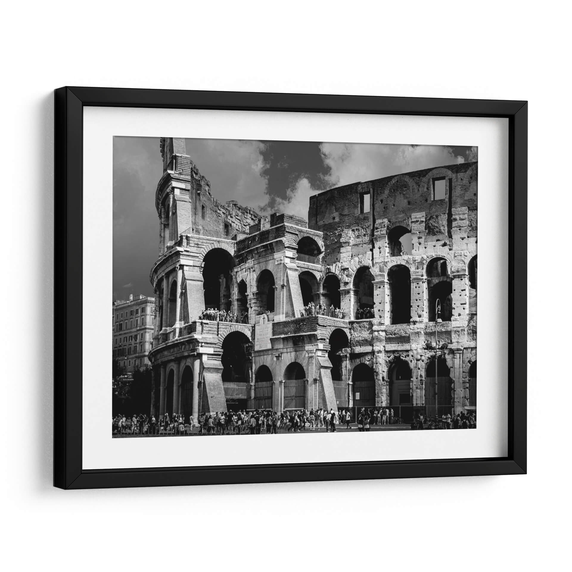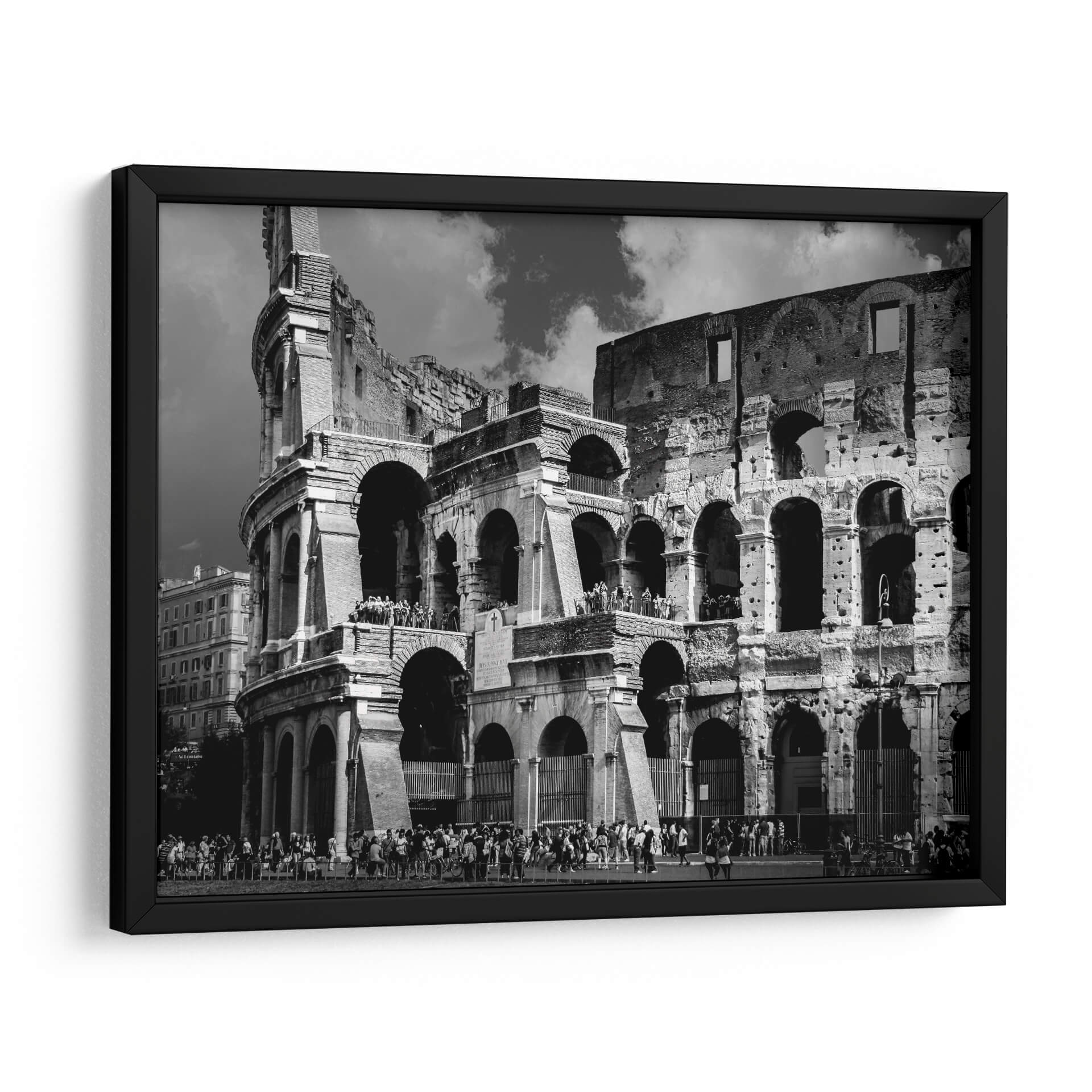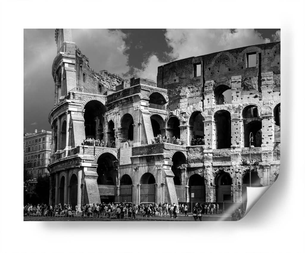 Sumérgete en la majestuosidad de Roma con este evocador cuadro decorativo del Coliseo Romano. La obra captura la grandiosidad de uno de los monumentos más icónicos del mundo en una cautivadora fotografía en blanco y negro. La imponente arquitectura del anfiteatro romano, con sus arcos centenarios y texturas desgastadas por el tiempo, se despliega ante tus ojos, invitándote a un viaje a través de la historia y la cultura. La paleta monocromática, llena de contrastes dramáticos entre luces y sombras, realza la monumentalidad de la estructura y crea una atmósfera de solemnidad y poder perdurable. Las pequeñas figuras humanas en la base y en las gradas añaden una escala fascinante, permitiéndote apreciar la magnitud del Coliseo y recordándonos las innumerables historias que estas ruinas han presenciado. Este cuadro decorativo es una pieza de arte de pared ideal para aquellos que aprecian la arquitectura clásica, la historia antigua o simplemente buscan una imagen con un fuerte impacto visual y una elegancia atemporal. Perfecto para añadir un toque de sofisticación y carácter a tu sala de estar, estudio u oficina, este retrato del Coliseo Romano se convertirá en un punto focal que inspira admiración y conversación.