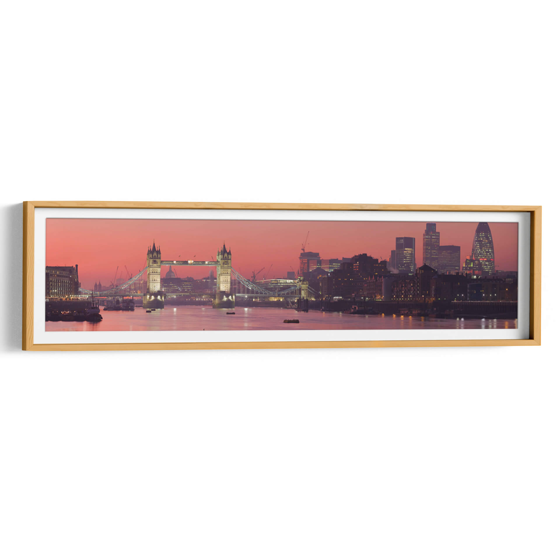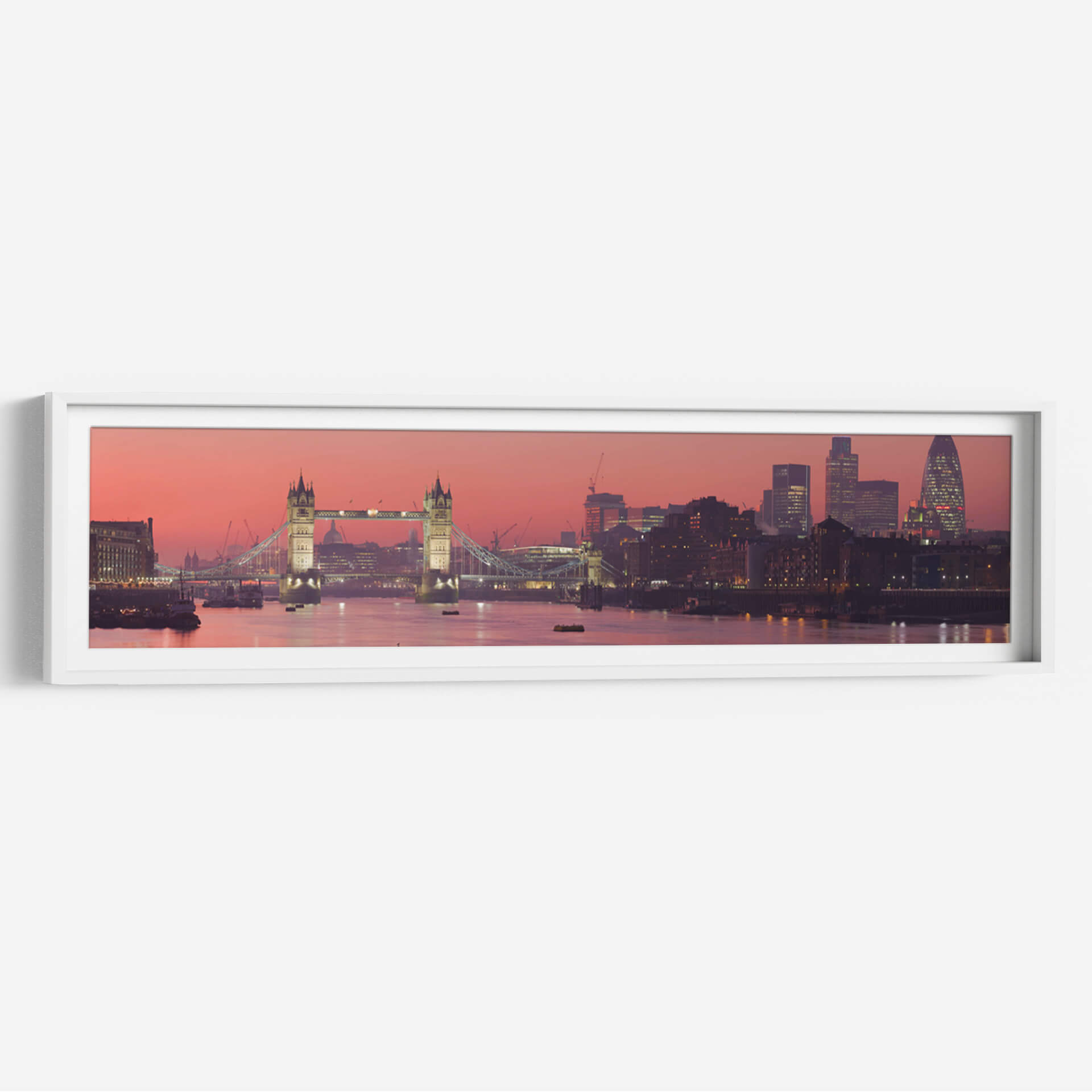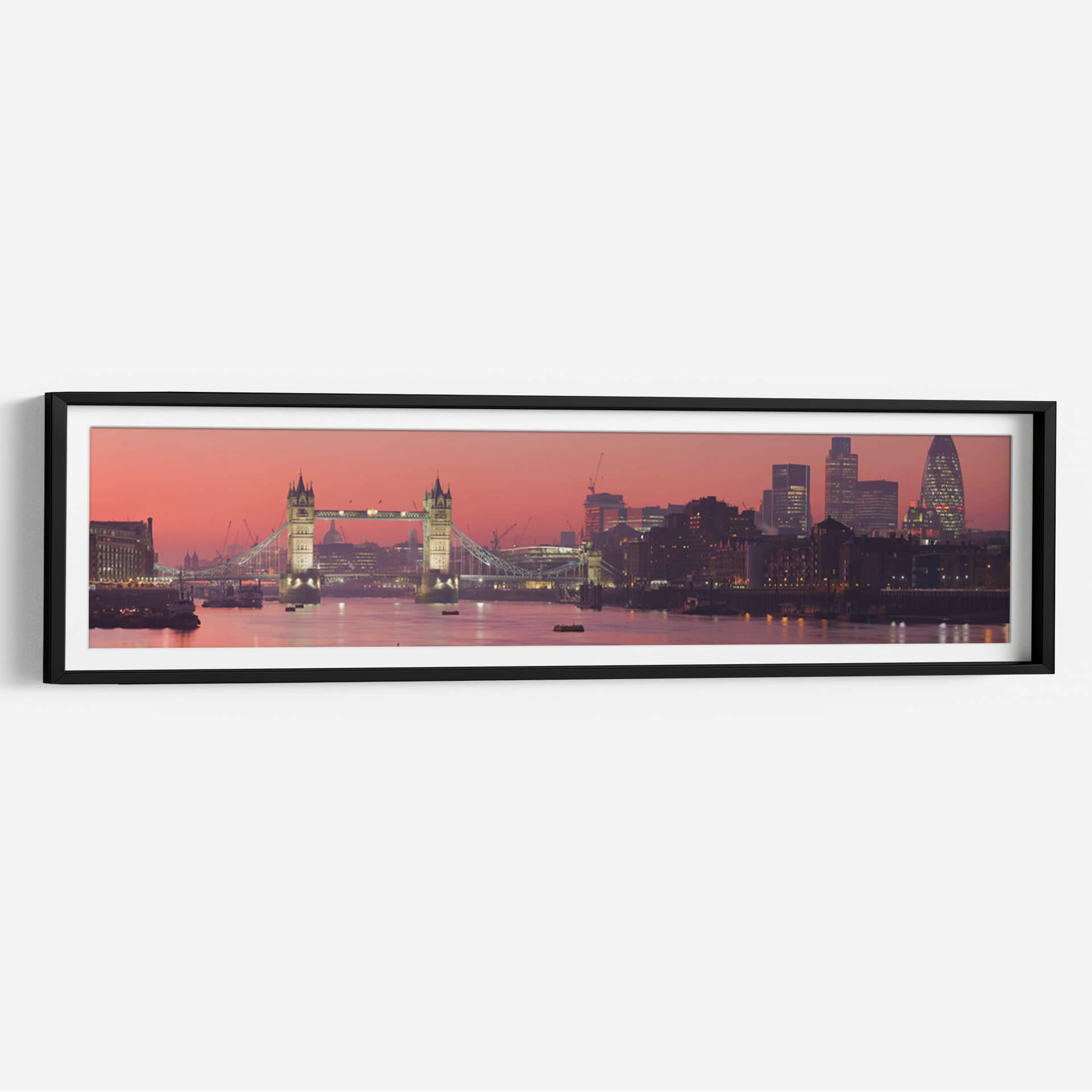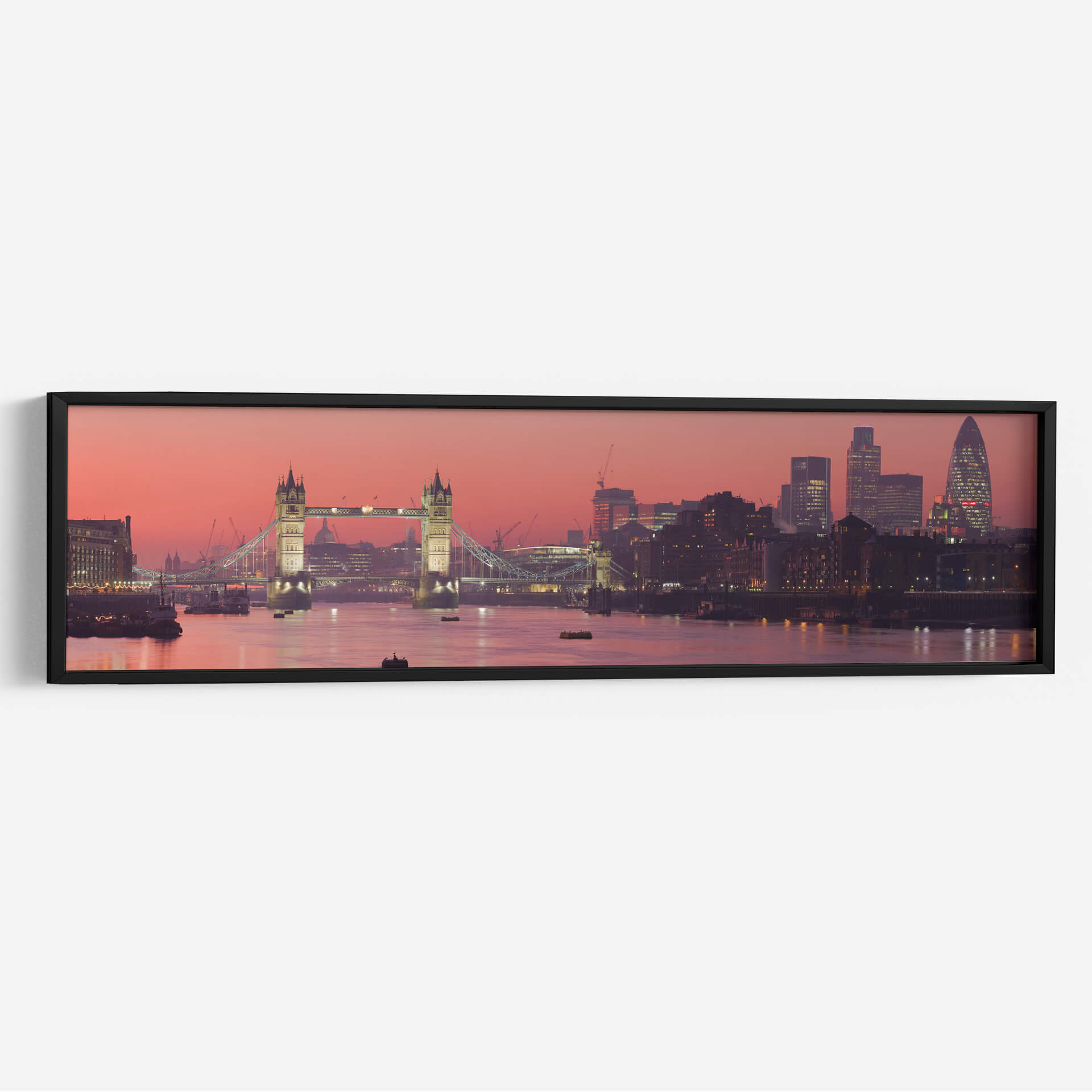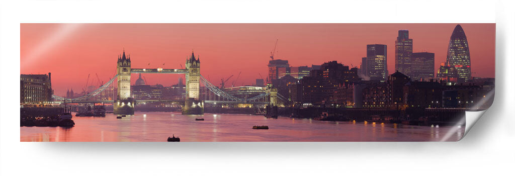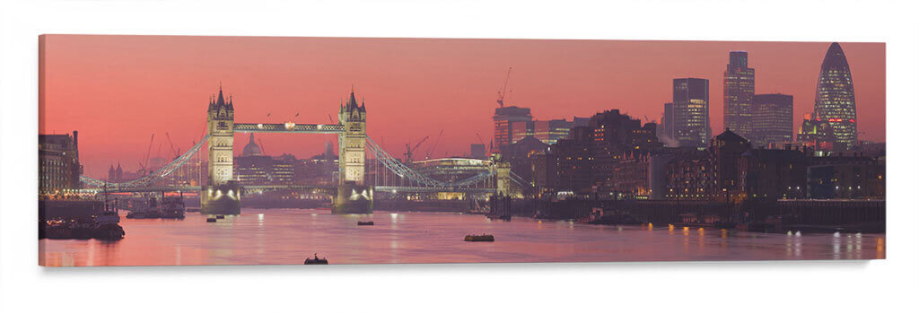 Captura la magia de Londres con este impresionante cuadro decorativo que inmortaliza el río Támesis al atardecer. La obra presenta una vista panorámica de la icónica silueta londinense, con el majestuoso Tower Bridge como protagonista central, iluminado y reflejándose sutilmente en las tranquilas aguas del río. A su alrededor, se despliega un horizonte urbano moderno salpicado de rascacielos que brillan con luces cálidas, contrastando con la arquitectura clásica del puente. La paleta de colores, dominada por tonos cálidos de rosa, naranja y púrpura en el cielo, junto con los tonos más oscuros del agua y los edificios, crea una atmósfera de serenidad y elegancia urbana. Ideal para añadir un toque de sofisticación y un recordatorio de viajes inolvidables a cualquier sala de estar, estudio u oficina. Este cuadro decorativo es perfecto para aquellos que aman las vistas panorámicas, la arquitectura icónica y la atmósfera vibrante de las grandes ciudades, añadiendo un punto focal cautivador y lleno de carácter a tu espacio.