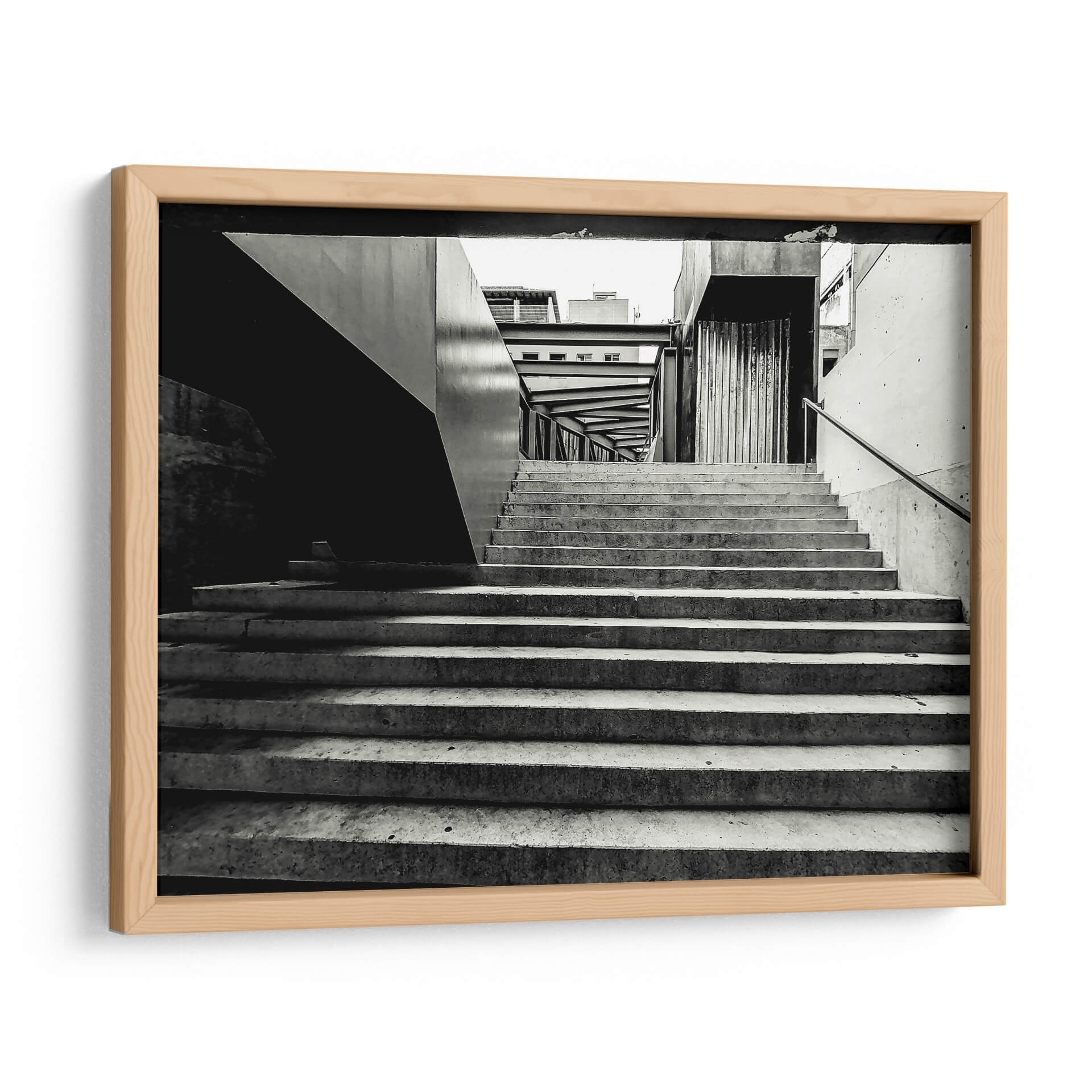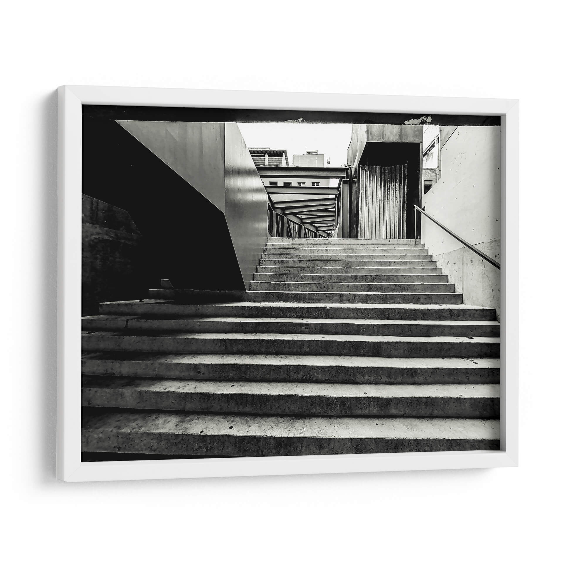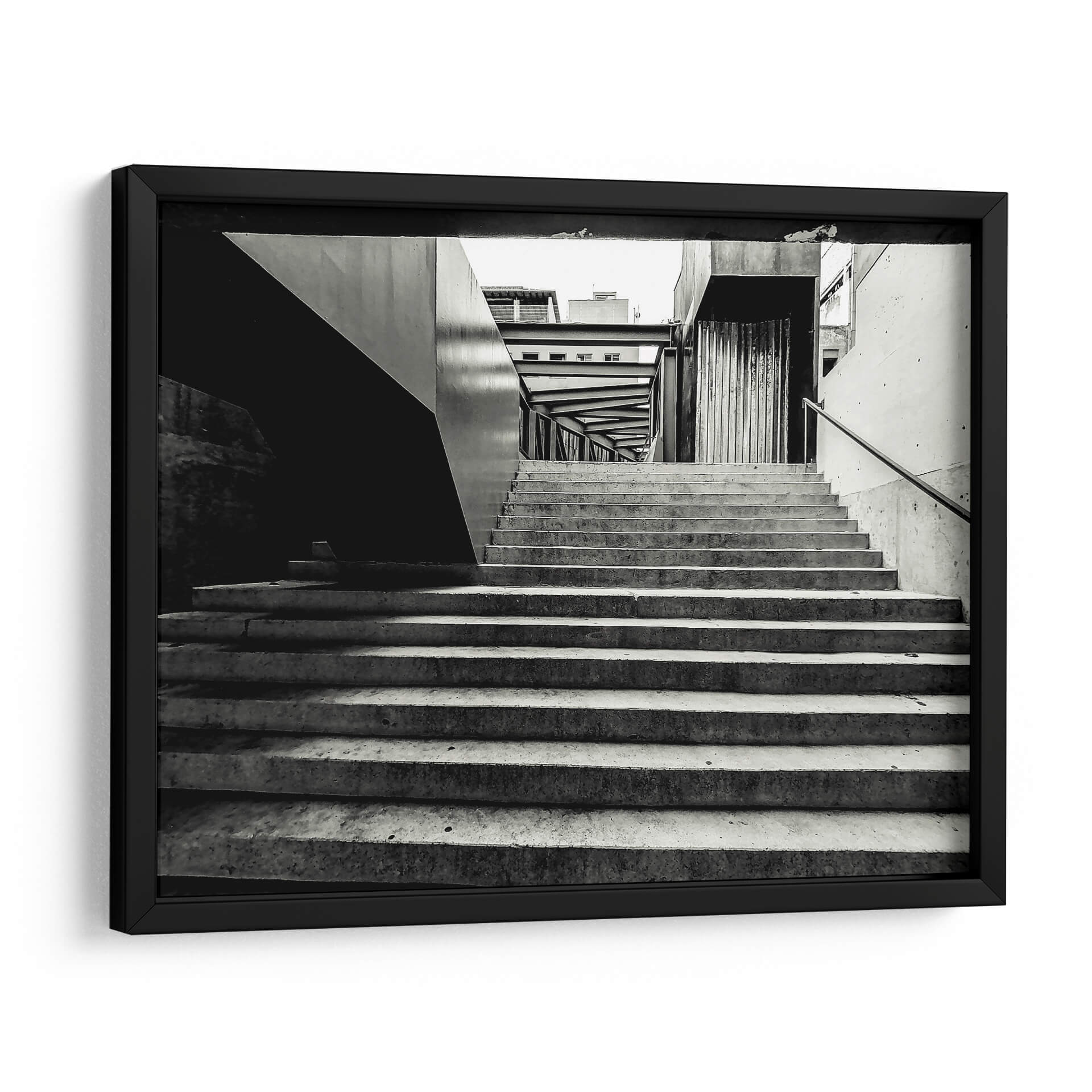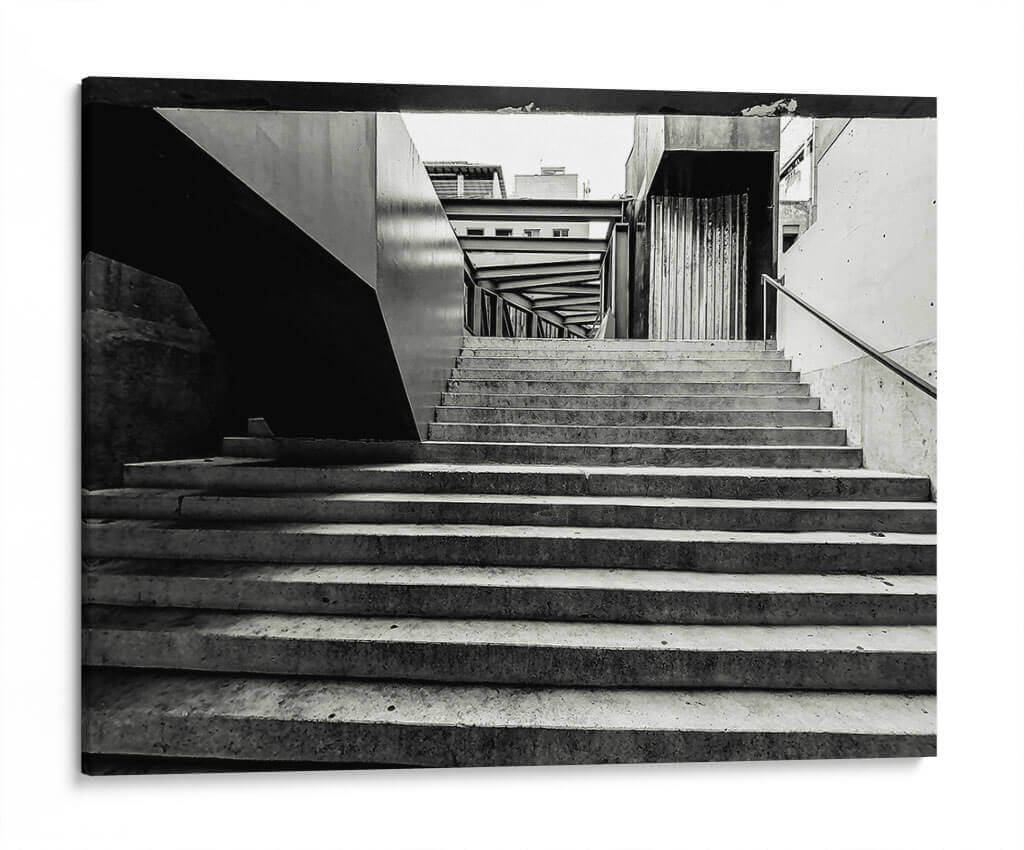 Sumérgete en la arquitectura moderna y el alma de Guadalajara con este cautivador cuadro decorativo, 'Escena urbana en Guadalajara II', del aclamado artista Jaime López Portillo. Esta obra maestra captura la esencia de una ciudad vibrante a través de una perspectiva arquitectónica única y audaz. Las escalinatas de concreto, bañadas en una paleta monocromática de grises y blancos, crean un juego de luces y sombras que realza las texturas y las formas geométricas. La composición, centrada en la imponente estructura de escaleras, invita a la reflexión sobre el movimiento, el progreso y la vida urbana. Cada línea y cada ángulo han sido cuidadosamente capturados, generando una atmósfera de misterio y elegancia contemporánea. Este cuadro es ideal para espacios que buscan un toque de sofisticación industrial o un punto focal dramático. Perfecto para salones modernos, oficinas o cualquier lugar donde se desee inspirar con el dinamismo de la arquitectura y la esencia de una metrópoli.