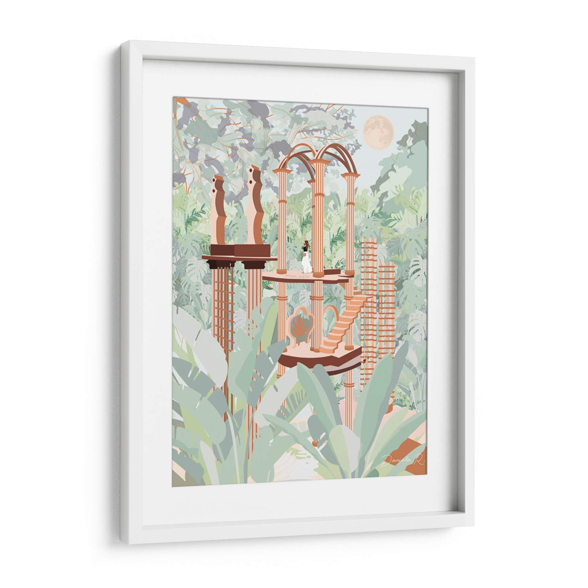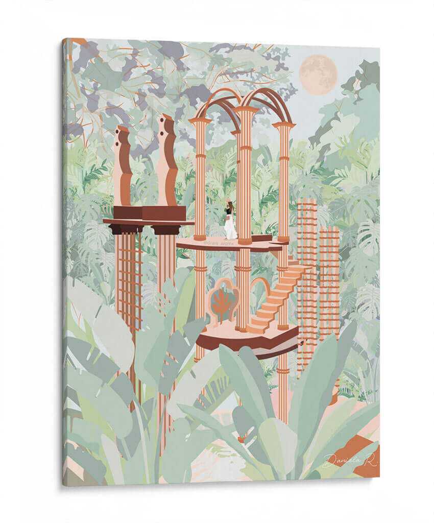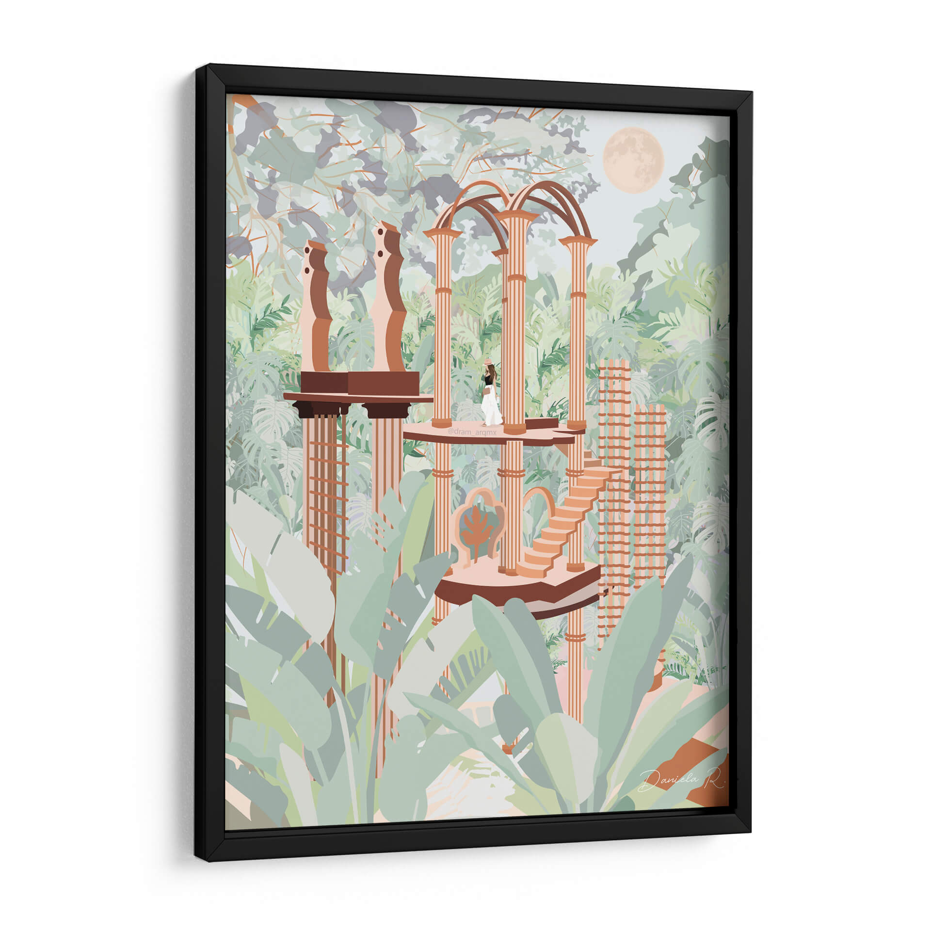 Sumérgete en la enigmática belleza de 'Las Pozas' de DRAM, una obra de arte que evoca una atmósfera de misterio y serenidad tropical. Este cuadro decorativo digital presenta una arquitectura intrincada y exuberante vegetación, creando un paisaje onírico que transporta al espectador a un oasis de tranquilidad. La paleta de colores, dominada por tonos verdes suaves, pasteles y toques de terracota, emana una sensación de calma y armonía, perfecta para cualquier espacio que busque un refugio visual. La composición, con sus elegantes columnas y escalinatas ascendentes, invita a la contemplación y la exploración. Una figura solitaria en el centro añade un toque de narrativa, sugiriendo un viaje personal o un momento de introspección. Ideal para salones modernos, dormitorios serenos u oficinas que necesiten un toque de sofisticación y escapismo. 'Las Pozas' no es solo una pieza decorativa, sino una invitación a desconectar del mundo exterior y encontrar paz en la belleza del arte. Transforma tu hogar en un santuario de estilo y serenidad con esta cautivadora obra maestra contemporánea.
