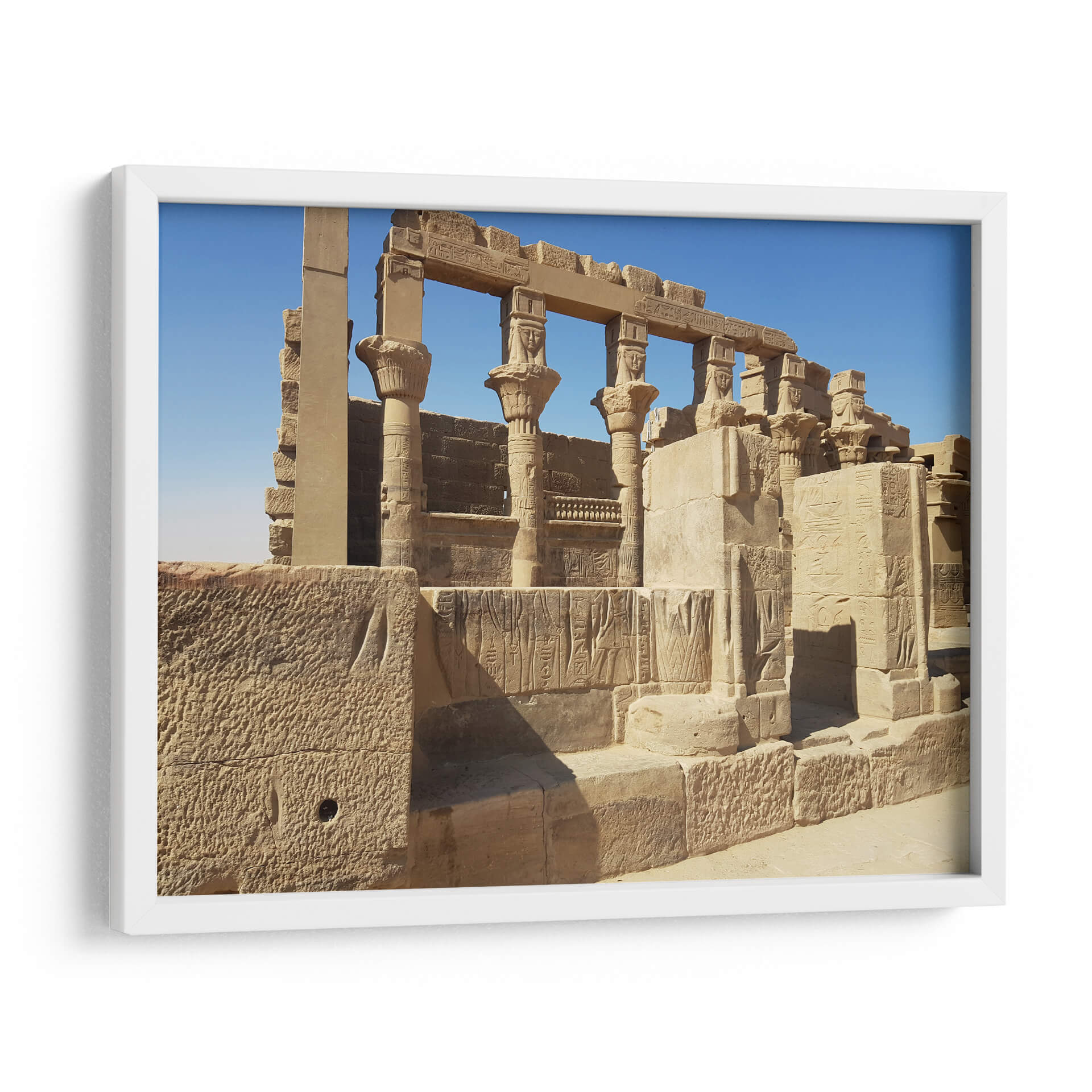 Sumérgete en la majestuosidad del antiguo Egipto con este impactante cuadro decorativo que captura la esencia del Templo de Philae. La obra presenta una detallada representación de las imponentes columnas, los grabados ancestrales y la arquitectura monumental que evocan siglos de historia y misterio. Los tonos cálidos de la piedra, bañados por la luz clara del cielo azul intenso, crean una atmósfera de grandeza y serenidad. Ideal para aquellos que buscan infundir en sus espacios un aire de sofisticación histórica y una conexión con civilizaciones pasadas. Este lienzo es perfecto para salones, estudios o cualquier rincón que desee transformar en un santuario de paz y cultura. Cada detalle, desde la textura de la piedra hasta la intrincada ornamentación, invita a la contemplación, convirtiendo esta pieza en un punto focal que despierta la imaginación y transporta al espectador a un viaje a través del tiempo. Añade un toque de elegancia atemporal y profundidad a tu decoración con esta obra maestra inspirada en uno de los tesoros arquitectónicos del mundo.