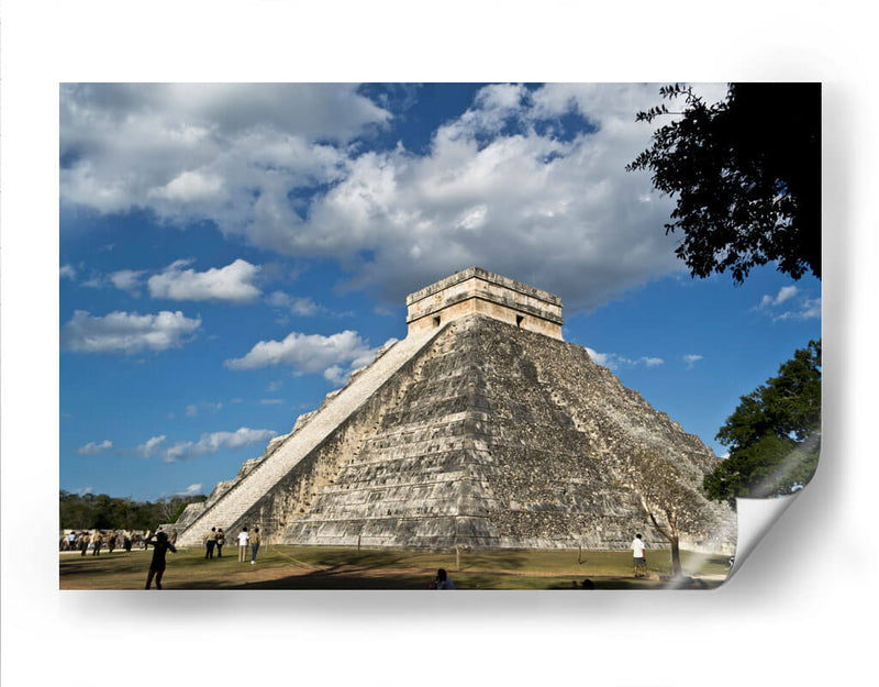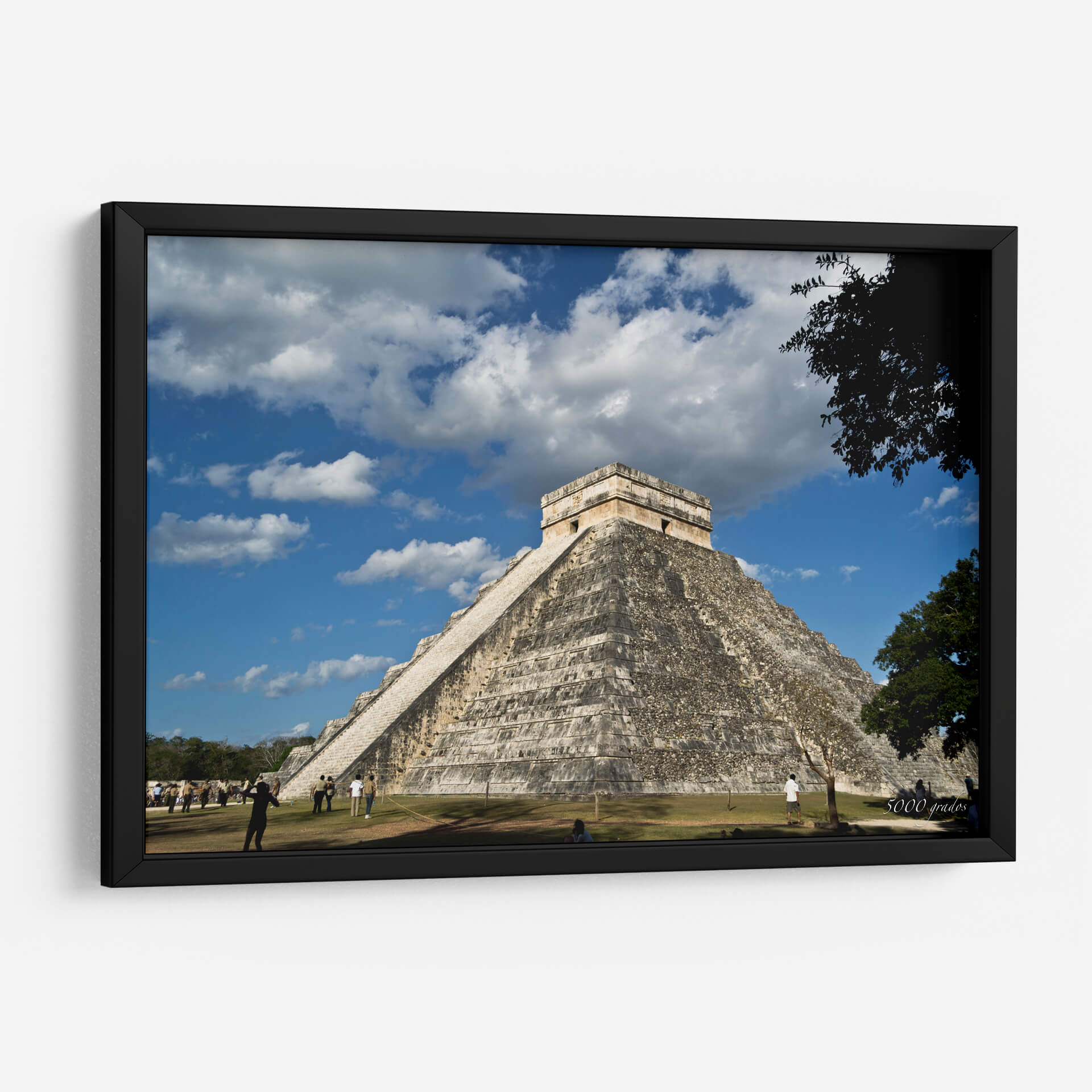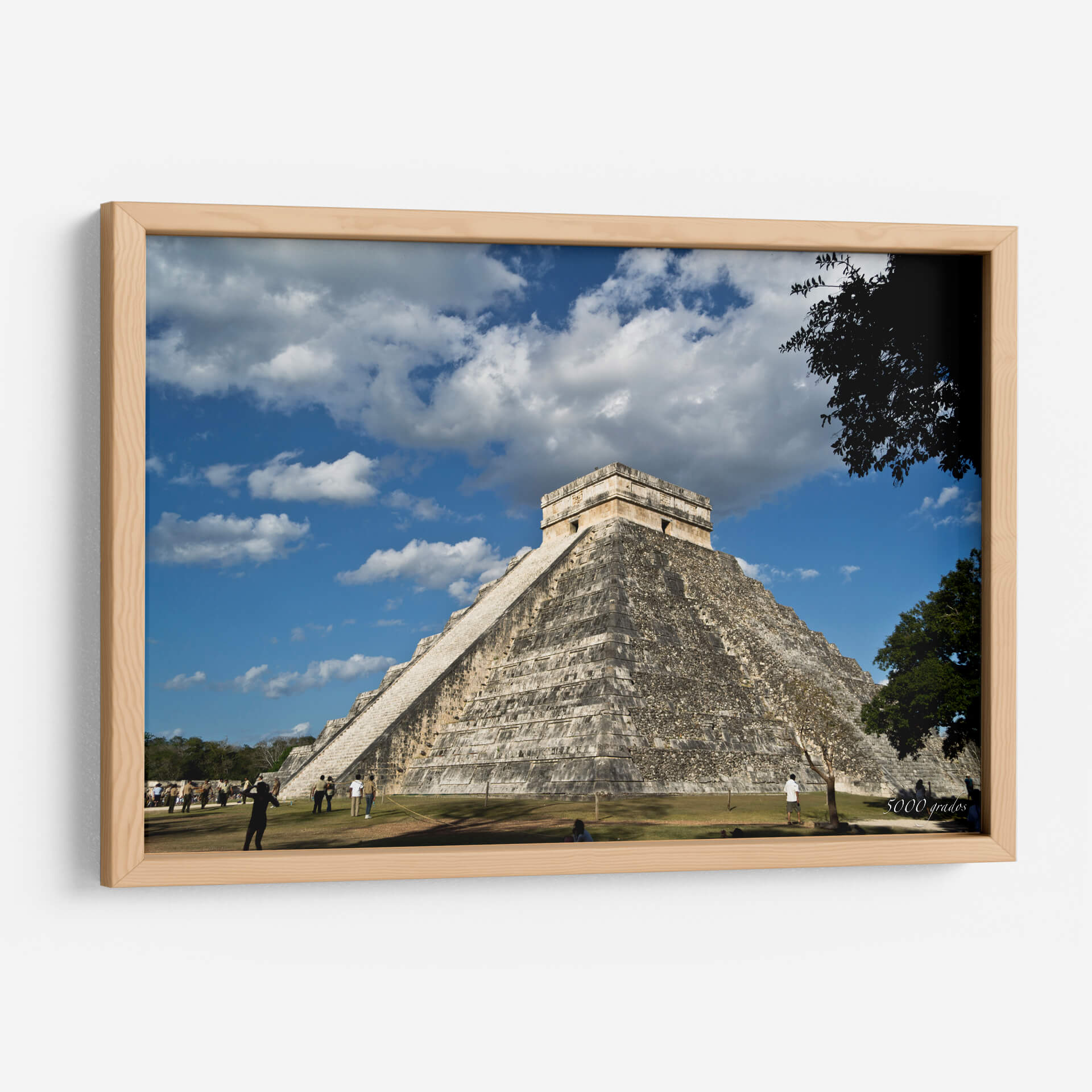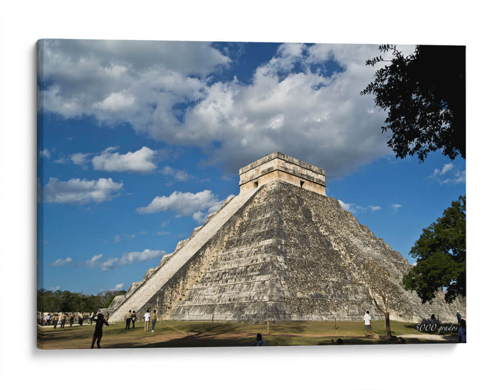 Transporta tu hogar a la mística del mundo maya con el impresionante cuadro "Sombras en Chichen Itza" de 5000 grados. Esta obra captura la majestuosidad de una de las maravillas arquitectónicas más icónicas, invitando a la reflexión y al asombro. La icónica pirámide se alza imponente bajo un cielo azul vibrante, salpicado de nubes blancas que añaden profundidad y dinamismo a la escena. La paleta de colores, dominada por los tonos ocres y grises de la piedra antigua y el azul profundo del cielo, crea una atmósfera de calma pero también de misterio y grandeza histórica. Las sombras proyectadas por la estructura y la vegetación circundante añaden un elemento de dramatismo y realismo, resaltando la textura y la escala del sitio arqueológico. Con una composición equilibrada que guía la mirada hacia la cúspide de la pirámide y una perspectiva que evoca la vastedad del paisaje, "Sombras en Chichen Itza" es ideal para aquellos que buscan infundir a sus espacios un sentido de historia, aventura y conexión cultural. Este cuadro decorativo es perfecto para salas de estar, estudios u oficinas, añadiendo un toque de elegancia rústica y un punto de conversación fascinante. Transforma tu pared en una ventana a un mundo antiguo y lleno de historias.