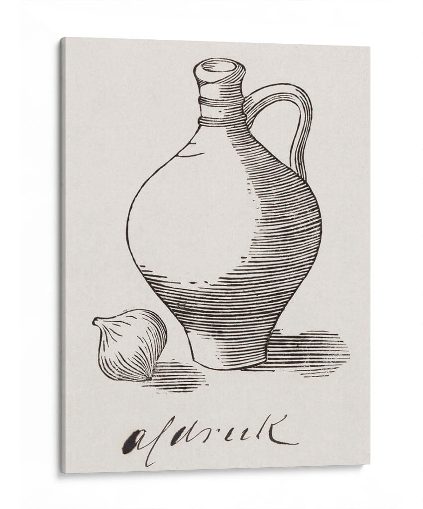 Sumérgete en la elegancia atemporal de "Bodegón de xilografía con jarra y cebolla", una cautivadora obra de arte de Julie de Graag. Esta pieza captura la esencia de los bodegones clásicos con un enfoque moderno y minimalista, utilizando la técnica de xilografía para crear texturas y sombras profundas. La composición presenta una jarra estilizada junto a una cebolla, elementos cotidianos transformados en sujetos de contemplación artística. La paleta de colores, dominada por tonos neutros y contrastes de línea, aporta una sensación de calma y sofisticación, ideal para cualquier espacio que busque un toque de serenidad y arte refinado. El trazo distintivo de la artista evoca una atmósfera de tranquilidad y aprecio por la simplicidad. Este cuadro decorativo es perfecto para añadir un punto focal de interés sutil pero impactante a tu sala de estar, comedor u oficina. Su diseño versátil se integra fácilmente en decoraciones clásicas o contemporáneas, aportando un aire de distinción y buen gusto. Descubre la belleza en lo ordinario con esta obra maestra que invita a la reflexión y embellece tu entorno con su encanto artístico y su calidad excepcional. Una adición perfecta para amantes del arte y la decoración que valoran la maestría y la estética depurada.