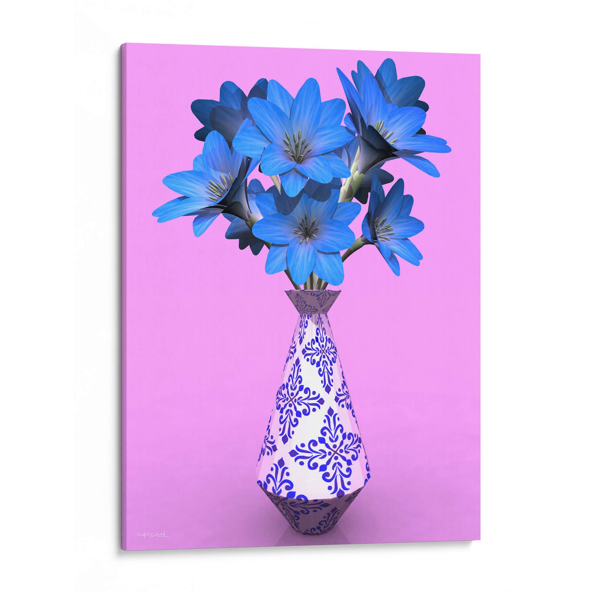 Inyecta una dosis de frescura y serenidad en tu espacio con nuestro exquisito cuadro decorativo 'Florero', una obra maestra digital del artista Caperh. Esta pieza cautivadora presenta un vibrante ramo de flores azules, detalladamente renderizadas, que contrastan maravillosamente con un jarrón de diseño intrincado adornado con un patrón damasco en tonos de azul cobalto sobre blanco. El fondo liso y de color rosa suave proporciona un lienzo delicado que permite que los vibrantes azules de las flores y el jarrón resalten, creando un punto focal visualmente impactante. El estilo combina elementos realistas en la representación de las flores con una abstracción limpia en el fondo y el jarrón, resultando en una estética moderna y a la vez atemporal. Ideal para añadir un toque de color y sofisticación a salones, dormitorios o entradas, este cuadro decorativo es perfecto para aquellos que aprecian la belleza de la naturaleza y el arte contemporáneo. Su paleta de colores azul y rosa evoca una sensación de calma y elegancia, invitando a la contemplación. Transforma cualquier habitación en una galería personal con esta pieza única que habla de estilo y buen gusto.