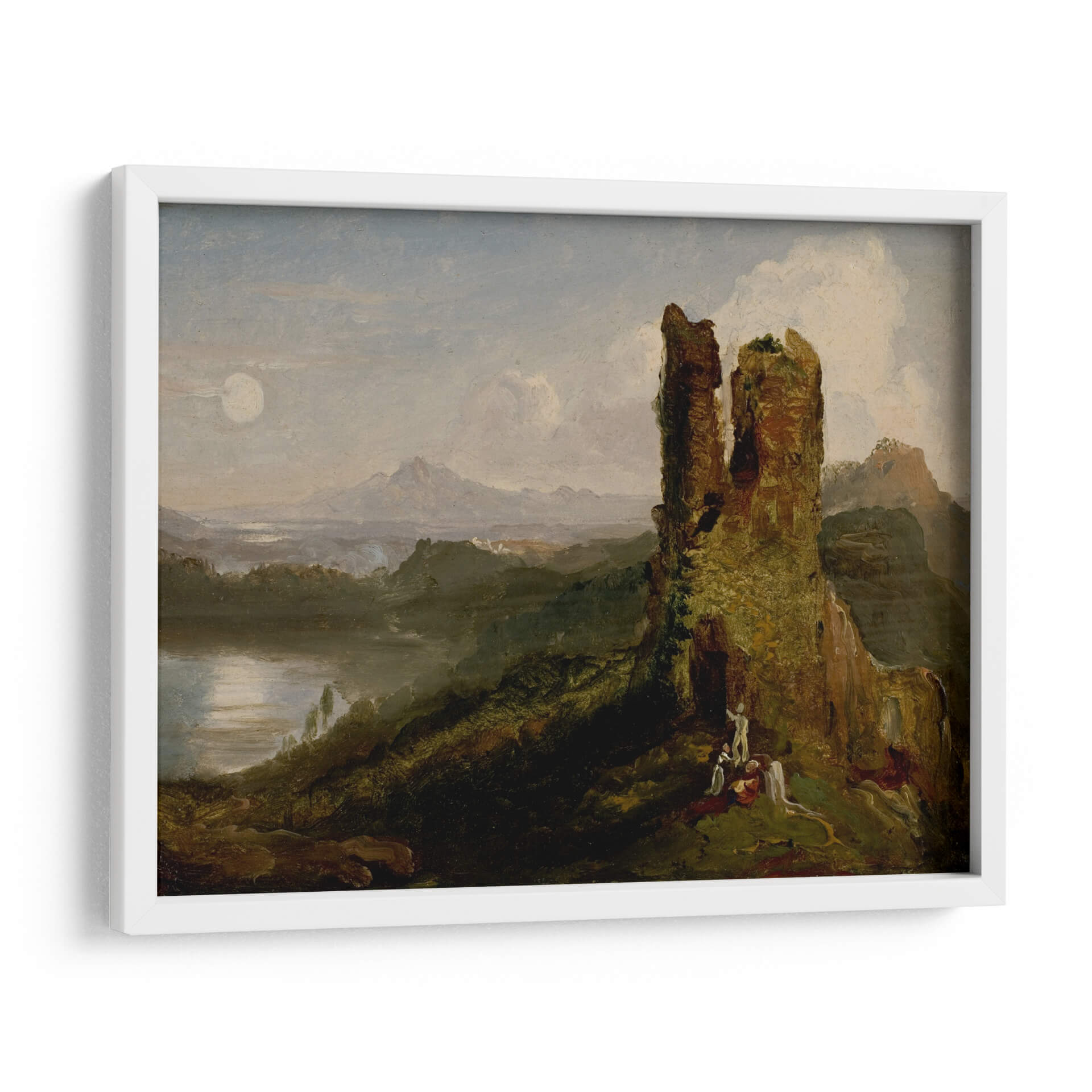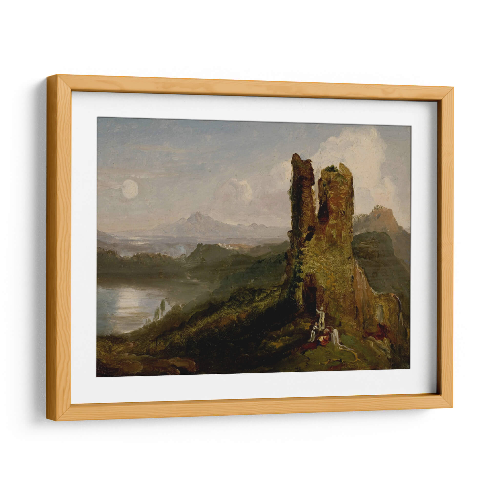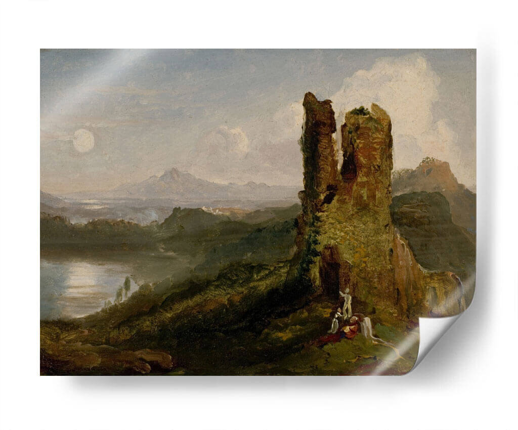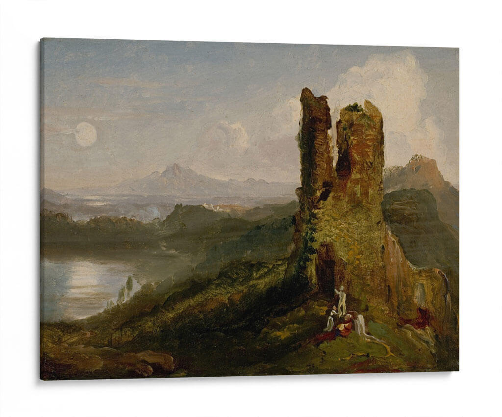 Sumérgete en la majestuosidad de "Genevieve", una obra maestra del arte de paisajes que captura la esencia de la naturaleza en su estado más sublime. Thomas Cole nos transporta a un mundo de serenidad y asombro con esta pintura evocadora. La pieza presenta imponentes formaciones rocosas cubiertas de vegetación exuberante, un lago sereno que refleja el cielo crepuscular y montañas distantes coronadas por nubes etéreas. La paleta de colores, dominada por tonos tierra, verdes profundos y azules celestes, crea una atmósfera de paz y contemplación. Pequeñas figuras humanas, sutilmente integradas en el paisaje, invitan a la reflexión sobre nuestra conexión con la naturaleza y la grandeza del mundo que nos rodea. Este cuadro decorativo es ideal para añadir un toque de dramatismo y tranquilidad a cualquier sala de estar, estudio u oficina. Su estilo romántico y su composición detallada lo convierten en una pieza de conversación que inspira calma y admiración. "Genevieve" no es solo una obra de arte, sino una ventana a un mundo de belleza atemporal, perfecta para quienes buscan un lienzo que eleve su espacio vital y conecte con la grandeza del espíritu humano frente a la naturaleza.