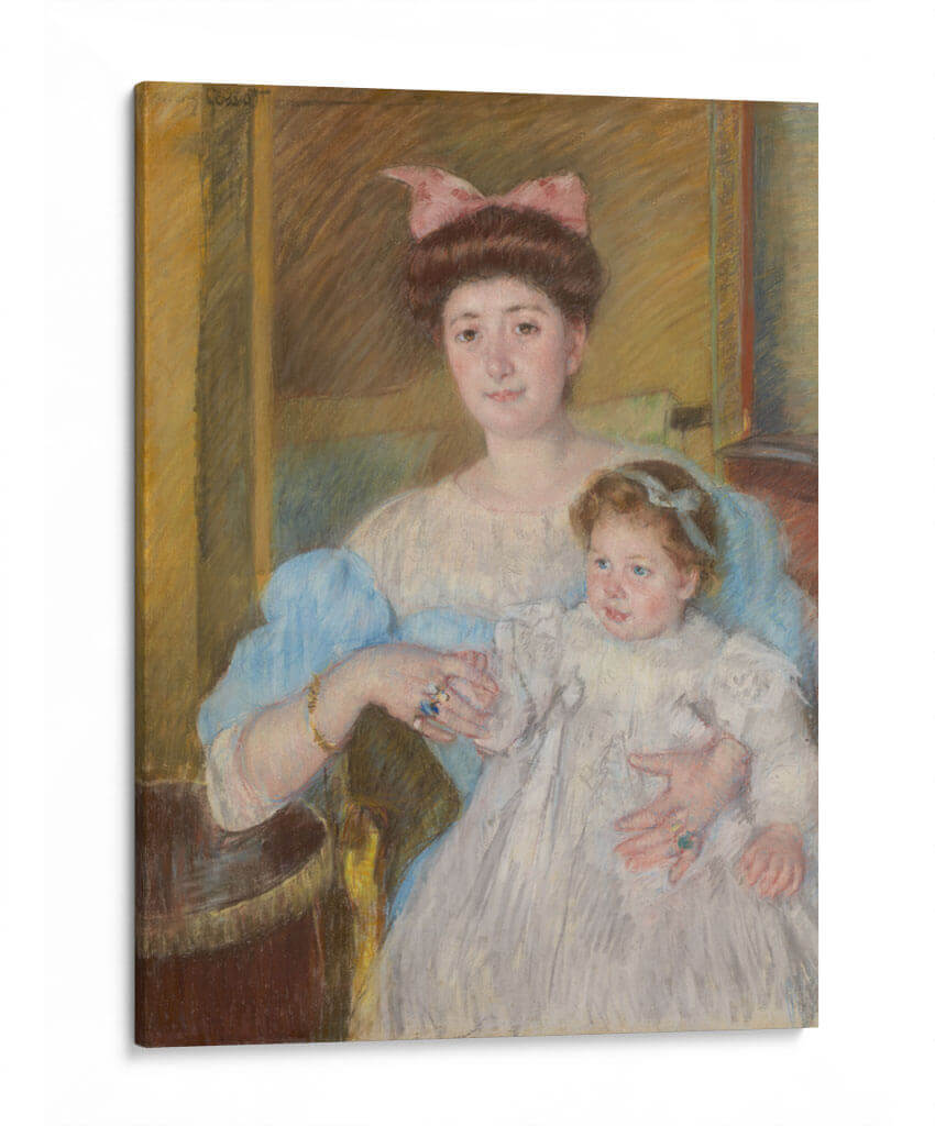 Sumérgete en la ternura y la intimidad de "La condesa Morel d'Arleux y su hijo", una obra maestra de Mary Cassatt que captura un momento conmovedor entre madre e hijo. Los tonos cálidos y suaves, predominantes en la paleta de colores, crean una atmósfera de serenidad y afecto, transportándote a un instante de conexión profunda. El estilo impresionista de Cassatt se manifiesta en pinceladas delicadas que dan vida a las figuras y al entorno, invitando a la contemplación. La composición íntima y el enfoque en la interacción entre los personajes hacen de este cuadro decorativo una pieza ideal para espacios donde se busca transmitir calidez y vínculos familiares, como un dormitorio o una sala de estar acogedora. Su elegancia atemporal y la emotividad intrínseca lo convierten en un punto focal que añade profundidad y carácter a cualquier decoración. Añade un toque de arte clásico y sentimiento puro a tu hogar con esta reproducción de alta calidad, perfecta para quienes aprecian la belleza en las relaciones humanas y el arte que trasciende el tiempo.
