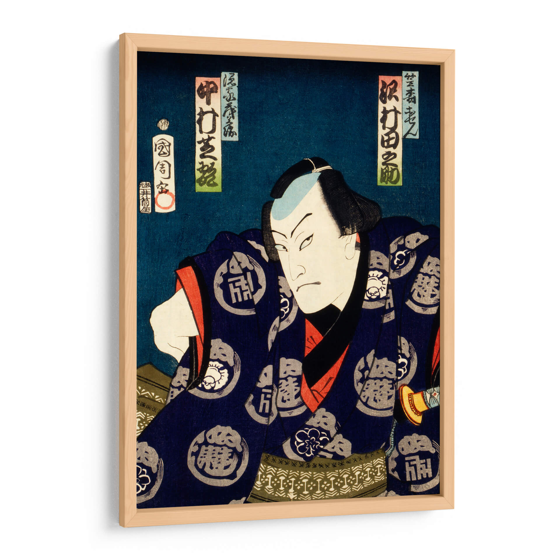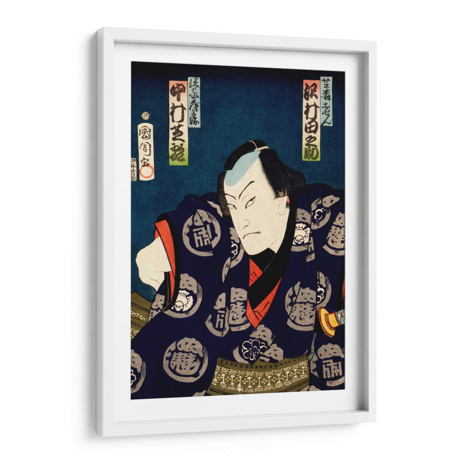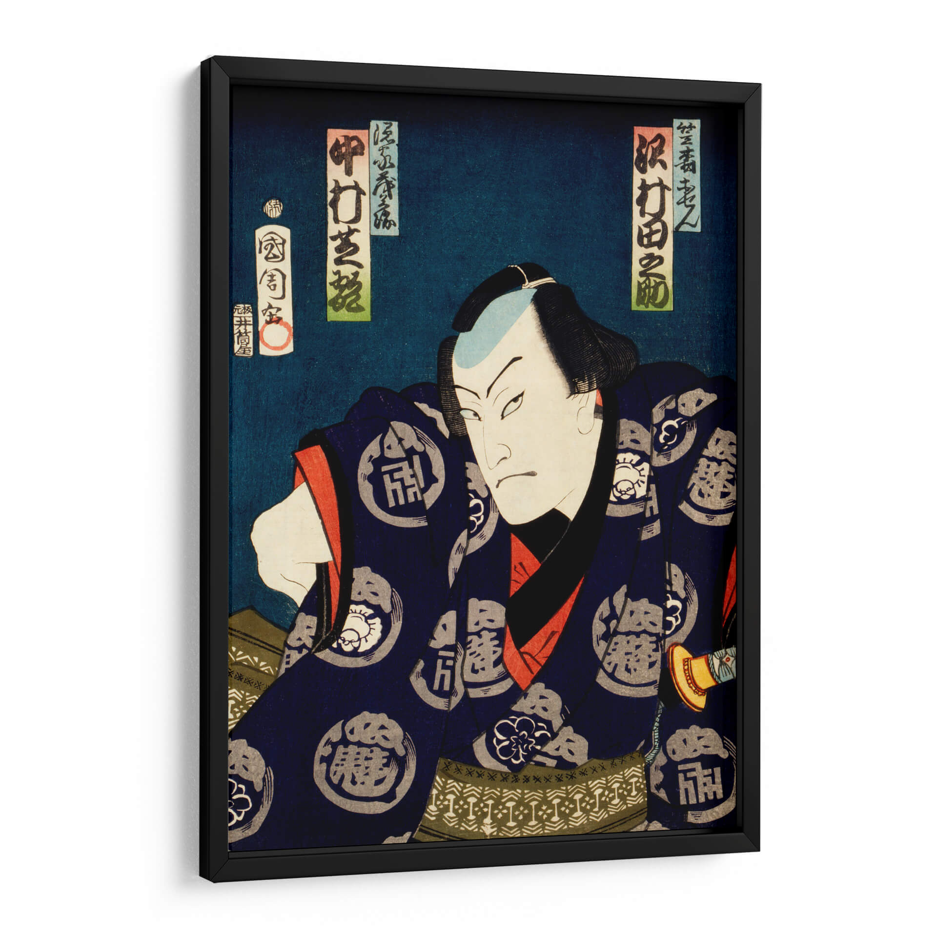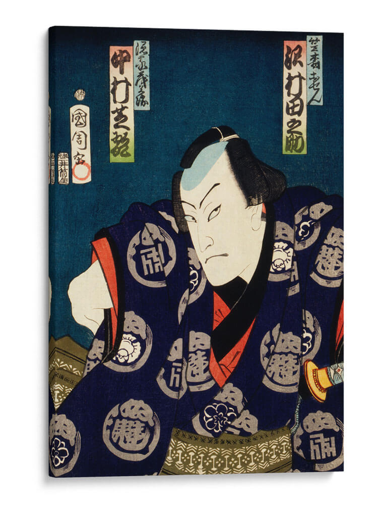 Sumérgete en la intensidad y el carisma del 'Retrato de un actor 16' de Toyohara Kunichika, una obra maestra del arte japonés Ukiyo-e que transporta la vibrante energía del teatro Kabuki a tu hogar. Este cautivador cuadro decorativo presenta un primer plano dramático de un actor, con una expresión facial penetrante y una pose decidida que evoca fuerza y misterio. La paleta de colores, dominada por profundos azules noche, acentos de rojo vibrante y detalles en blanco y negro, crea un contraste visual impactante que atrae la mirada y añade profundidad a la composición. La vestimenta del actor, adornada con intrincados patrones, habla de tradición y refinamiento. Este retrato de estilo Ukiyo-e es perfecto para quienes buscan añadir un toque de sofisticación histórica y carácter a sus espacios. Ideal como punto focal en una sala de estar, un estudio o incluso un espacio de trabajo, este cuadro decorativo invita a la contemplación y la admiración, fusionando el arte tradicional con la decoración contemporánea. Añade una pieza de historia y arte con este impresionante retrato que trasciende el tiempo.