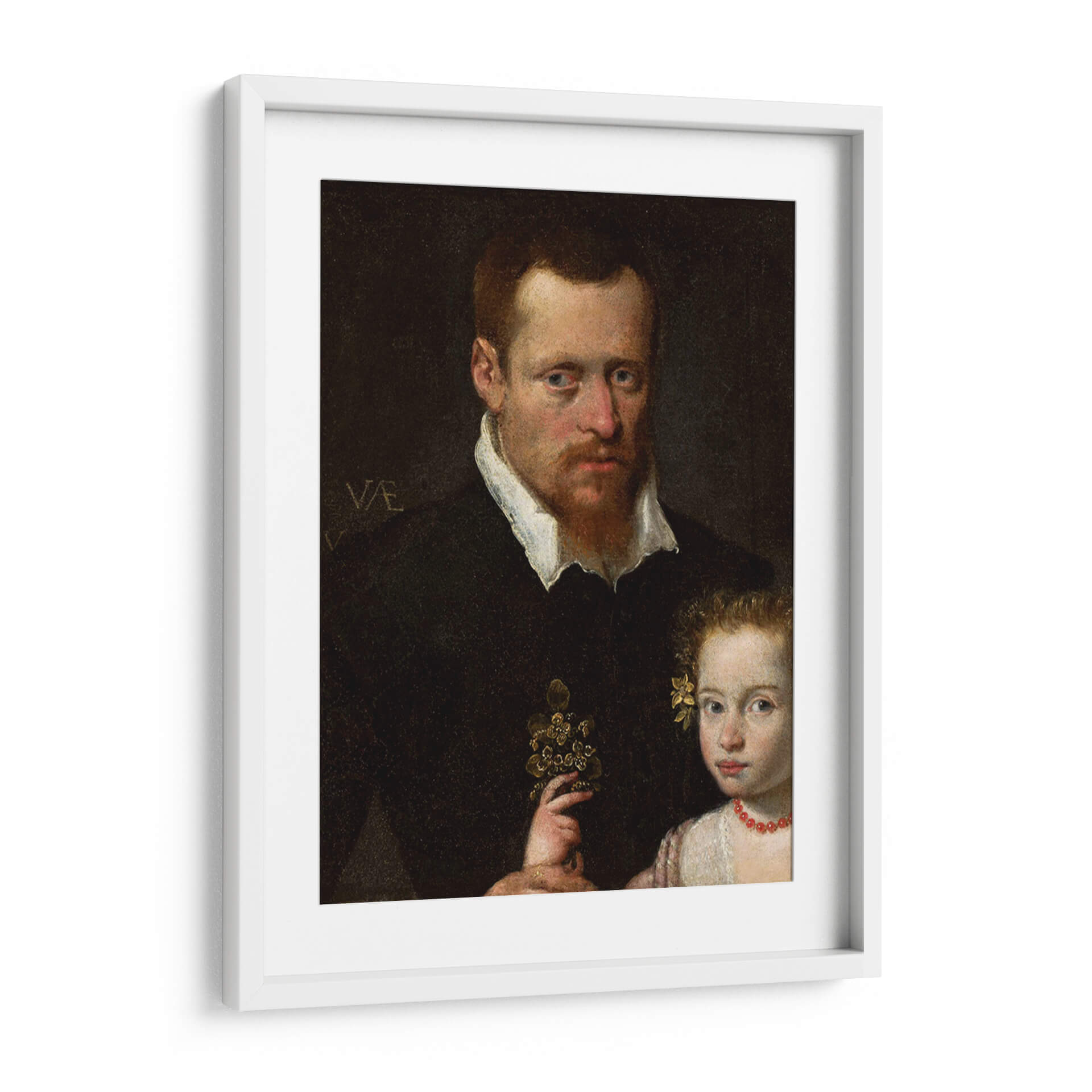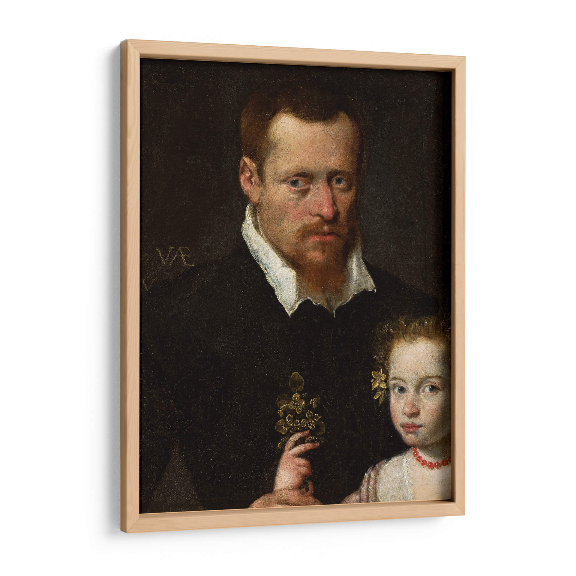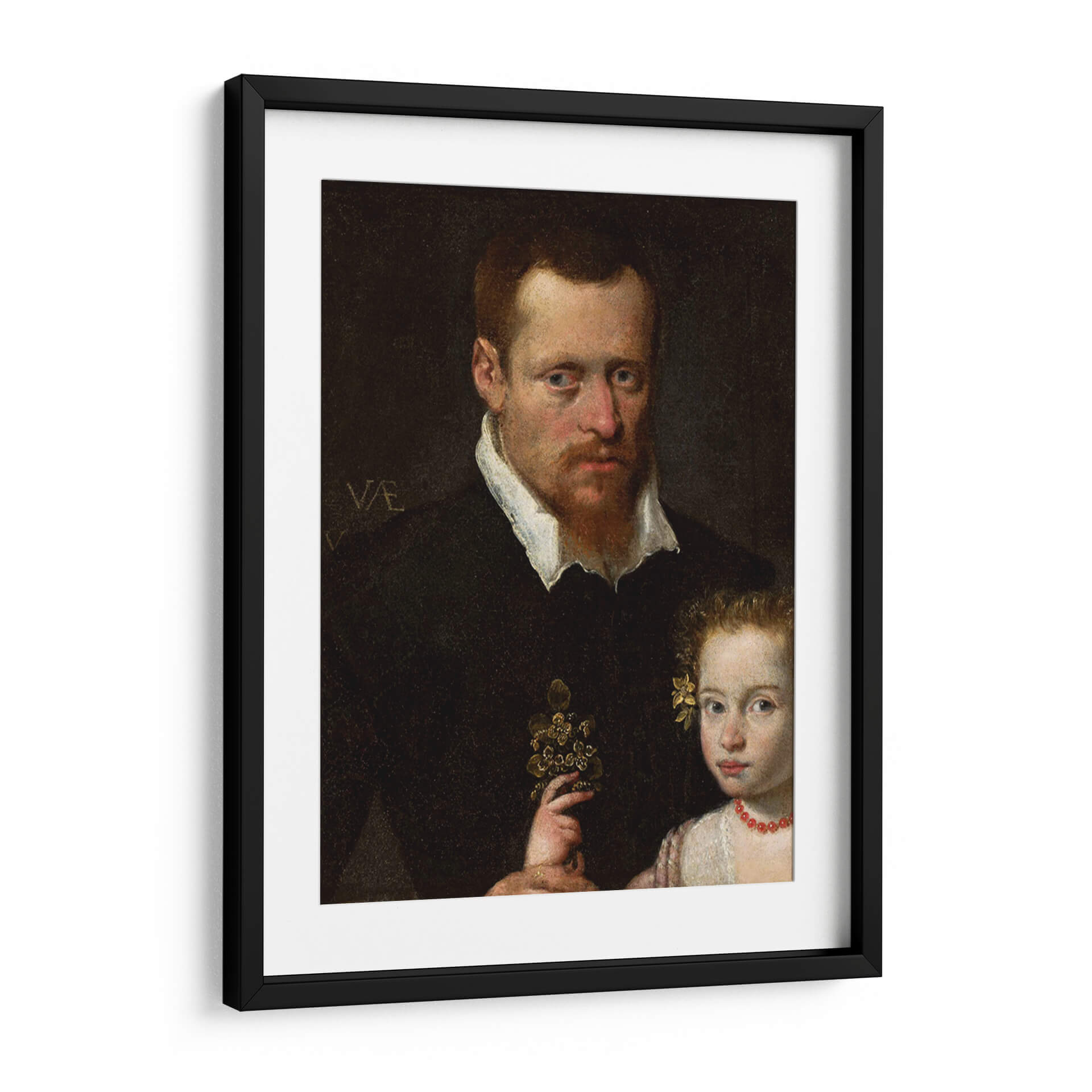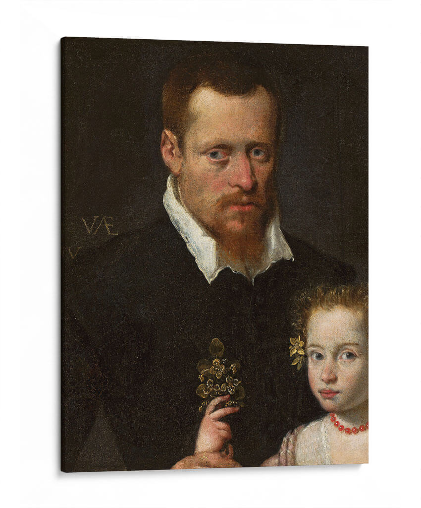 Captura la esencia de la historia y el afecto familiar con "Un hombre con su hija", una obra maestra que evoca calidez y conexión. Esta pieza, inspirada en el estilo renacentista, presenta un retrato íntimo de un hombre y una niña, donde la mirada del padre irradia protección y la inocencia de la pequeña se refleja en su expresión. La paleta de colores se centra en tonos oscuros y ricos, con toques sutiles de luz que resaltan los rostros y el detalle del ramo que sostiene la niña, creando una atmósfera de solemnidad y ternura. La composición clásica dirige la atención hacia la relación entre los personajes, invitando a la reflexión sobre los lazos familiares y el paso del tiempo. Este cuadro decorativo es ideal para añadir un toque de profundidad emocional y elegancia atemporal a tu sala de estar, estudio u oficina. Es una pieza que no solo embellece el espacio, sino que también cuenta una historia, inspirando conversaciones y añadiendo un carácter distintivo a la decoración de tu hogar. Transforma tu pared en una ventana a momentos de conexión humana y belleza artística. Ideal para amantes del arte clásico y retratos llenos de sentimiento.