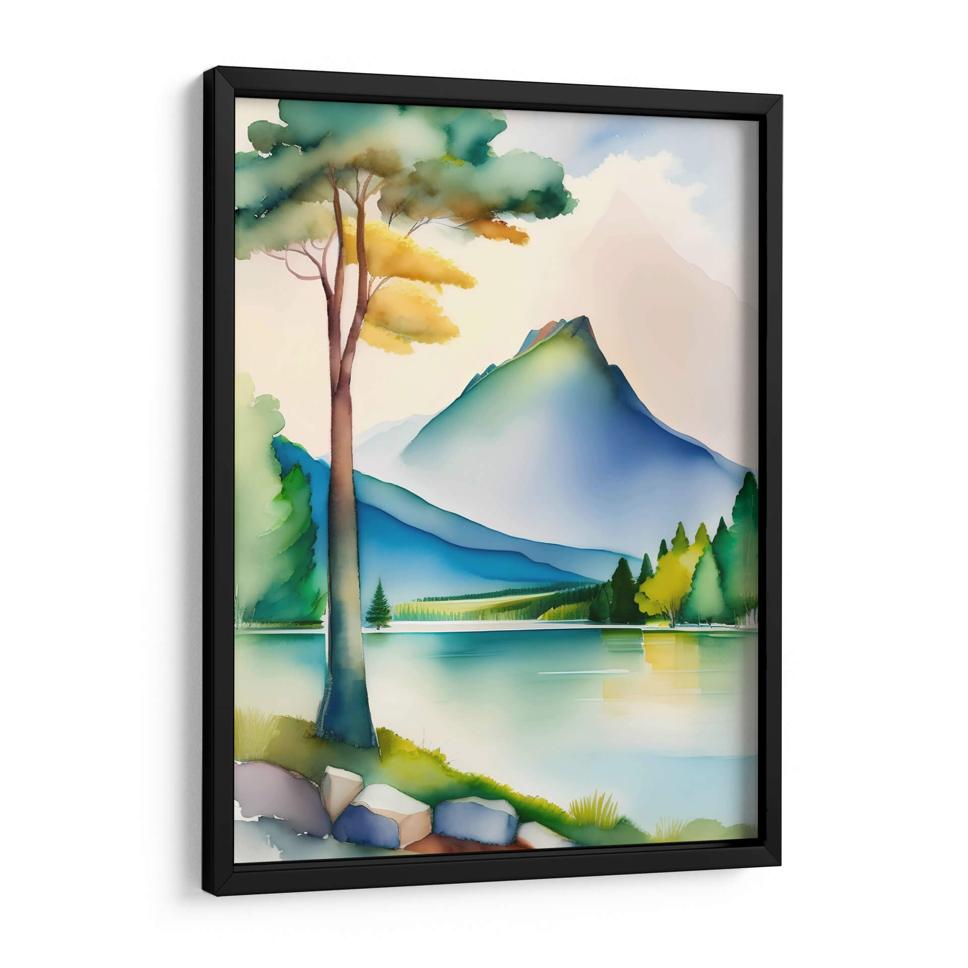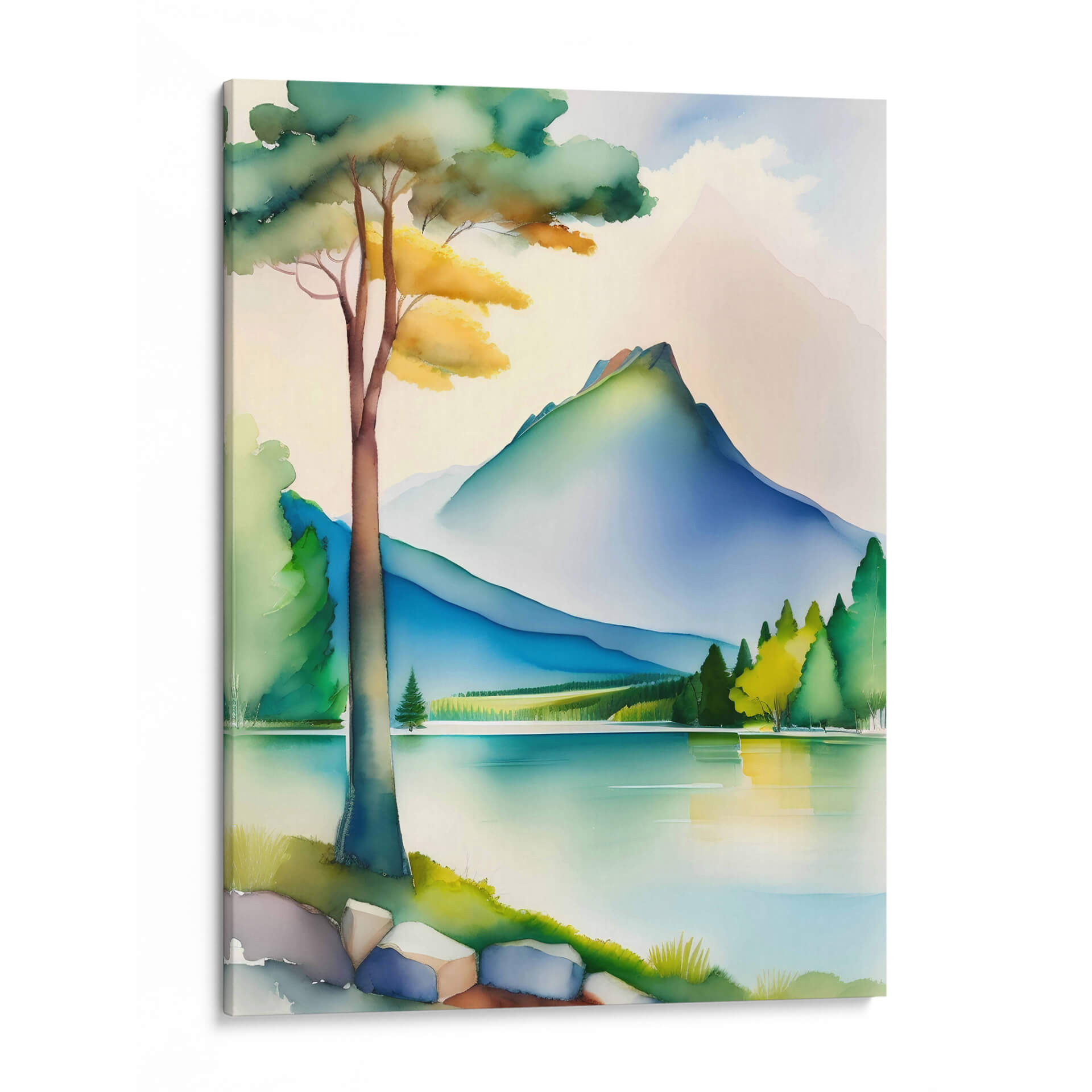 Sumérgete en la serenidad de la naturaleza con este cautivador cuadro decorativo "Acuarela CAT 1104" de DEA Digital Esoteric Art. Esta obra maestra evoca la tranquilidad de un paisaje sereno, donde un lago cristalino refleja las suaves tonalidades del cielo y las majestuosas montañas en la distancia. La composición, dominada por un árbol imponente en primer plano con sus ramas extendiéndose hacia un cielo etéreo, crea una sensación de profundidad y conexión con el entorno natural. La paleta de colores, que transita suavemente entre verdes vibrantes, azules profundos y toques de amarillo cálido y tierra, infunde una atmósfera de paz y armonía. El estilo acuarela, con sus pinceladas fluidas y translúcidas, añade una cualidad onírica y delicada a la escena, invitando a la contemplación. Ideal para quienes buscan añadir un toque de calma y belleza natural a su hogar u oficina, este cuadro decorativo transformará cualquier espacio en un refugio de paz. Transmite la esencia del arte contemporáneo con un toque espiritual, perfecto para salones, dormitorios o estudios que inspiren serenidad y reflexión. Descubre la belleza de la naturaleza a través de una perspectiva artística única y eleva la decoración de tus ambientes.