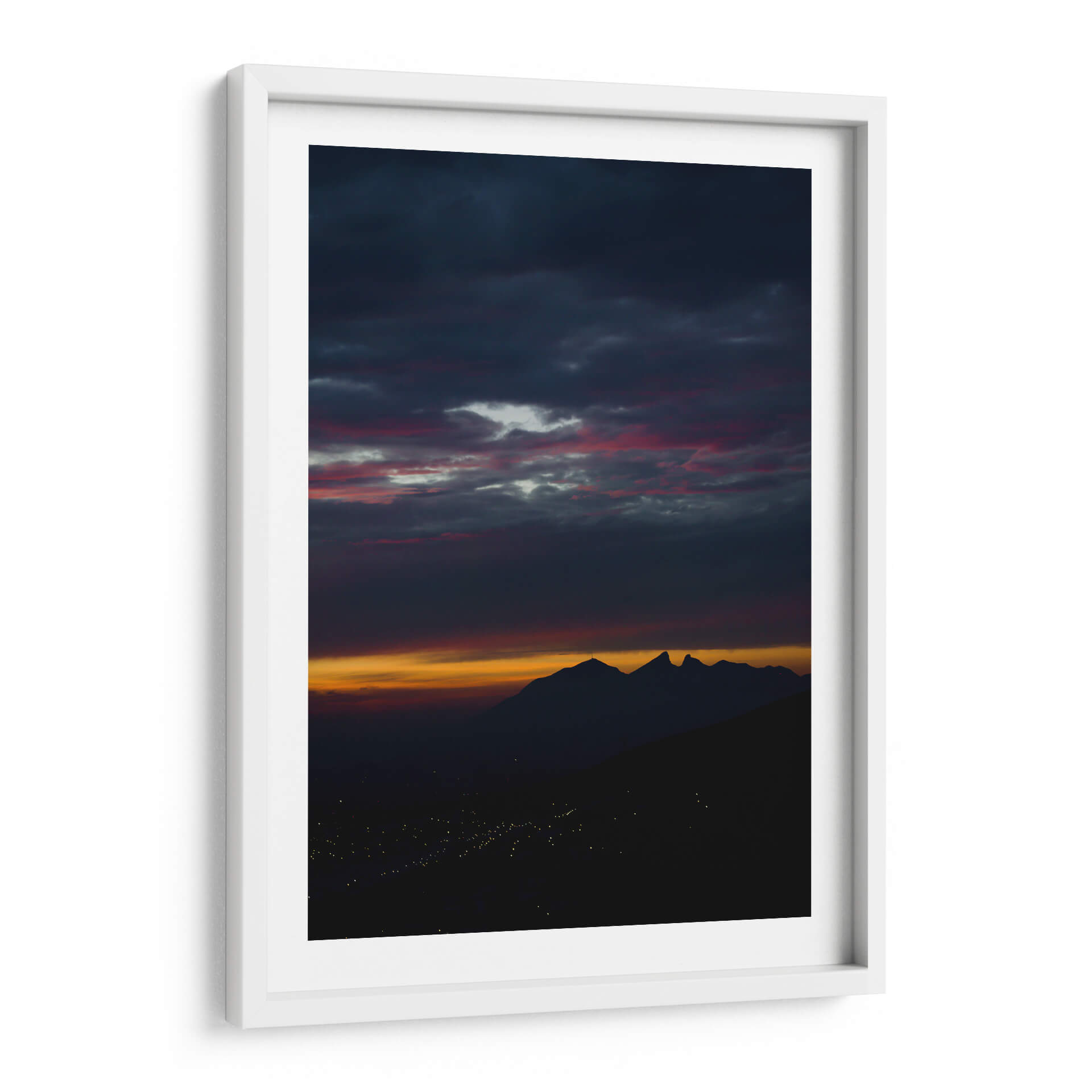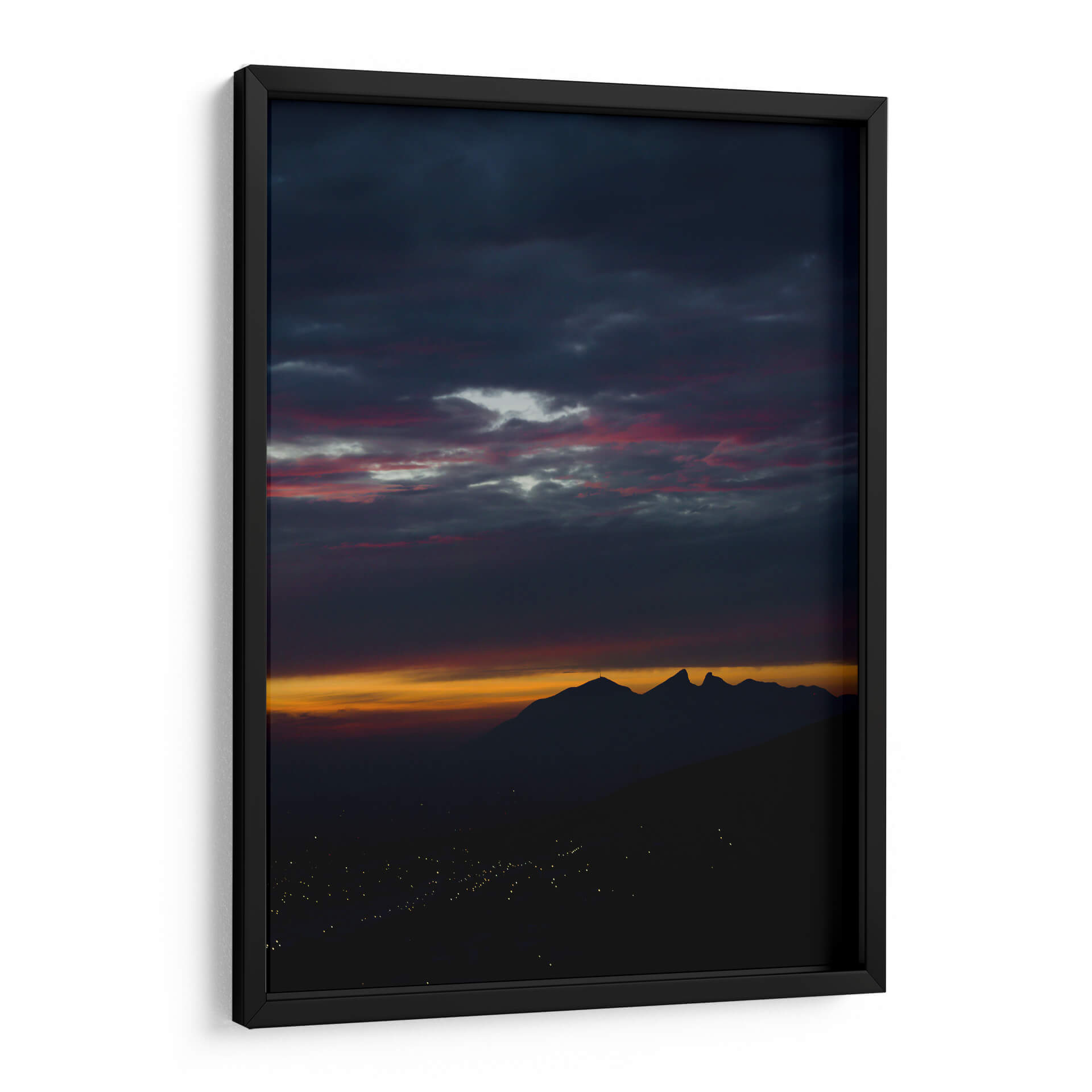 Captura la serenidad y el misterio del amanecer con "Amanecer Regio", una obra de arte visualmente impactante que transportará tu espacio a un estado de calma profunda. Este cuadro decorativo presenta un paisaje montañoso silueteado contra un cielo dramático, donde los últimos vestigios del crepúsculo se funden con las primeras luces del alba. Las nubes oscuras, teñidas de toques de púrpura y rosa, contrastan sutilmente con la banda anaranjada y dorada del horizonte, creando una atmósfera etérea y evocadora. Las luces tenues de un asentamiento humano a lo lejos añaden un toque de calidez y misterio a la composición, sugiriendo la presencia de vida bajo la inmensidad de la naturaleza. La paleta de colores, dominada por tonos profundos de azul noche, grises y los cálidos destellos del amanecer, confiere a la pieza una sensación de tranquilidad y introspección. "Amanecer Regio" es ideal para crear un punto focal sereno en tu sala de estar, un rincón de reflexión en tu estudio, o para infundir paz en tu dormitorio. Este cuadro decorativo contemporáneo es una invitación a contemplar la belleza del mundo natural y la transitoriedad de cada momento, aportando sofisticación y una dosis de inspiración a tu decoración. Una pieza perfecta para quienes buscan arte de pared que inspire paz y belleza.