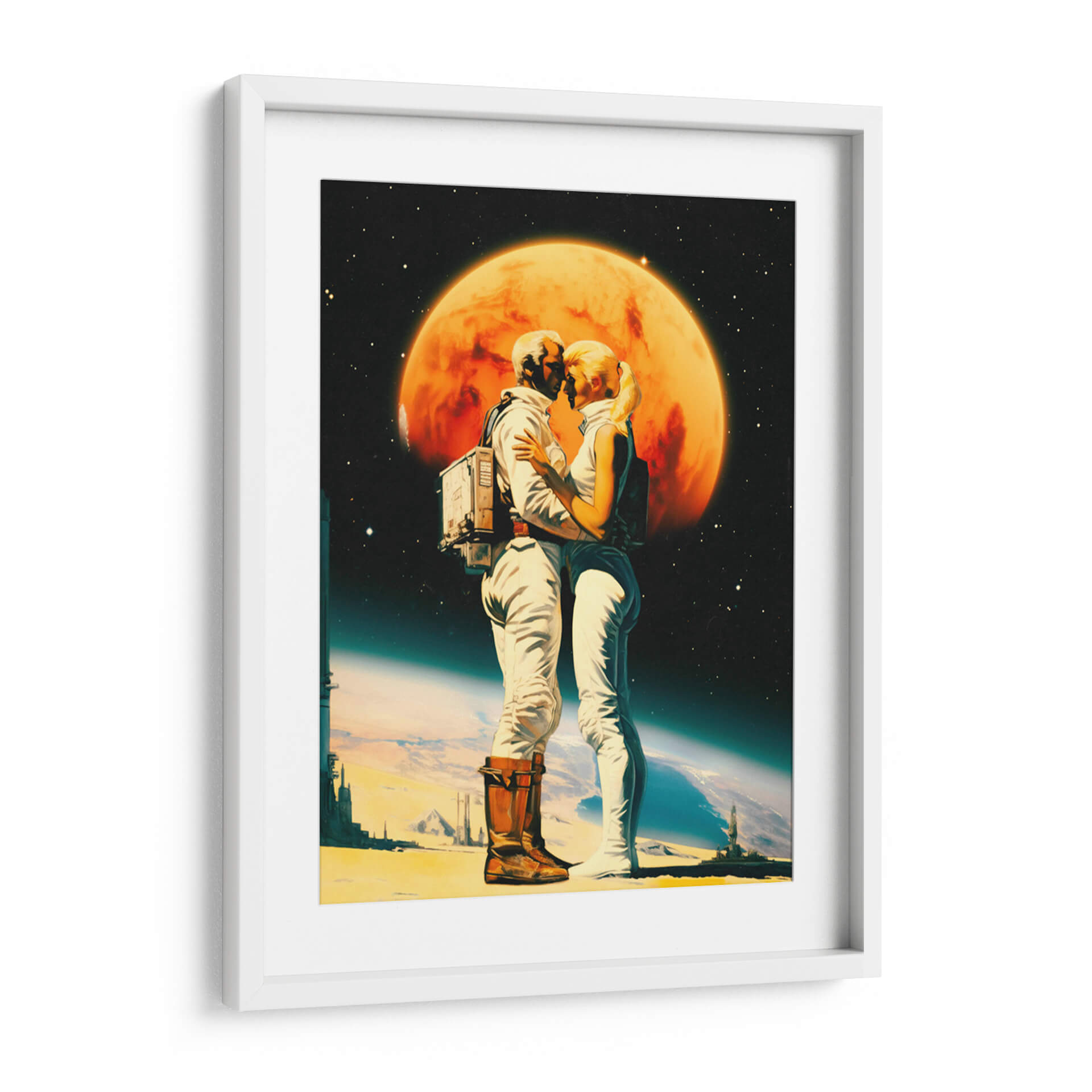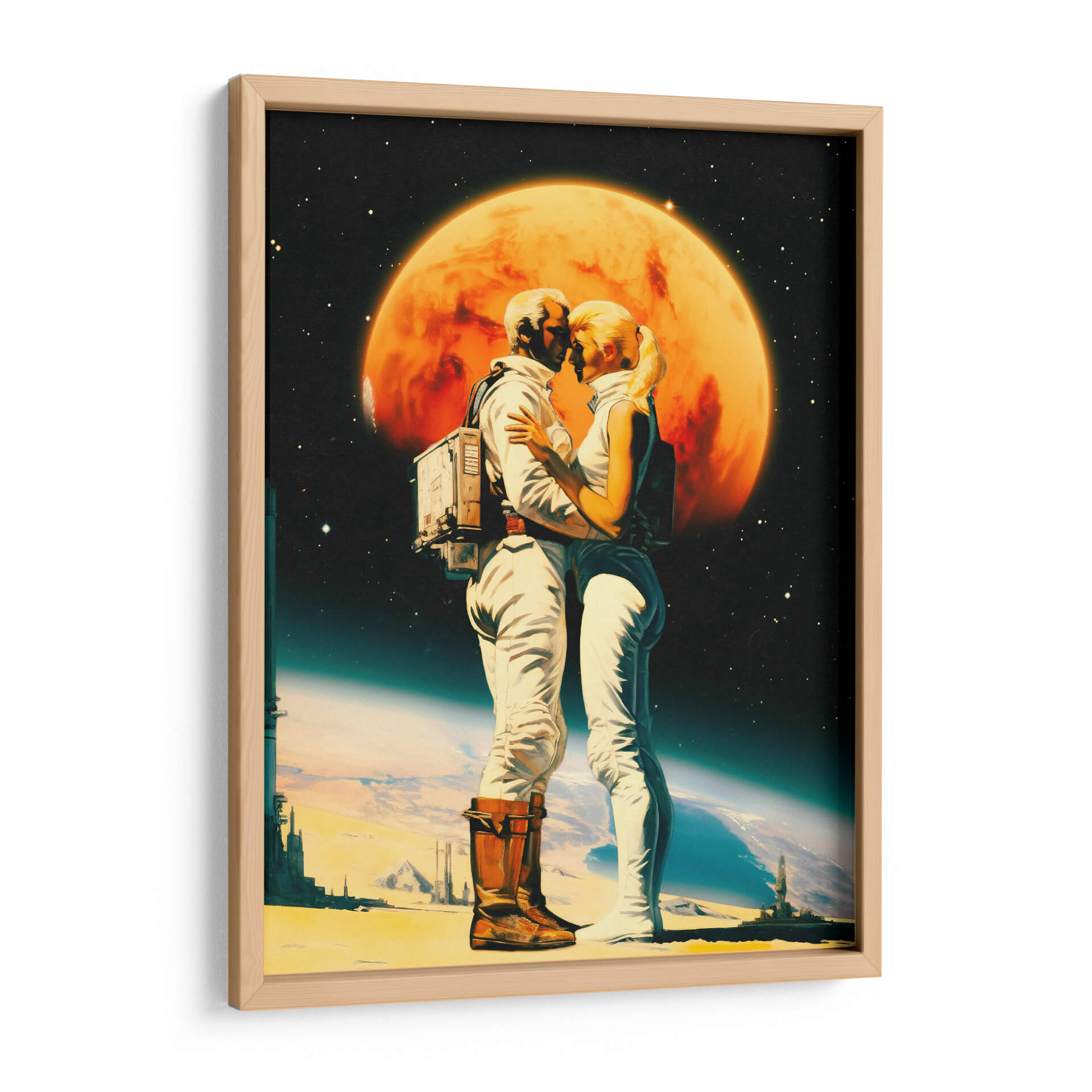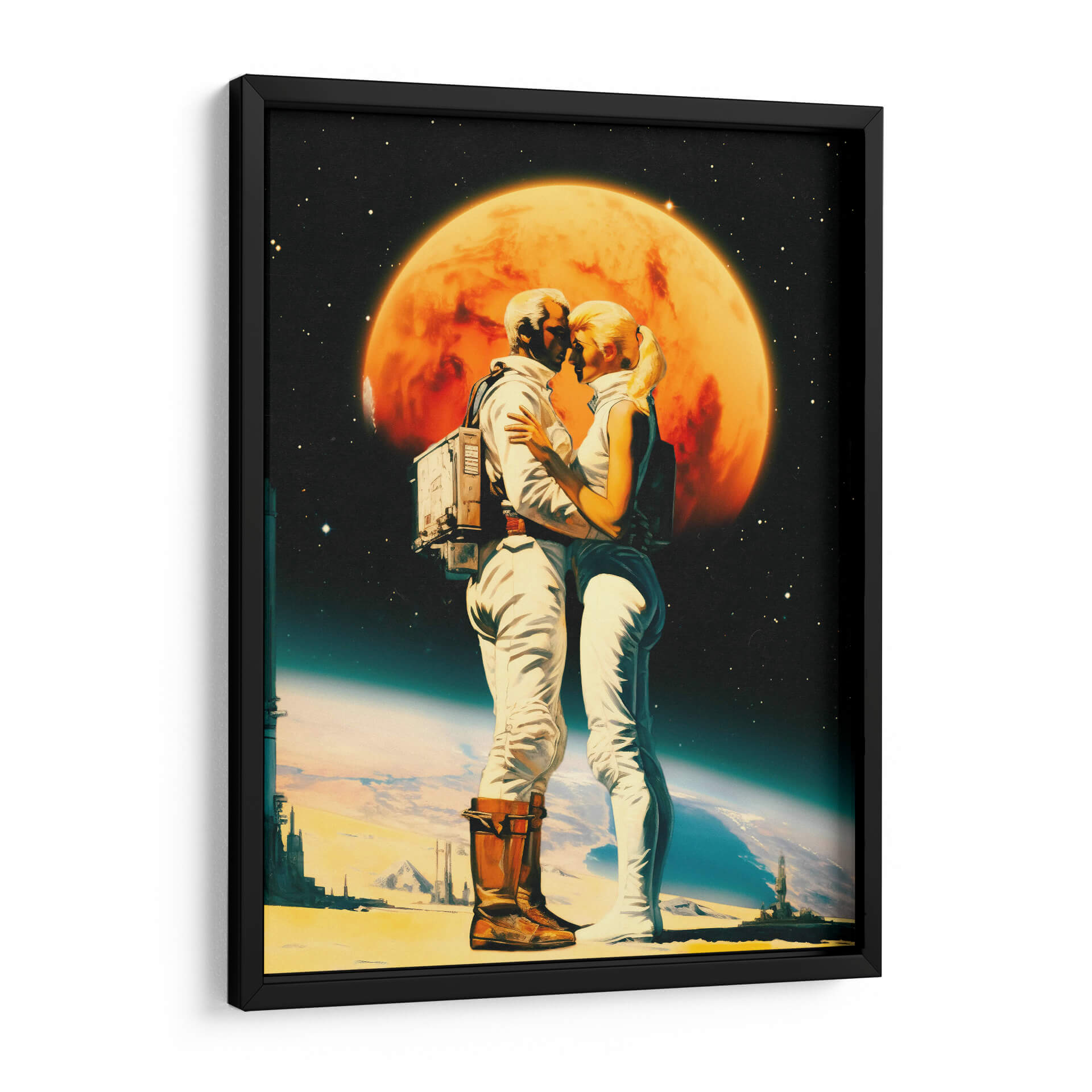 Sumérgete en un romance cósmico con "Amor Intergaláctico", una obra de arte digital que captura un momento íntimo entre dos astronautas frente a un planeta naranja vibrante. La pieza evoca una sensación de aventura y conexión profunda, fusionando el vasto misterio del espacio con la calidez de la relación humana. La paleta de colores, dominada por tonos naranjas intensos y contrastes oscuros del cosmos, crea una atmósfera dramática y cautivadora. Las figuras, vestidas con trajes espaciales detallados, se miran con ternura, sugiriendo una historia de amor que trasciende las barreras del universo. El estilo realista con toques fantásticos delinea un paisaje alienígena y estructuras futuristas, invitando a la imaginación a explorar lo desconocido. Este cuadro decorativo es ideal para quienes buscan añadir un toque de originalidad y emoción a su hogar u oficina, convirtiéndose en un punto focal que inspira conversaciones y sueños. "Amor Intergaláctico" no es solo una imagen, es una invitación a contemplar la infinitud de las posibilidades y la fuerza del vínculo humano en cualquier rincón de tu espacio vital.