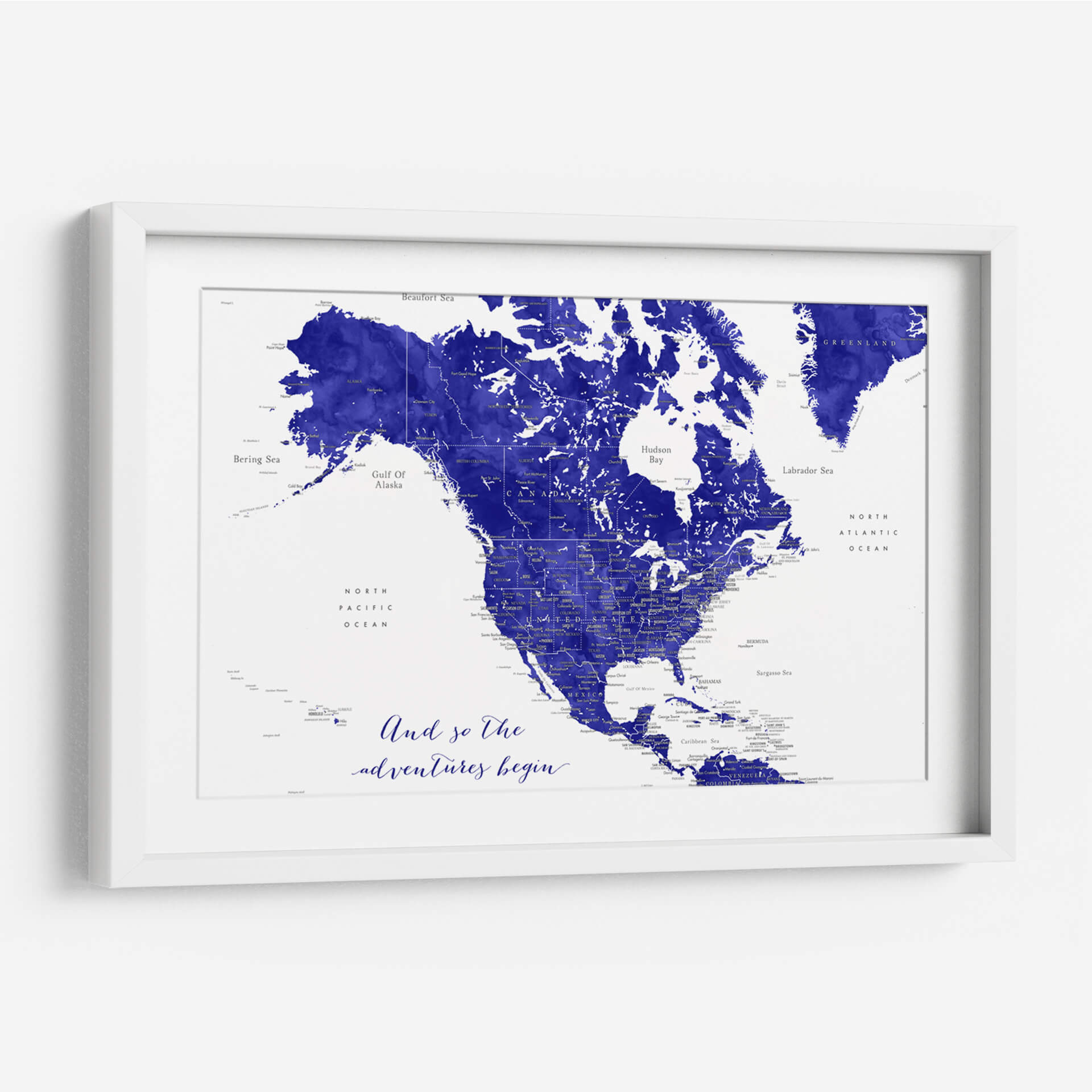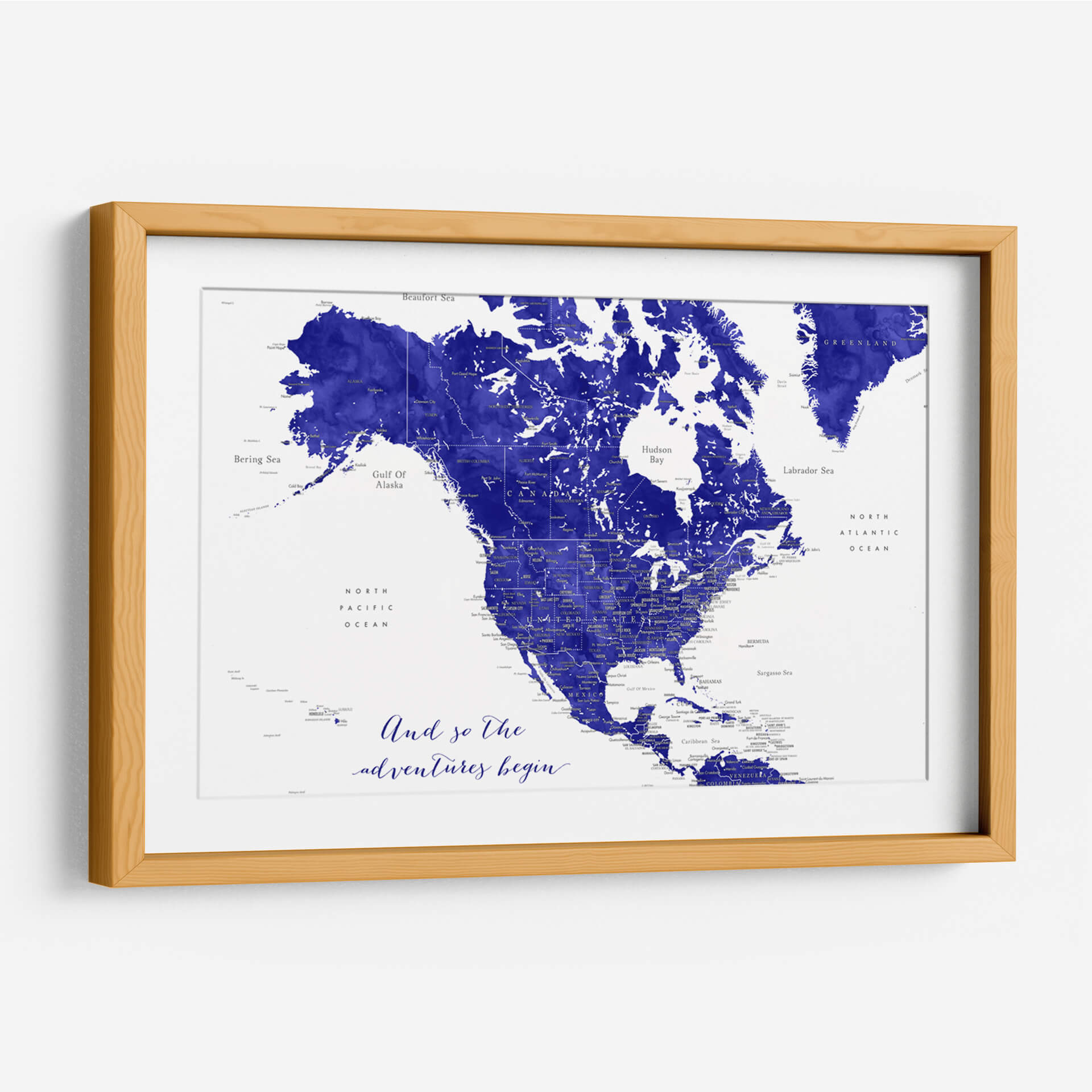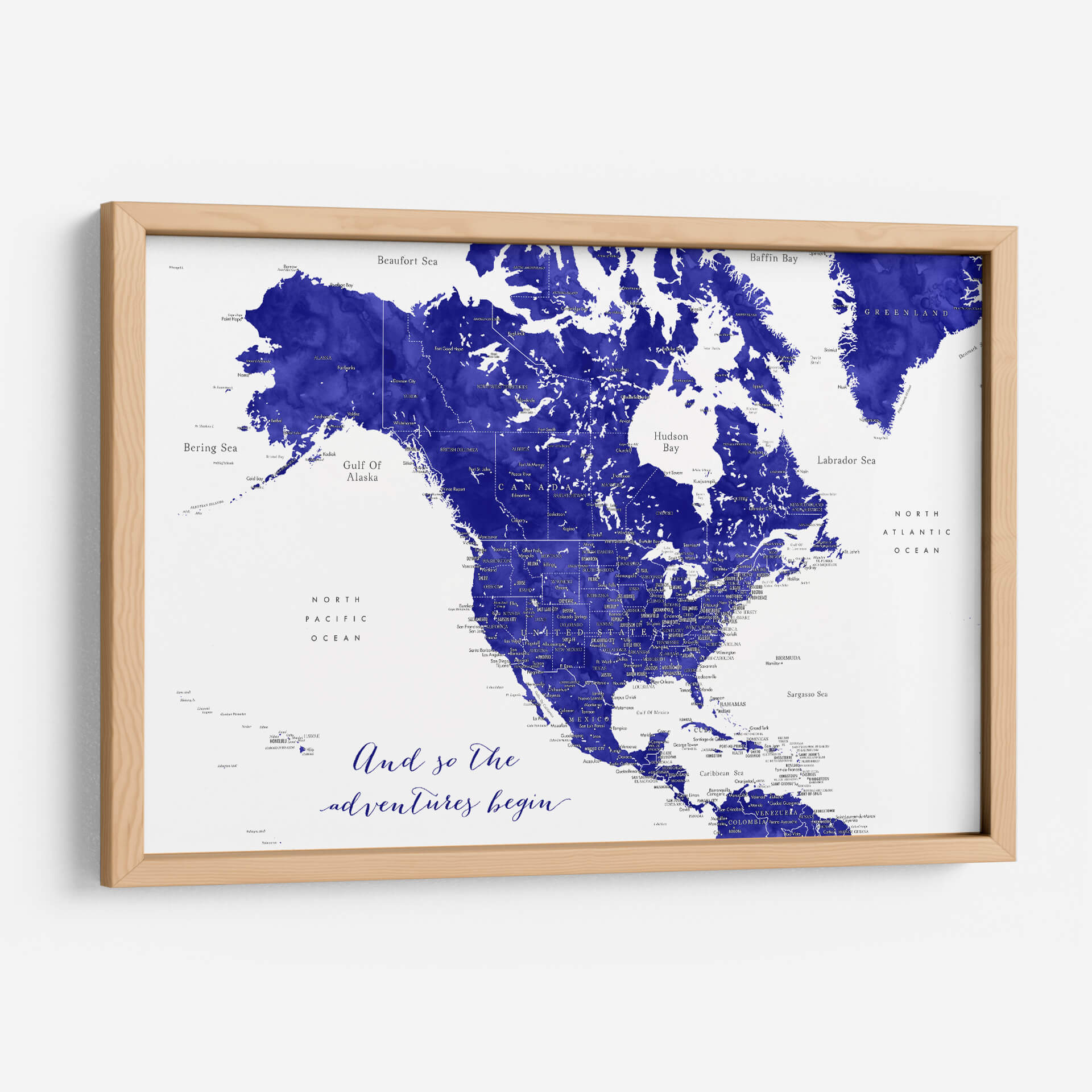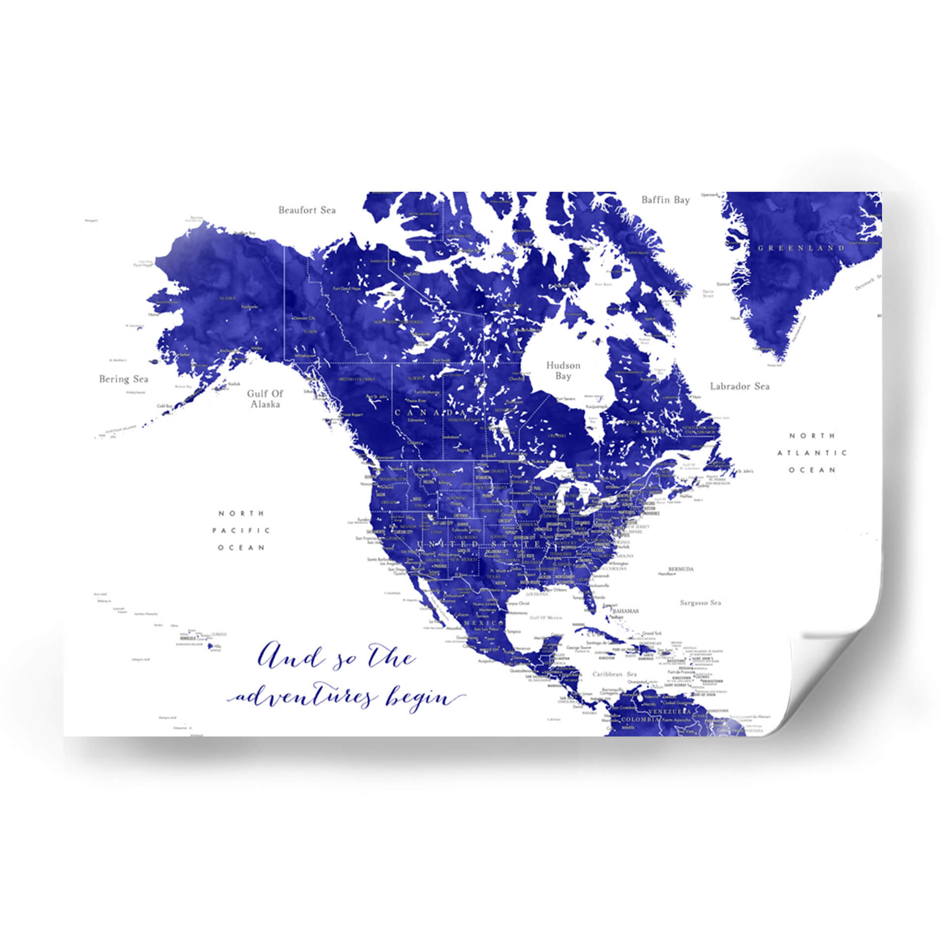And so the adventures begin - Mapa de aventuras de América del Norte en azul cobalto - Rosana Laiz Blursbyai