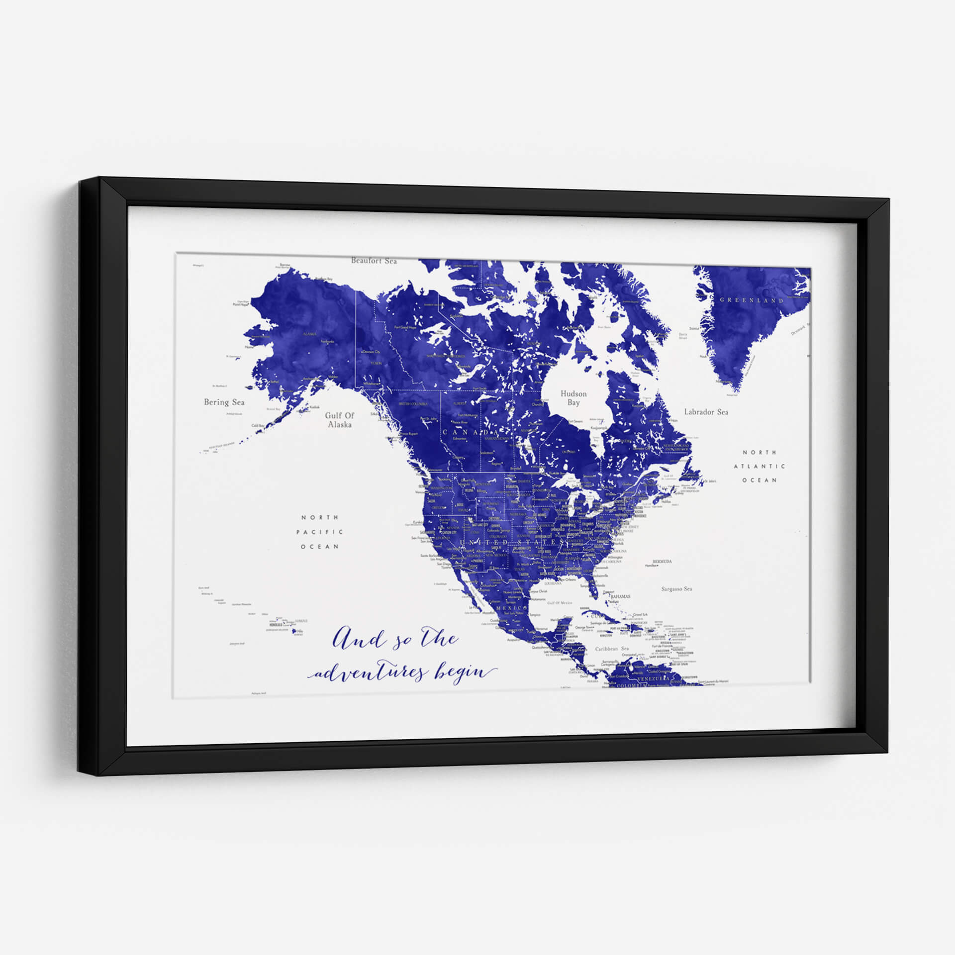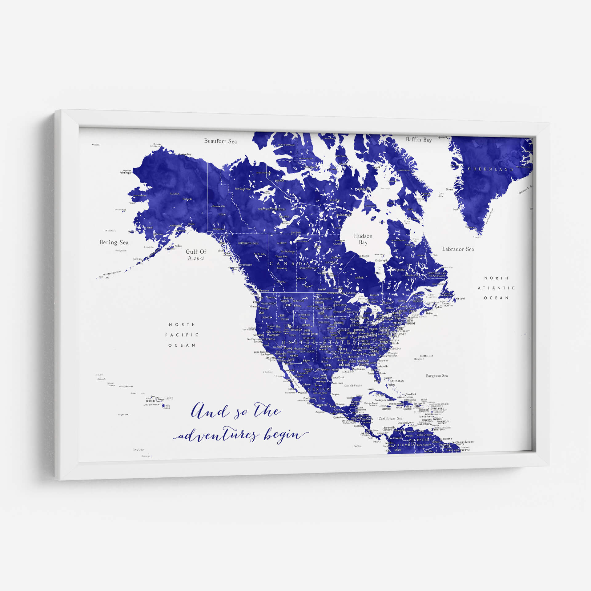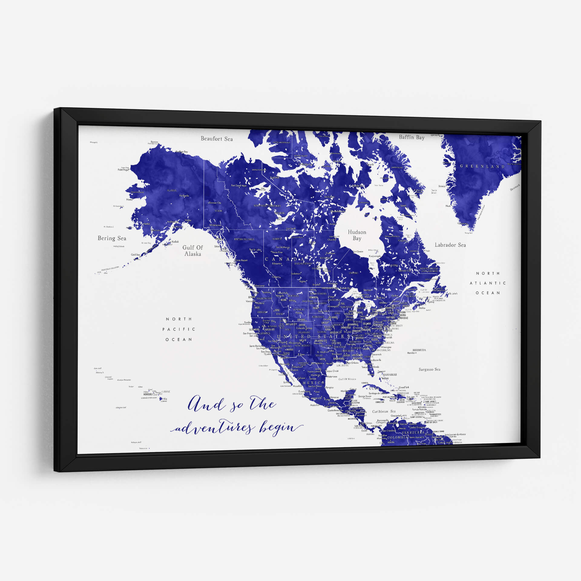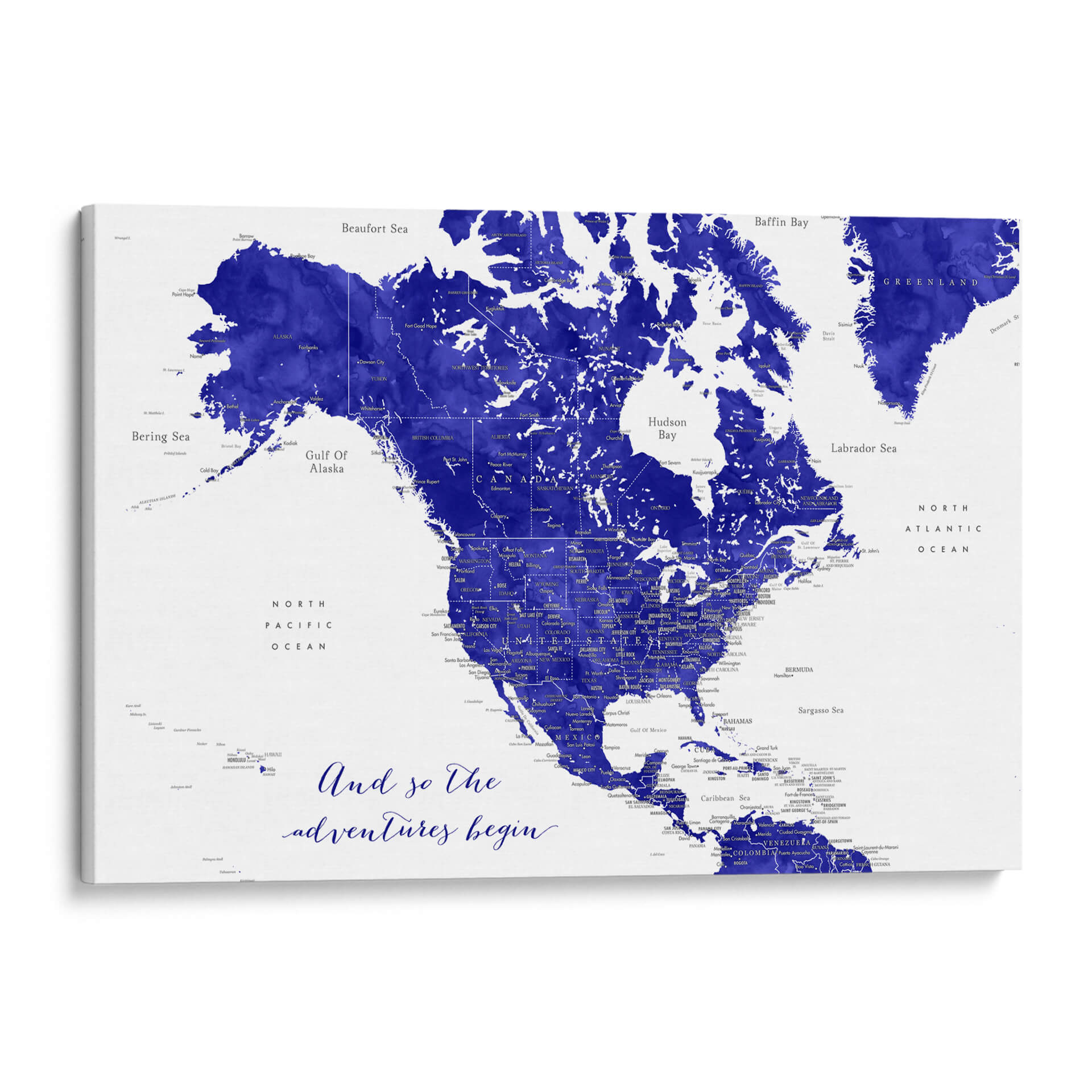 And so the adventures begin - Mapa de aventuras de América del Norte en azul cobalto - Rosana Laiz Blursbyai