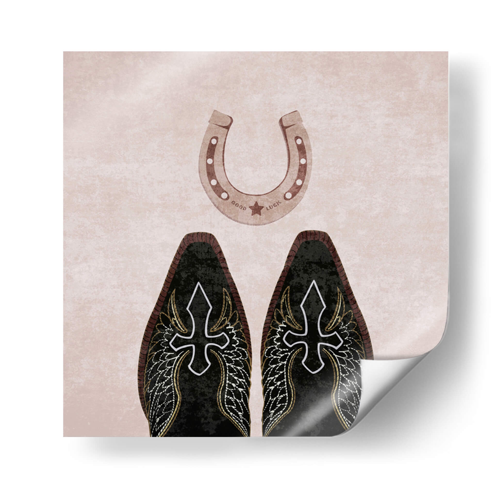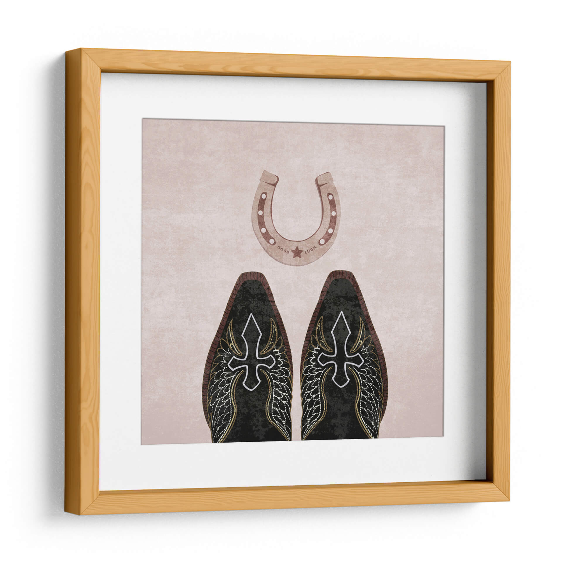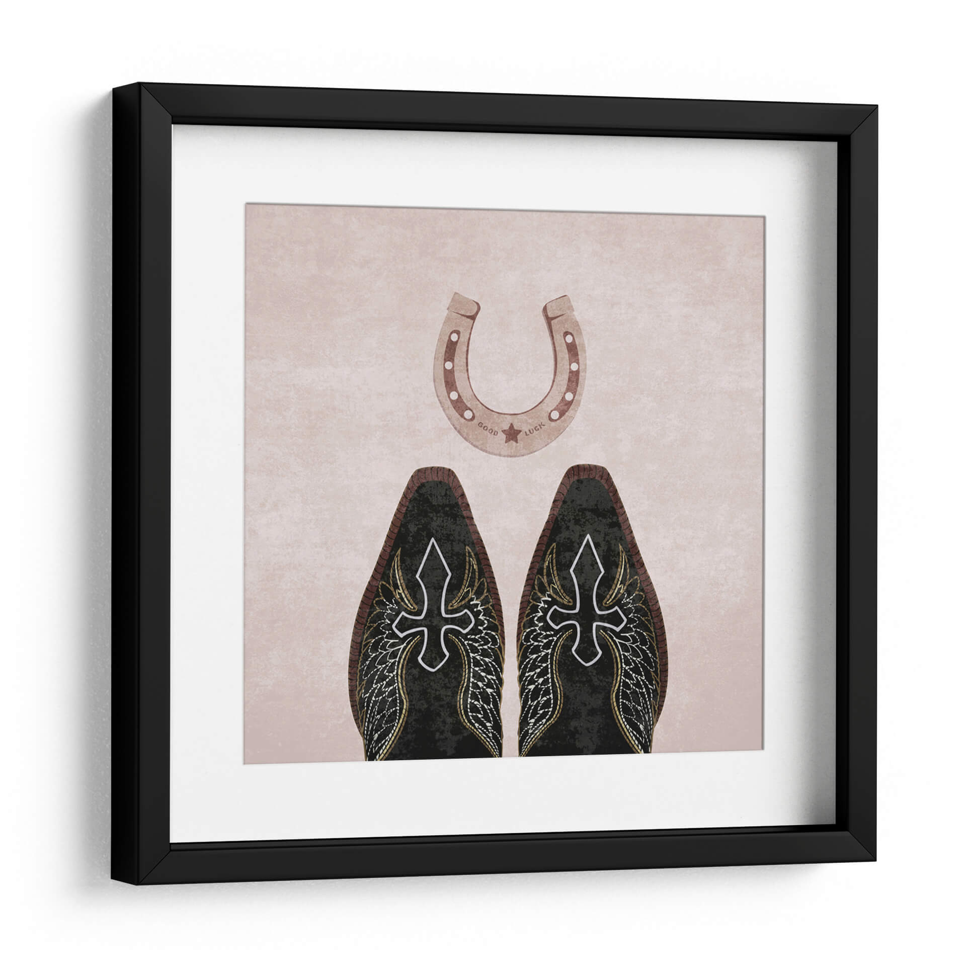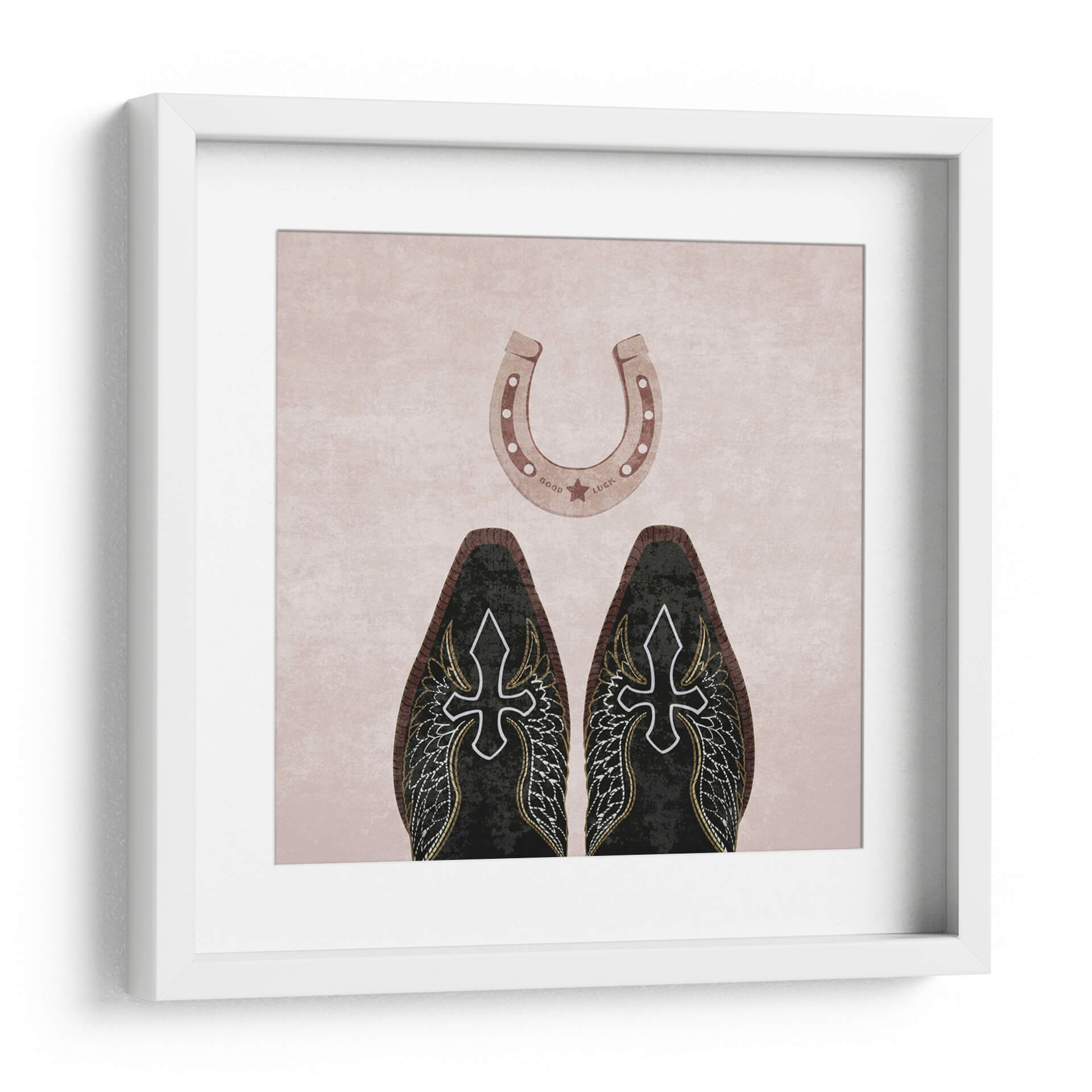 Sumérgete en el espíritu del oeste con "Armonía Occidental", una cautivadora obra de arte de Emel Tunaboylu. Esta pieza evoca una profunda conexión con la tradición y la aventura, presentando un par de botas de vaquero ricamente detalladas y un símbolo de la herradura de la buena suerte. Los colores cálidos y terrosos, combinados con un diseño estilizado, crean una atmósfera acogedora y nostálgica, perfecta para cualquier espacio que busque un toque de carácter rústico y sofisticado. La composición minimalista pero impactante, con sus delicados bordados y el toque simbólico de la herradura, invita a la reflexión sobre el viaje y la fortuna. Ideal para salones, estudios u oficinas que deseen inspirar confianza y un espíritu libre. Este cuadro decorativo es una invitación a traer la esencia del oeste a tu hogar, añadiendo profundidad y un estilo inconfundible a tu decoración.