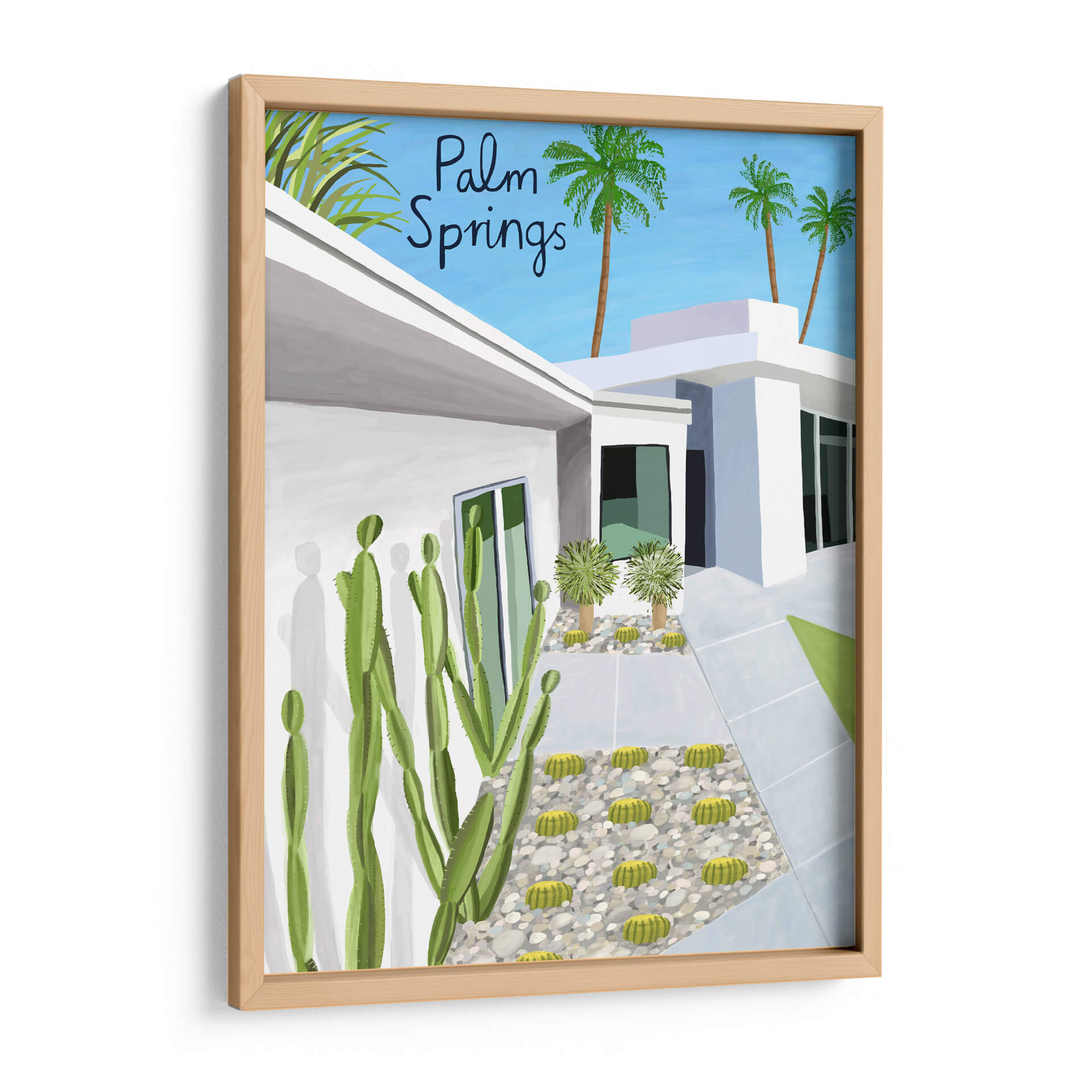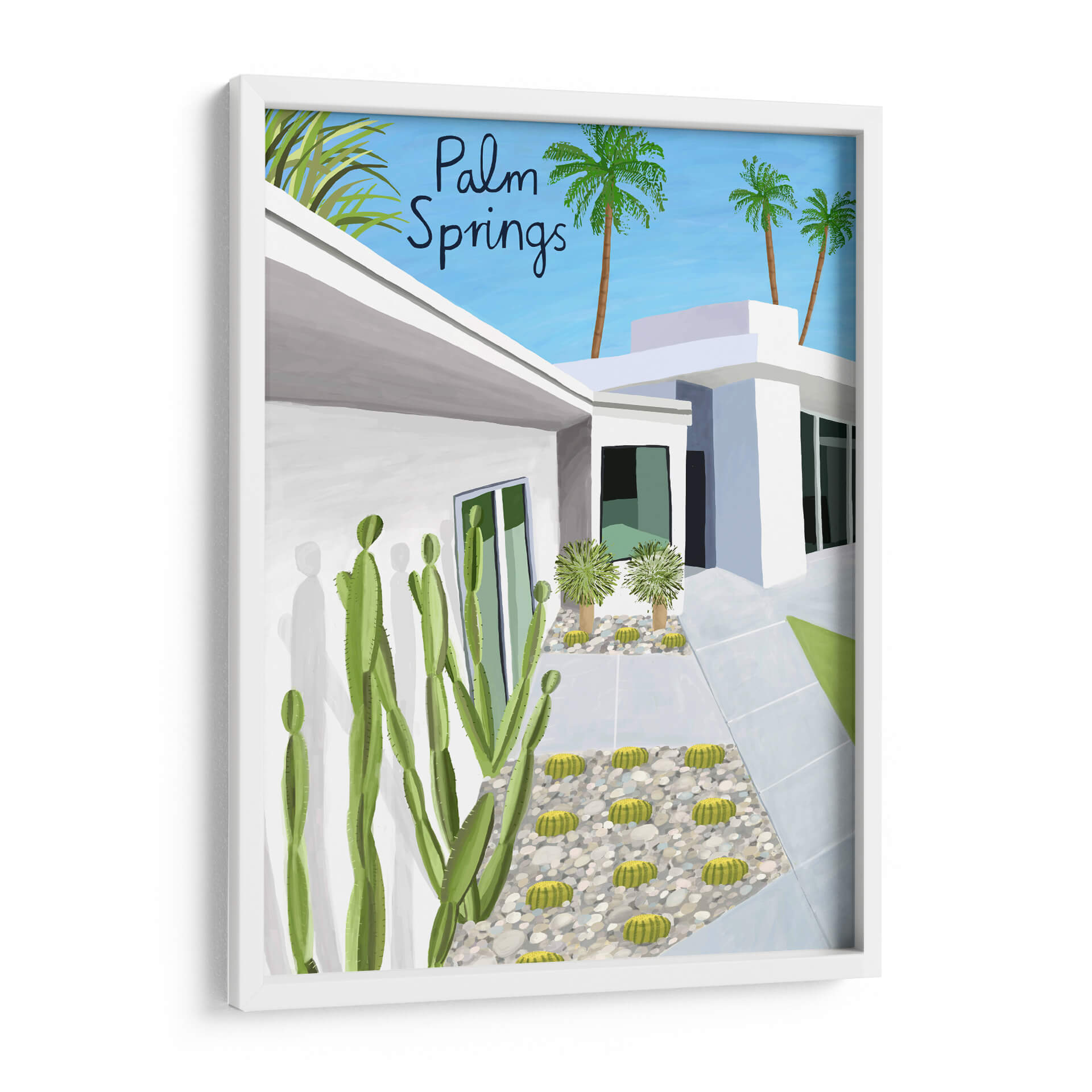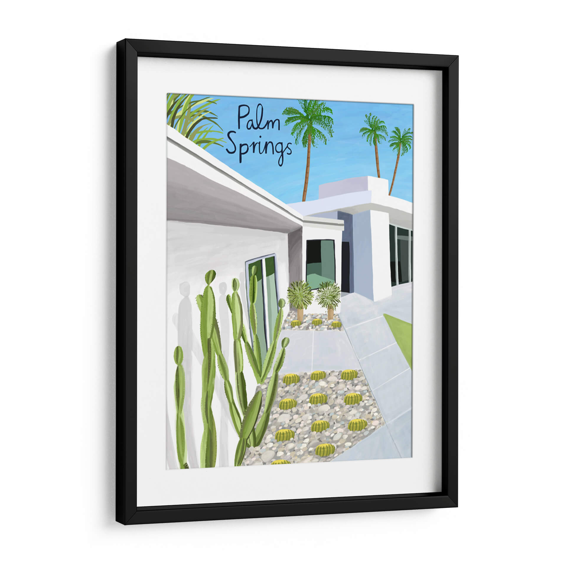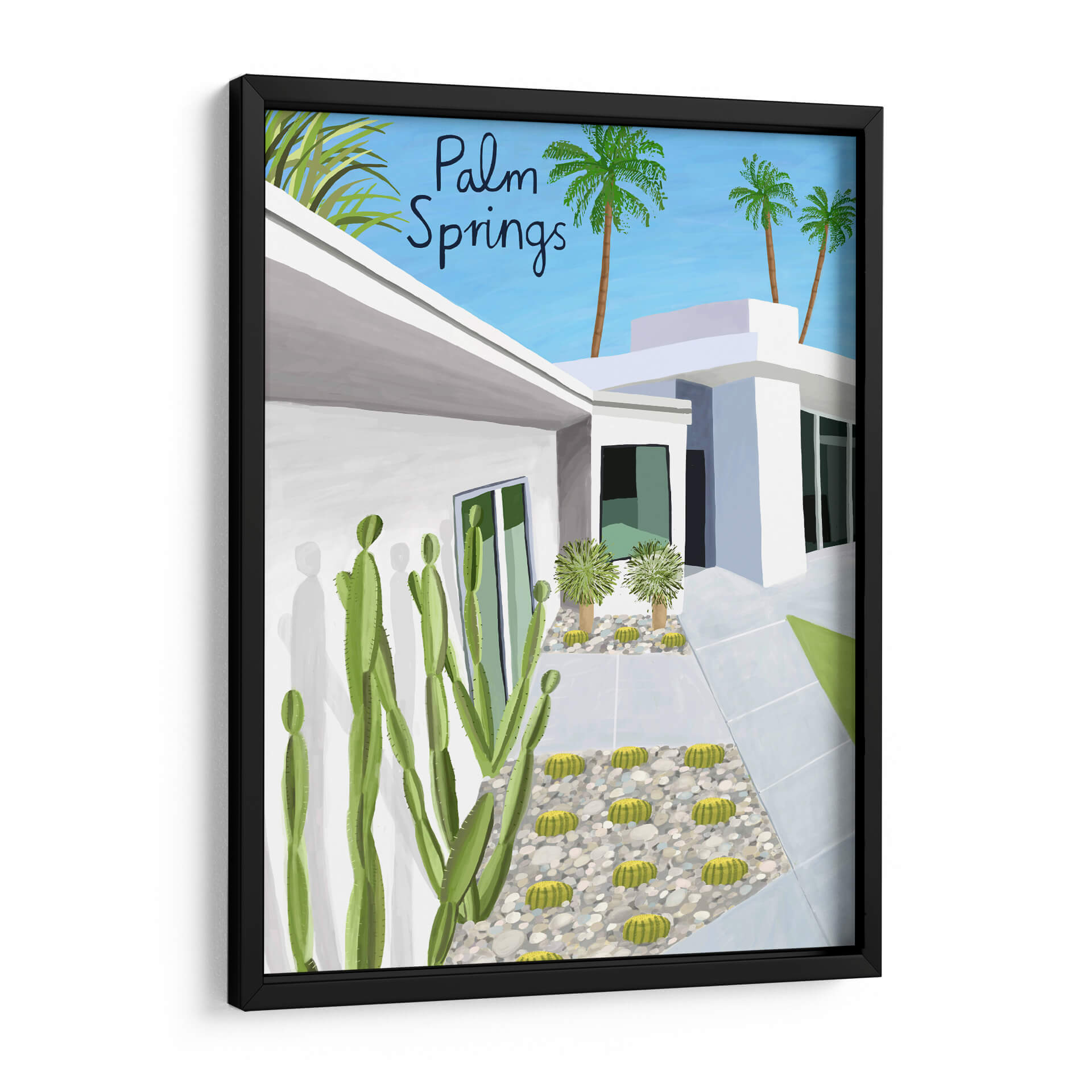 Sumérgete en la icónica arquitectura de Palm Springs con esta cautivadora obra de arte de Carla Daly. La pieza captura la esencia del estilo moderno de mediados de siglo, con sus líneas limpias, formas geométricas y una paleta de colores vibrantes que evoca la calidez del desierto californiano. Los cactus saguaro esbeltos y las exuberantes palmeras se alzan majestuosamente contra un cielo azul brillante, creando una escena serena y a la vez enérgica. Los tonos blancos puros de la arquitectura contrastan maravillosamente con los verdes intensos de la vegetación y el azul profundo del cielo, ofreciendo un festín visual para los amantes del diseño y la arquitectura. Este cuadro decorativo es una invitación a revivir la época dorada del diseño moderno, aportando una dosis de sol y sofisticación a cualquier espacio. Ideal para salas de estar, oficinas o cualquier rincón que busque un toque de estilo retro y aireado. La habilidad de Carla Daly para simplificar formas y capturar la atmósfera de un lugar la convierte en una pieza de arte de pared imprescindible para quienes aprecian la estética moderna y la belleza del paisaje desértico.