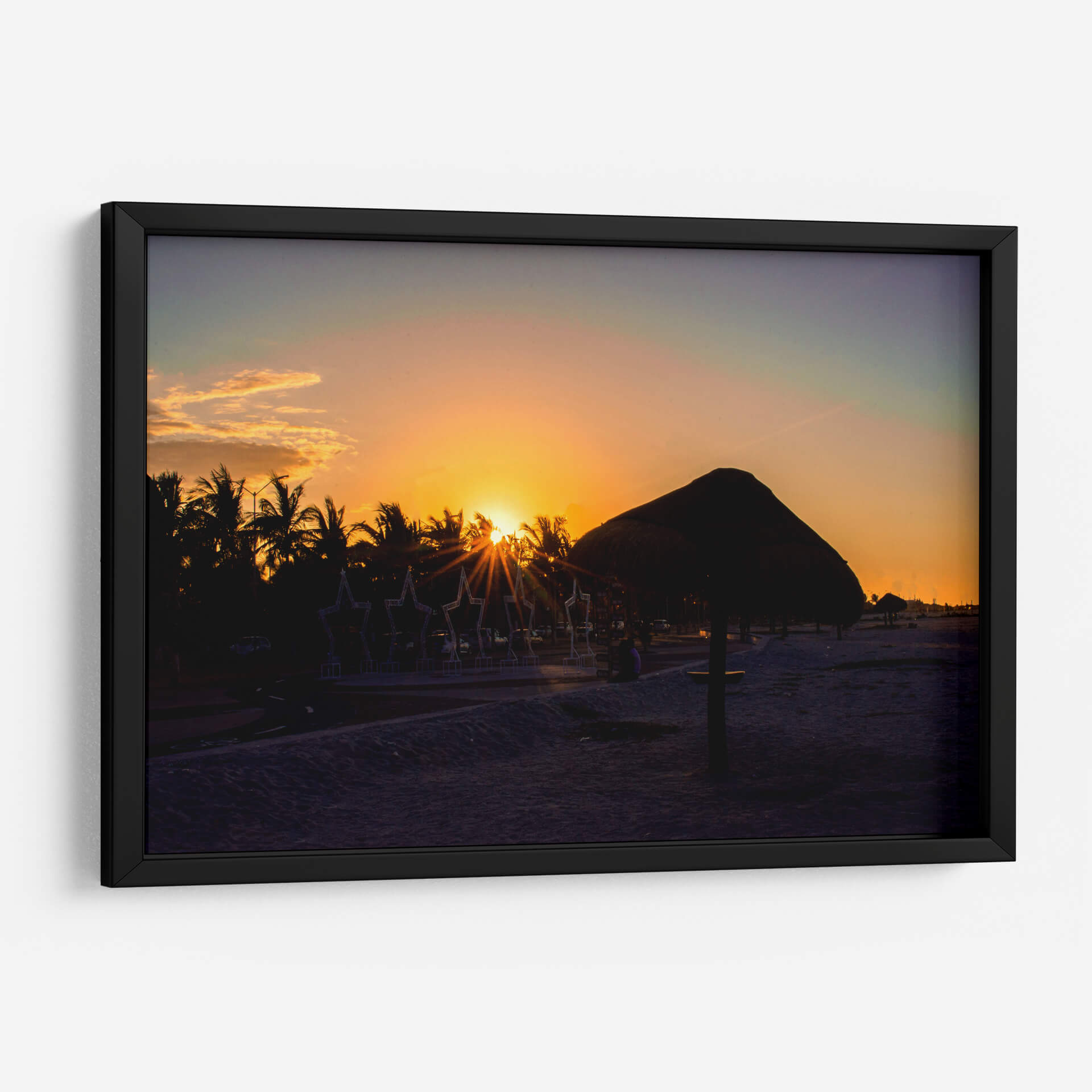 Sumérgete en la calidez y serenidad de 'Atardecer Tropical' de Alvaro Martinz, una obra de arte que captura la esencia de un paraíso al anochecer. Los vibrantes tonos naranjas y dorados del sol poniente se filtran a través de las siluetas de exuberantes palmeras, creando un espectáculo visual inolvidable. La composición, que combina la vastedad del cielo crepuscular con la textura de la arena y la silueta de una cabaña tropical, evoca una profunda sensación de paz y evasión. Este cuadro decorativo es perfecto para añadir un toque de calidez y sofisticación a cualquier espacio, transportando instantáneamente a tu hogar u oficina a un ambiente vacacional. Ideal para salones, dormitorios o cualquier lugar donde desees infundir una atmósfera de tranquilidad y belleza natural. La luz que emana de la puesta de sol, junto con los detalles de las nubes y la silueta detallada de las palmeras, hacen de esta pieza una ventana a la relajación. Decora tus paredes con este paisaje evocador y disfruta de la magia de un atardecer tropical todos los días, creando un refugio de paz y estilo.