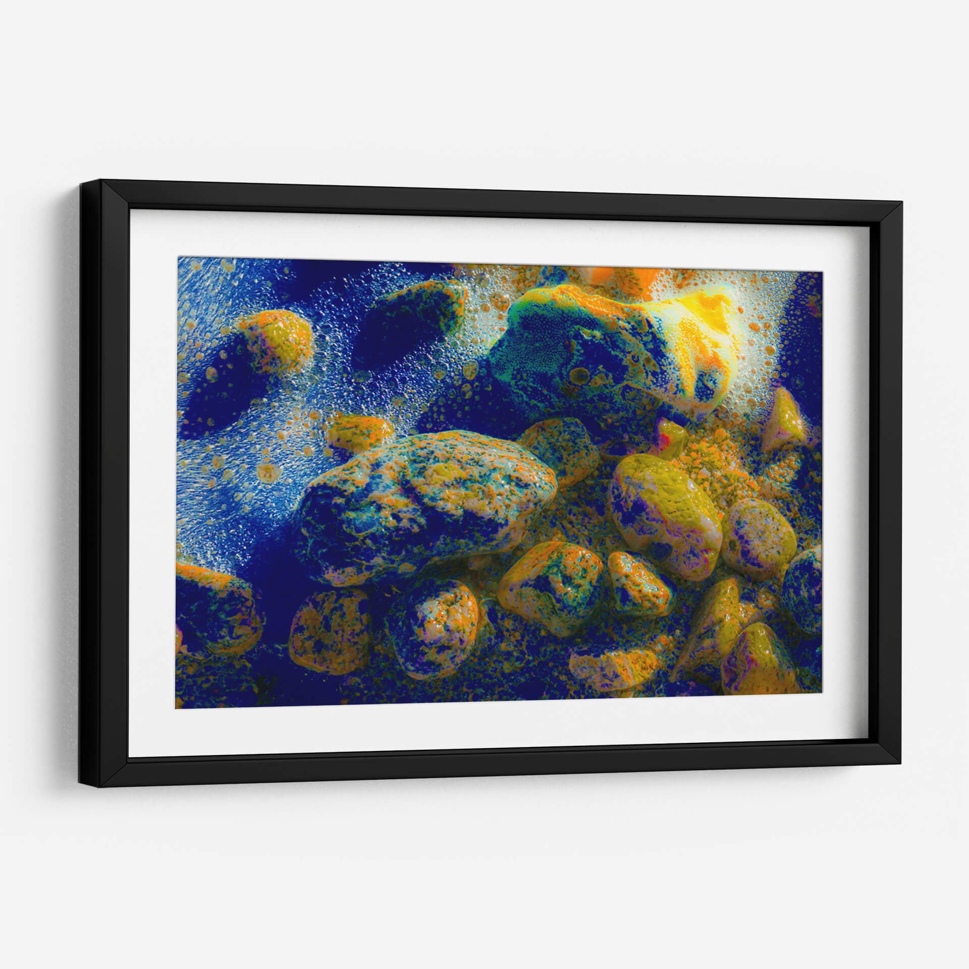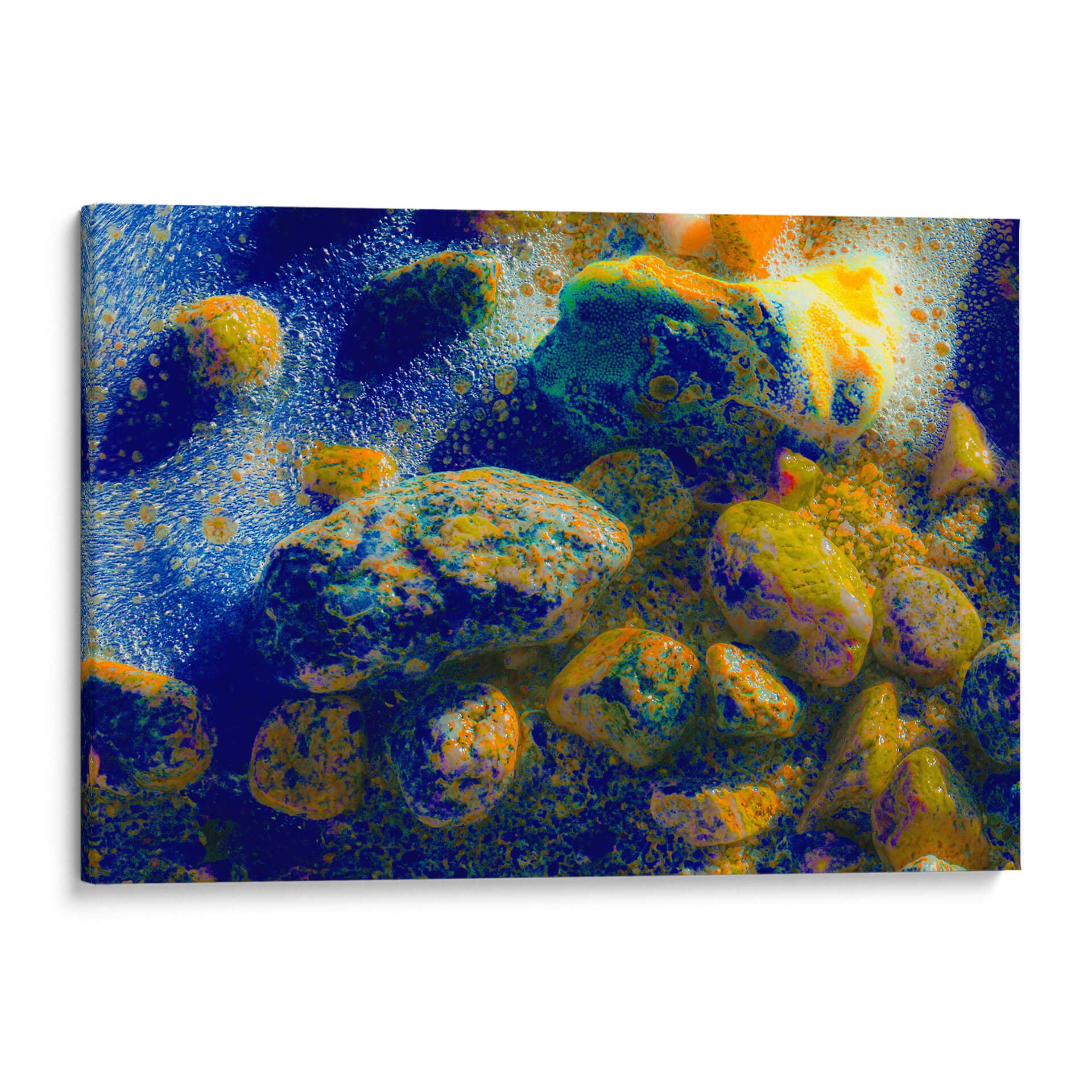 Sumérgete en la vibrante y enigmática obra "Balance de azul y amarillo" del artista FErB. Este cuadro decorativo abstracto te transporta a un universo de texturas y contrastes, donde el profundo azul cobalto se entrelaza con destellos cálidos de amarillo y ocre. La composición, que evoca la forma y el color de guijarros o formaciones geológicas bajo una luz intensa, crea una sensación de profundidad y misterio. Las burbujas o efervescencias sutiles añaden una dinámica y un toque etéreo, sugiriendo un proceso natural o una transformación en curso. Ideal para espacios que buscan un punto focal audaz y lleno de energía, este arte de pared contemporáneo es perfecto para salas de estar, estudios u oficinas que deseen infundir vitalidad y un toque de sofisticación moderna. La armonía entre los tonos fríos y cálidos genera un equilibrio visual cautivador, invitando a la contemplación y a la interpretación personal. Transforma tu hogar en una galería de arte con esta pieza única que promete ser un tema de conversación. Es un lienzo que aporta carácter y un aire de aventura a cualquier decoración.