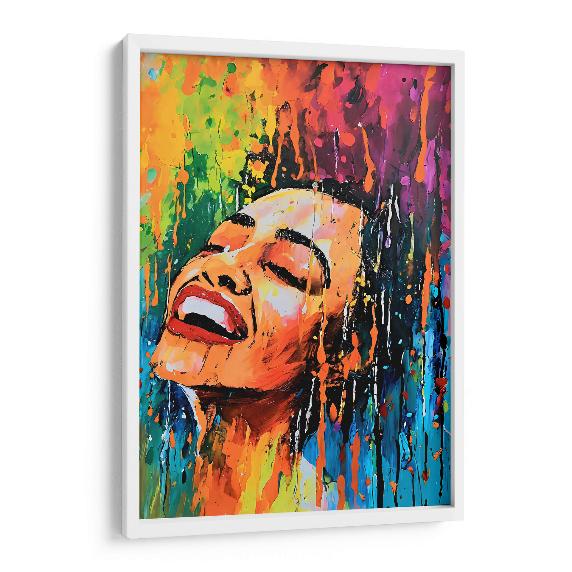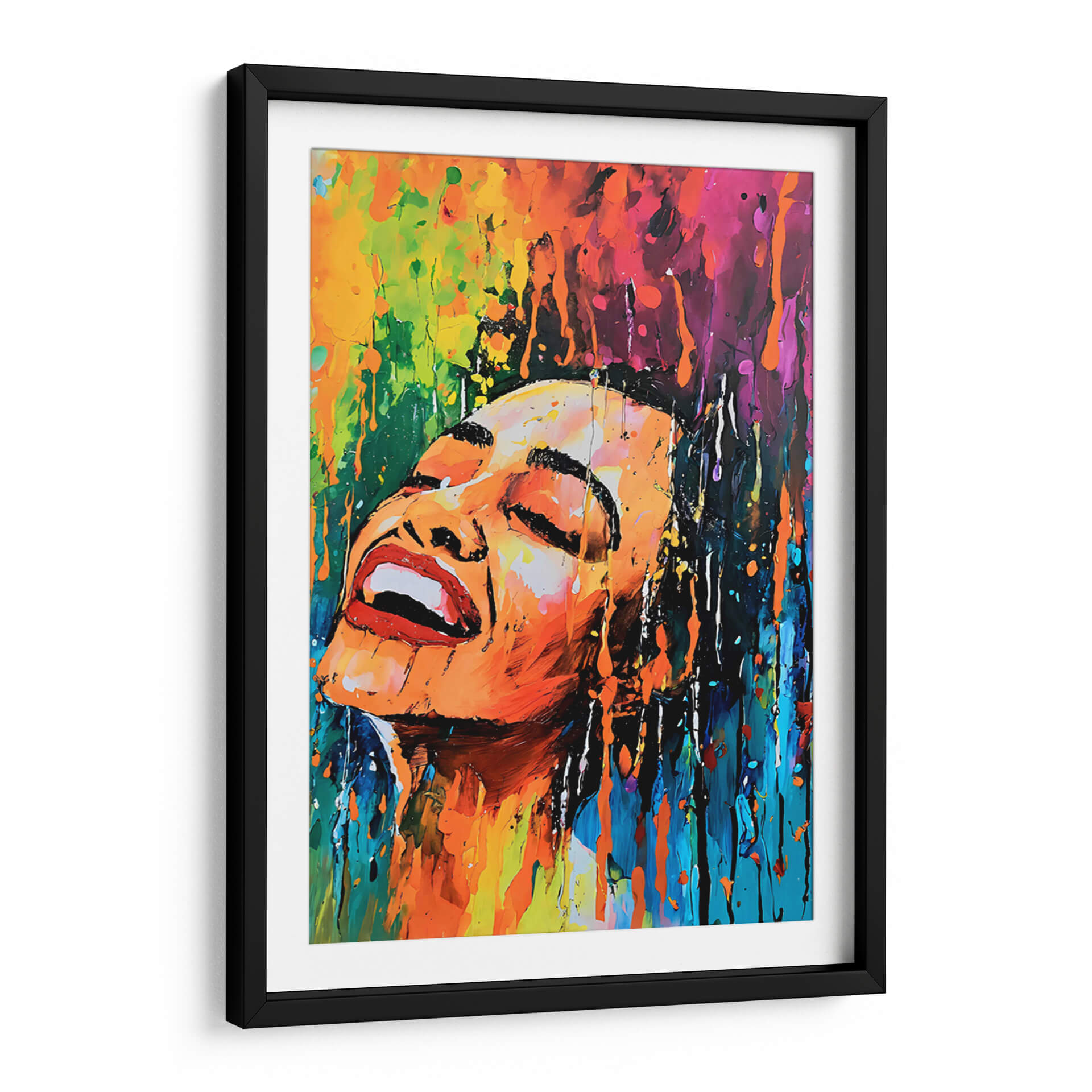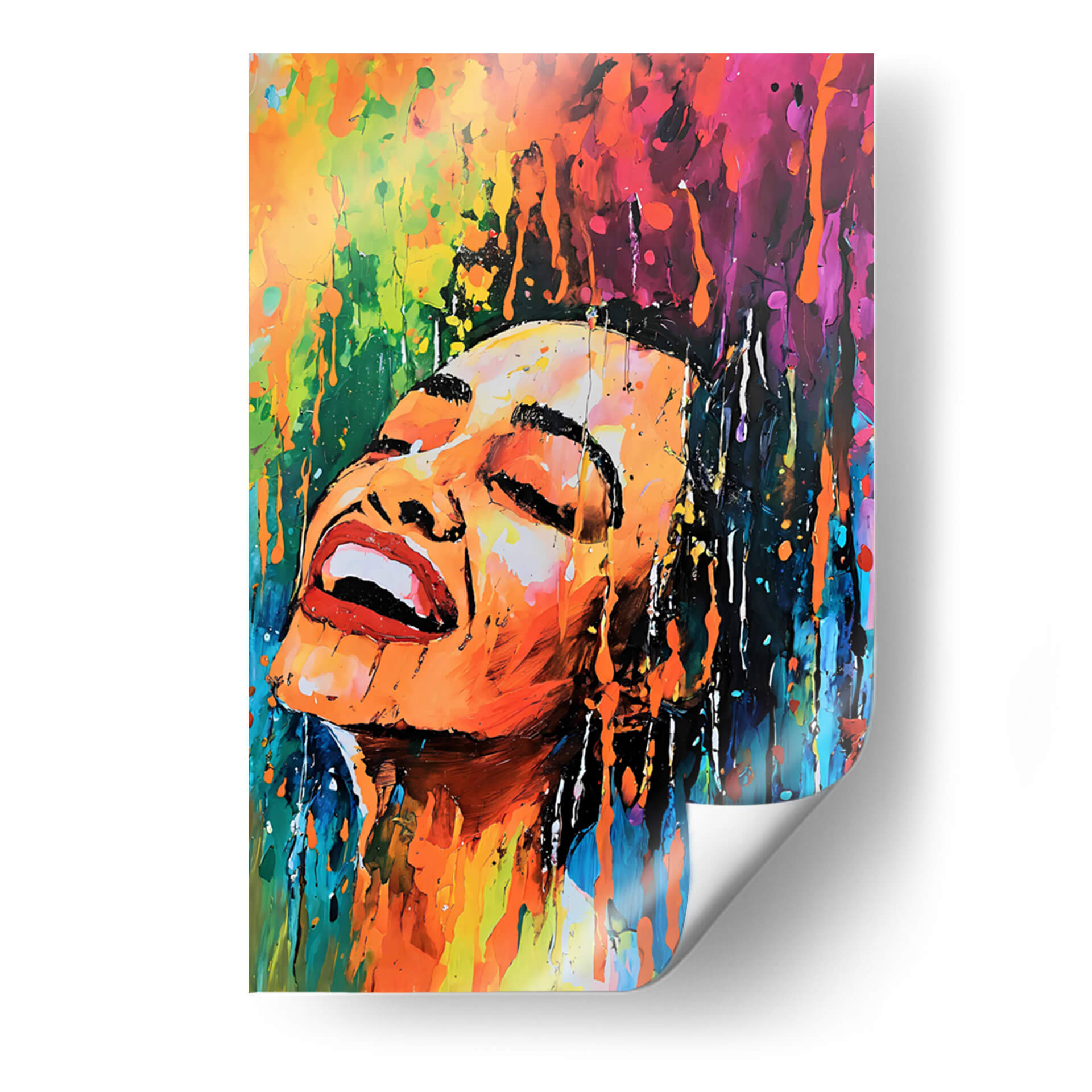 Sumérgete en la explosión de vida y emoción que ofrece el cuadro decorativo "Baño de Color Acrílico", una obra maestra vibrante del artista DEA Digital Esoteric Art. Esta pieza captura un momento de pura efervescencia, con el rostro de una persona representado en un estilo abstracto y expresionista. Los colores fluyen y se entrelazan en una cascada de tonos cálidos y fríos, desde naranjas y amarillos intensos hasta azules profundos y púrpuras vibrantes, creando una atmósfera de alegría desbordante y energía liberadora. Las pinceladas audaces y la técnica de goteo añaden una textura dinámica y un sentido de movimiento, como si la propia esencia del color se desprendiera de la obra. Ideal para quienes buscan infundir vitalidad y un toque de arte contemporáneo en su hogar u oficina, este cuadro decorativo se convierte en un punto focal cautivador. Es perfecto para salones modernos, estudios creativos o cualquier espacio que necesite una dosis de optimismo y estilo. Permite que este baño de color ilumine tu entorno y despierte tus sentidos, transformando tu pared en una ventana a la expresión artística más pura y emocionante.
