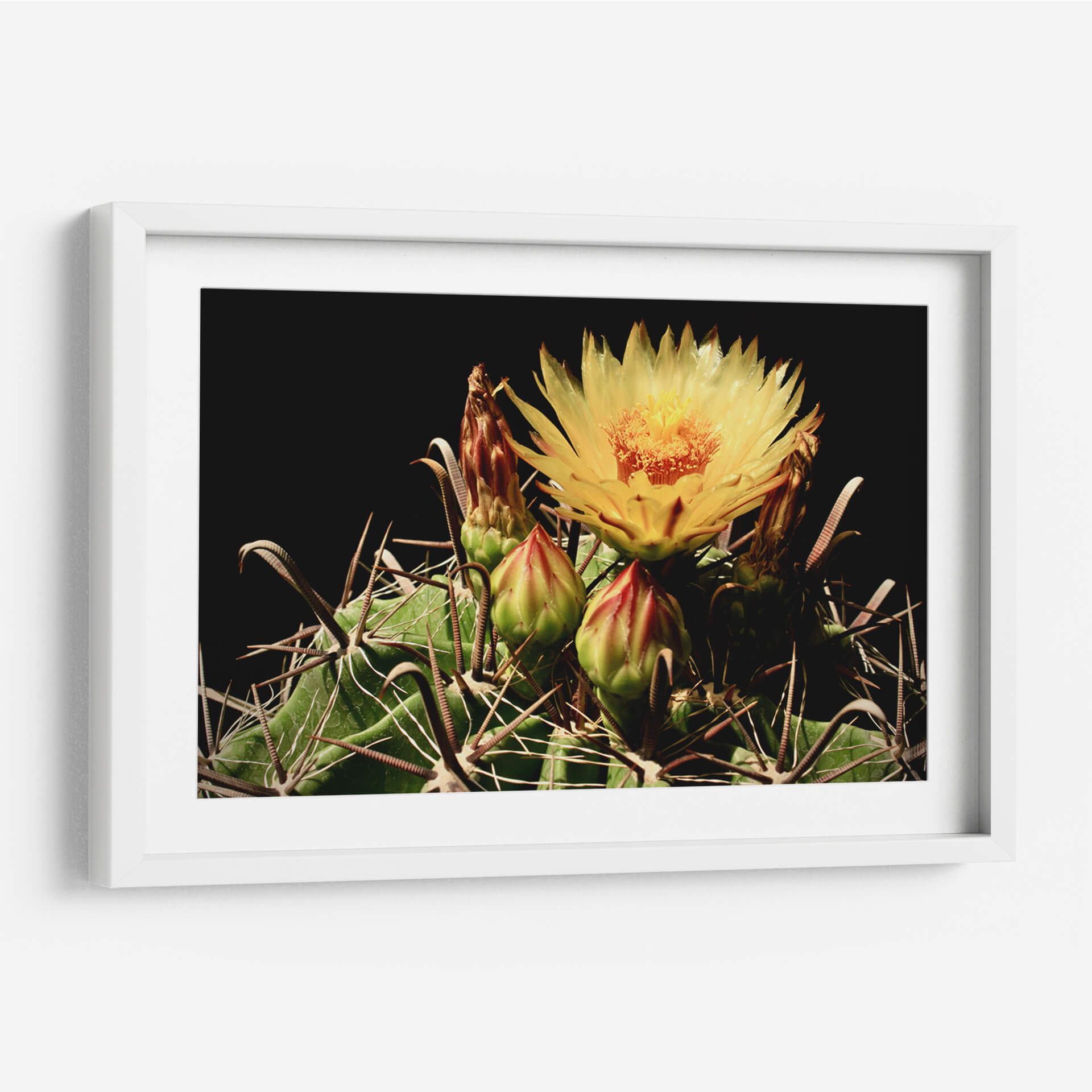 Transforma tu espacio con la obra 'Belleza en la Adversidad', una cautivadora representación macro de un cactus en flor. Esta pieza captura la delicadeza de un pétalo amarillo vibrante abriéndose paso entre espinas amenazantes, simbolizando la resiliencia y la esperanza. Los tonos verdes profundos del cactus contrastan con el amarillo radiante de la flor y los sutiles toques rojizos de los capullos, creando una paleta de colores rica y contrastante. La composición, enfocada en los detalles intrincados de la naturaleza, evoca una sensación de asombro y admiración por la fuerza vital. Ideal para añadir un toque de sofisticación natural a tu sala de estar, dormitorio u oficina, este cuadro decorativo es un recordatorio visual de que la belleza puede florecer incluso en las circunstancias más desafiantes. Su estilo fotográfico y la profundidad de campo invitan a la contemplación, convirtiéndose en un punto focal inspirador y elegante en cualquier ambiente. Una elección perfecta para quienes buscan arte que combine la fuerza de la naturaleza con una estética refinada y un mensaje de perseverancia.
