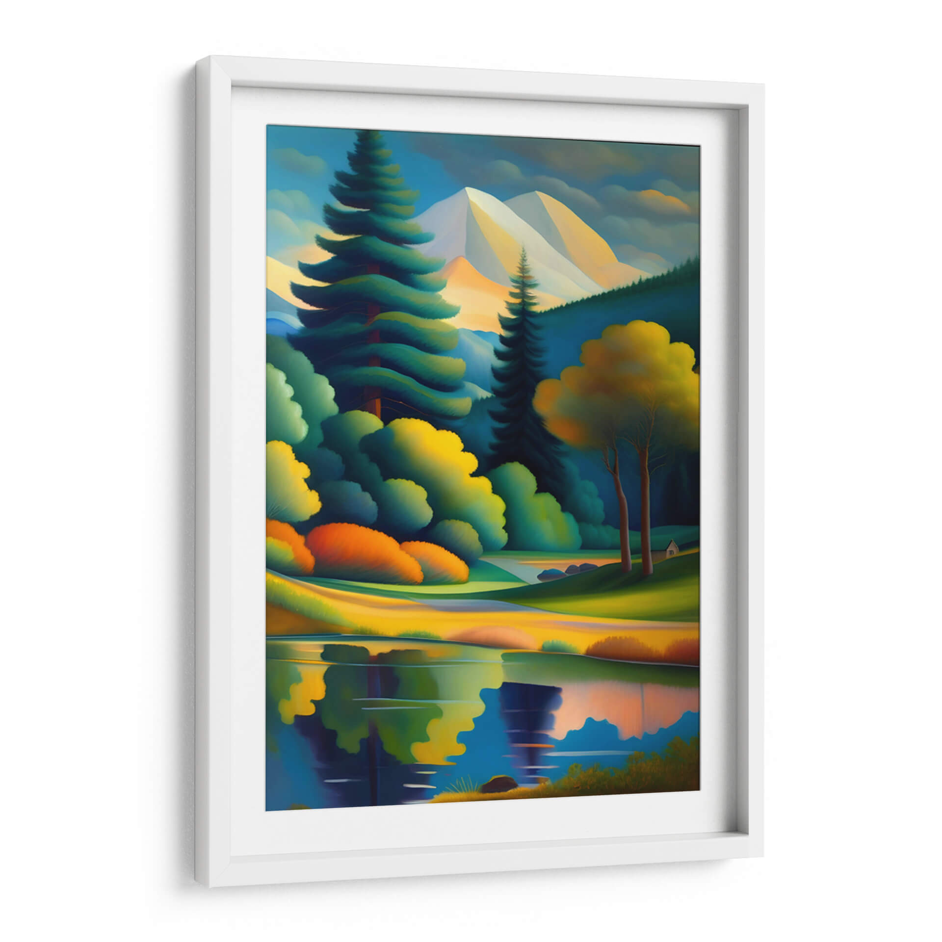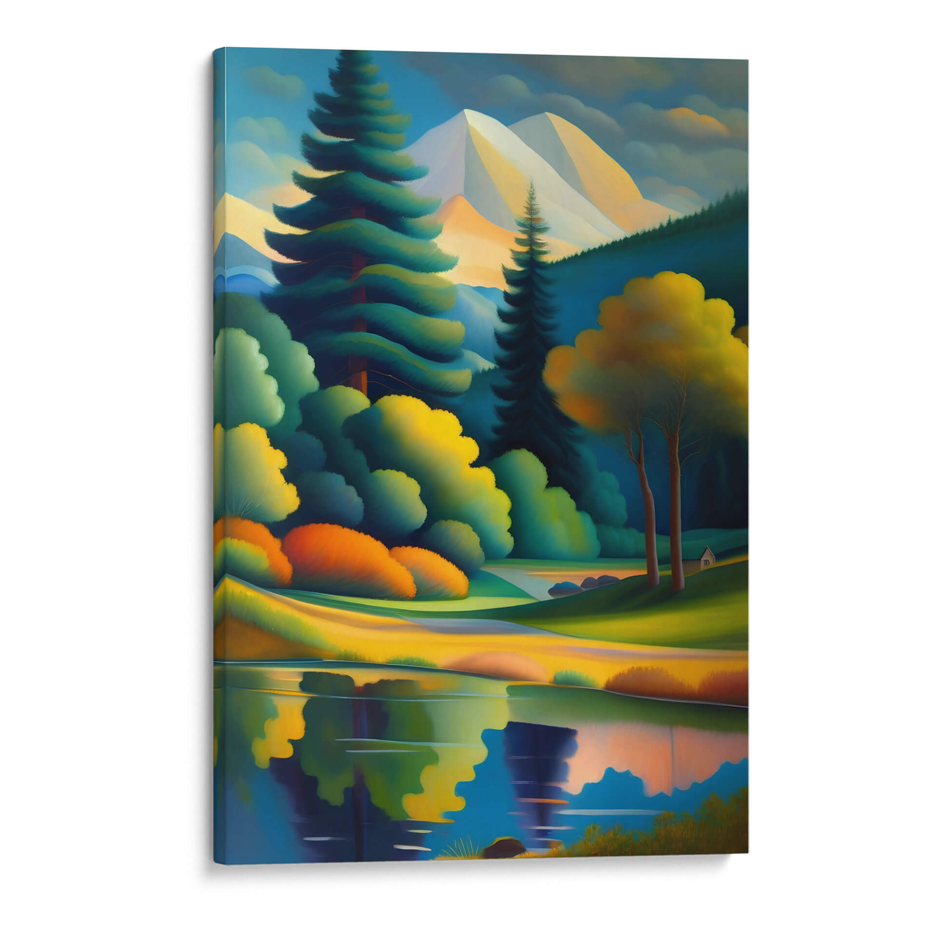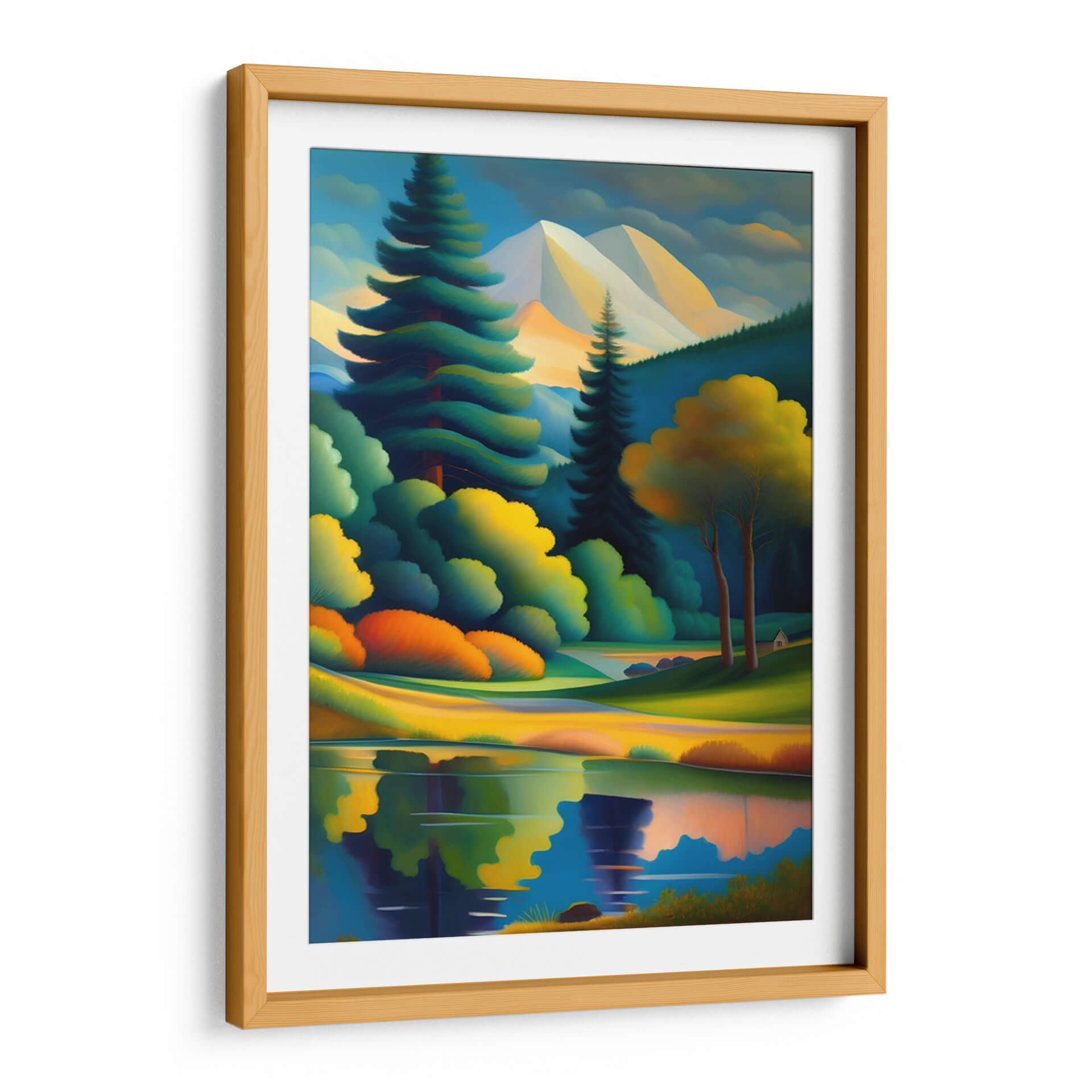 Emb rquese en un viaje visual con nuestro cuadro decorativo 'Bosque Postimpresionista', una obra que captura la esencia de un paisaje natural bañado por una luz etérea. La paleta de colores vibrantes, con predominio de verdes profundos, amarillos dorados y azules celestiales, crea una atmósfera de serenidad y asombro. Las formas estilizadas de los árboles, las montañas majestuosas y el reflejo en el agua componen una escena casi onírica, evocando la calma y la belleza de la naturaleza en su máxima expresión. Este cuadro decorativo es ideal para infundir paz y un toque de sofisticación artística en salones, dormitorios o estudios. Su estilo postimpresionista, con pinceladas audaces y una composición dinámica, lo convierte en una pieza central que atrae la mirada y estimula la imaginación, perfecta para quienes buscan añadir profundidad y carácter a su hogar u oficina. Añada un toque de arte contemporáneo y naturaleza a su espacio con esta cautivadora representación.