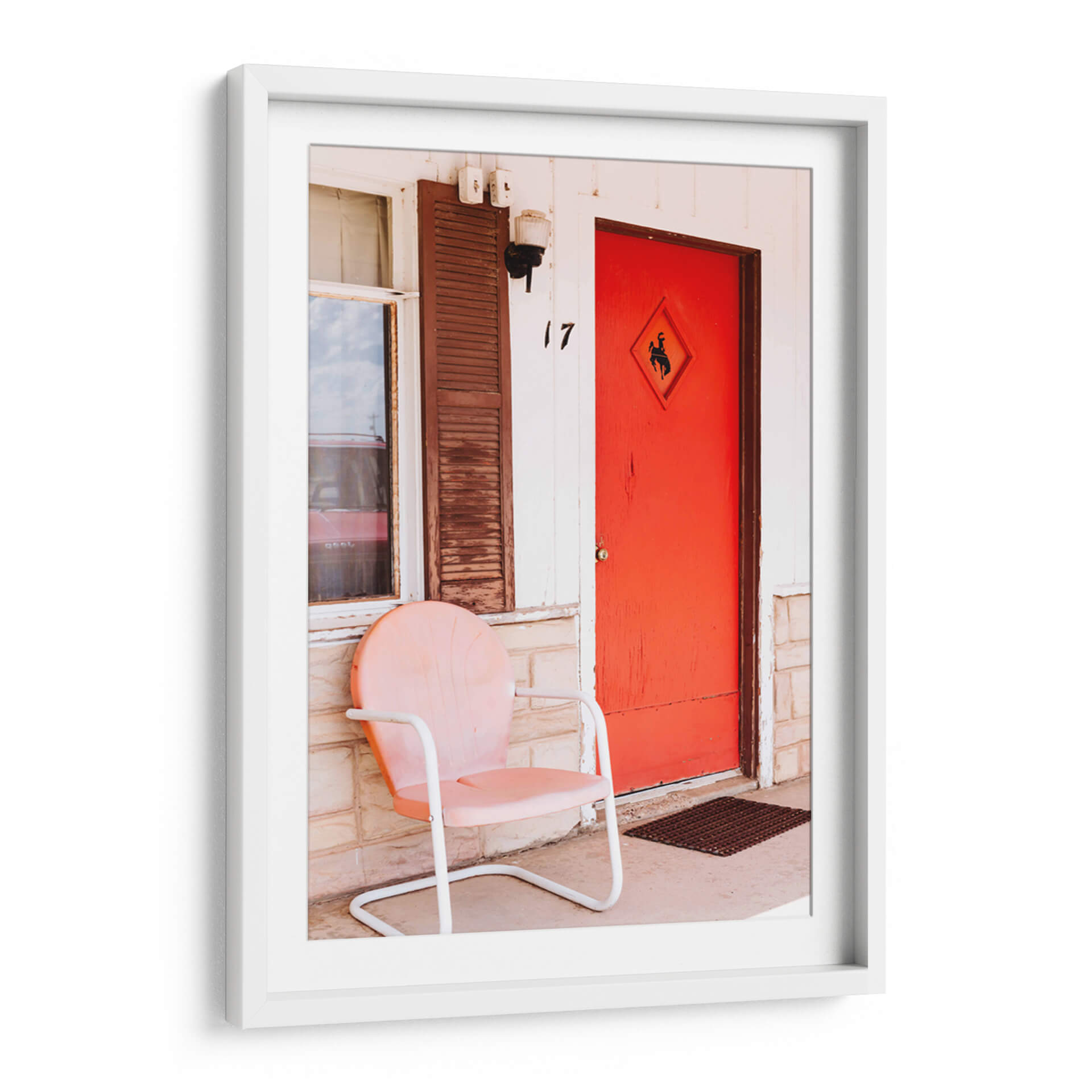 Sumérgete en la nostalgia y el encanto del 'Buckaroo Motel III', una cautivadora obra de Bethany Young que captura la esencia de un motel de carretera con un toque de misterio y estilo retro. La vibrante puerta naranja, un punto focal audaz, contrasta maravillosamente con la paleta de colores más apagados de la fachada, las persianas de madera desgastada y la silla retro en tonos pastel. El reflejo en la ventana añade una capa de profundidad, sugiriendo historias y experiencias pasadas. Esta pieza fotográfica, con su composición nítida y su atmósfera evocadora, es perfecta para aquellos que buscan añadir carácter y una narrativa visual a sus espacios. Ideal para salas de estar, estudios o incluso un rincón de lectura, este cuadro decorativo invita a la contemplación y a la evocación de tiempos pasados. Aporta un toque de singularidad y personalidad a tu decoración, transportándote a un viaje imaginario a través de la lente del arte contemporáneo.