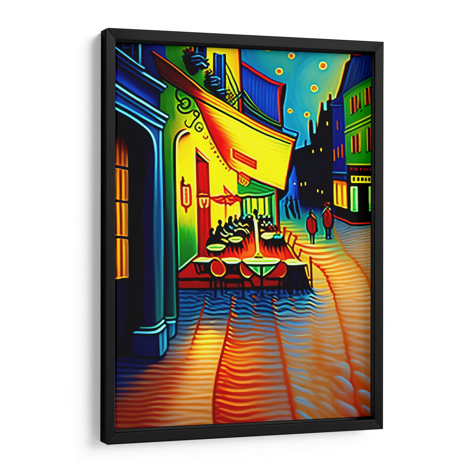 Sumérgete en la atmósfera vibrante de "Café Parisino", una obra de arte digital que captura la esencia de una noche europea con una paleta de colores audaz y expresiva. Este cuadro decorativo evoca la energía de una calle adoquinada iluminada por luces de neón y el cálido resplandor de un café acogedor. Las figuras estilizadas y las formas arquitectónicas audaces crean una composición dinámica que invita a la contemplación. Los tonos profundos de azul y verde se entrelazan con vibrantes amarillos, naranjas y rojos, generando un contraste visual impactante que sin duda se convertirá en el punto focal de cualquier habitación. Es una pieza ideal para añadir un toque de sofisticación y vitalidad a salones modernos, comedores o incluso a un estudio creativo. "Café Parisino" no es solo una decoración de pared, es una invitación a soñar con escapadas urbanas y momentos de tertulia, transformando tu espacio en un lienzo de experiencias sensoriales y estilo contemporáneo. Permite que este cuadro decorativo transporte tus sentidos y enriquezca tu hogar con su arte único y cautivador.