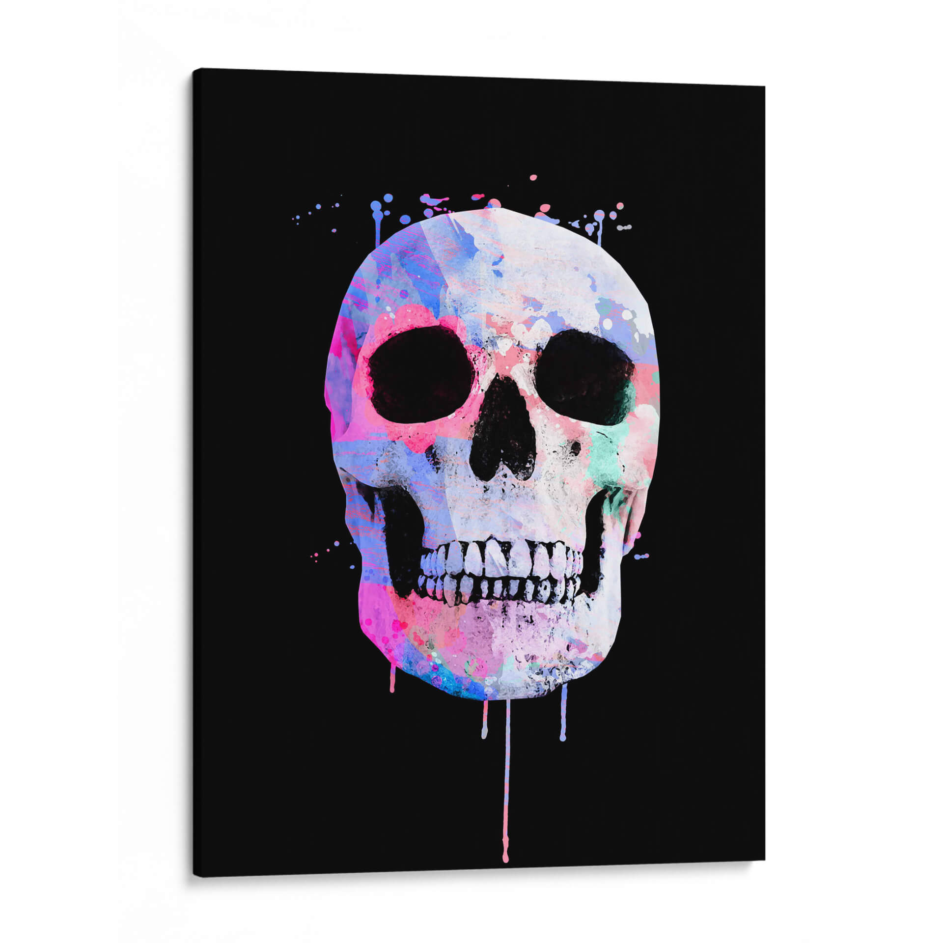 Este impactante cuadro decorativo de una calavera, titulado "Calavera Linda" por Lofty&Me, fusiona lo macabro con lo vibrante de una manera única y contemporánea. La obra presenta una calavera central con una paleta de colores sorprendentemente alegre, salpicada de tonos fucsia, azul eléctrico, turquesa y toques de blanco y gris. Las salpicaduras y goteos de pintura añaden una textura dinámica y moderna, contrastando con la forma tradicionalmente sombría de la calavera. El fondo negro profundo acentúa la intensidad de los colores y hace que la figura principal resalte con dramatismo. Esta pieza es ideal para quienes buscan un arte que desafíe las convenciones, aportando un toque de audacia y originalidad a cualquier espacio. Perfecta para salas de estar modernas, estudios de diseño o incluso para añadir un punto de intriga a un dormitorio, "Calavera Linda" invita a la reflexión sobre la dualidad de la vida y la muerte, expresada a través de una estética audaz y llena de energía. Un cuadro decorativo que captura la atención y genera conversación.