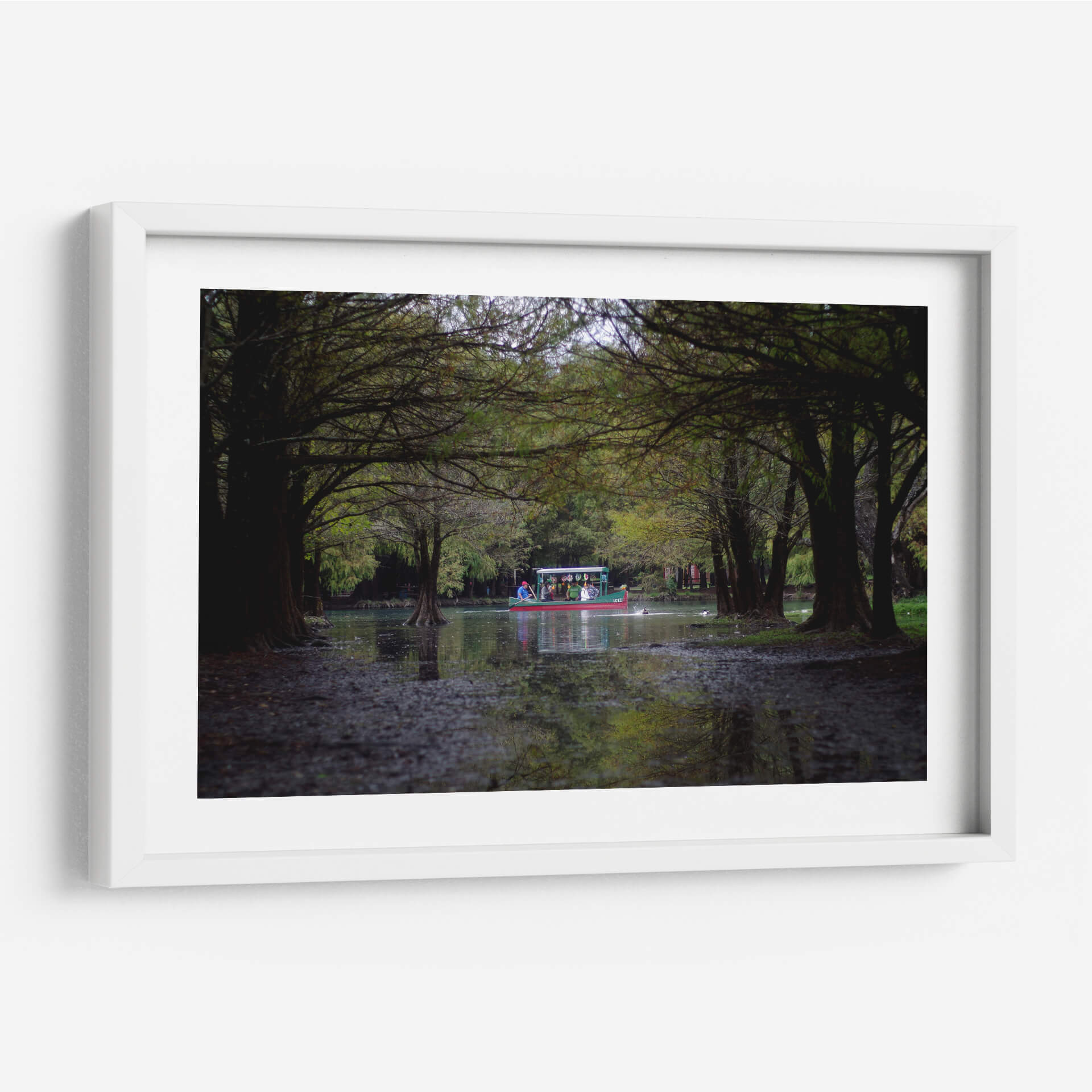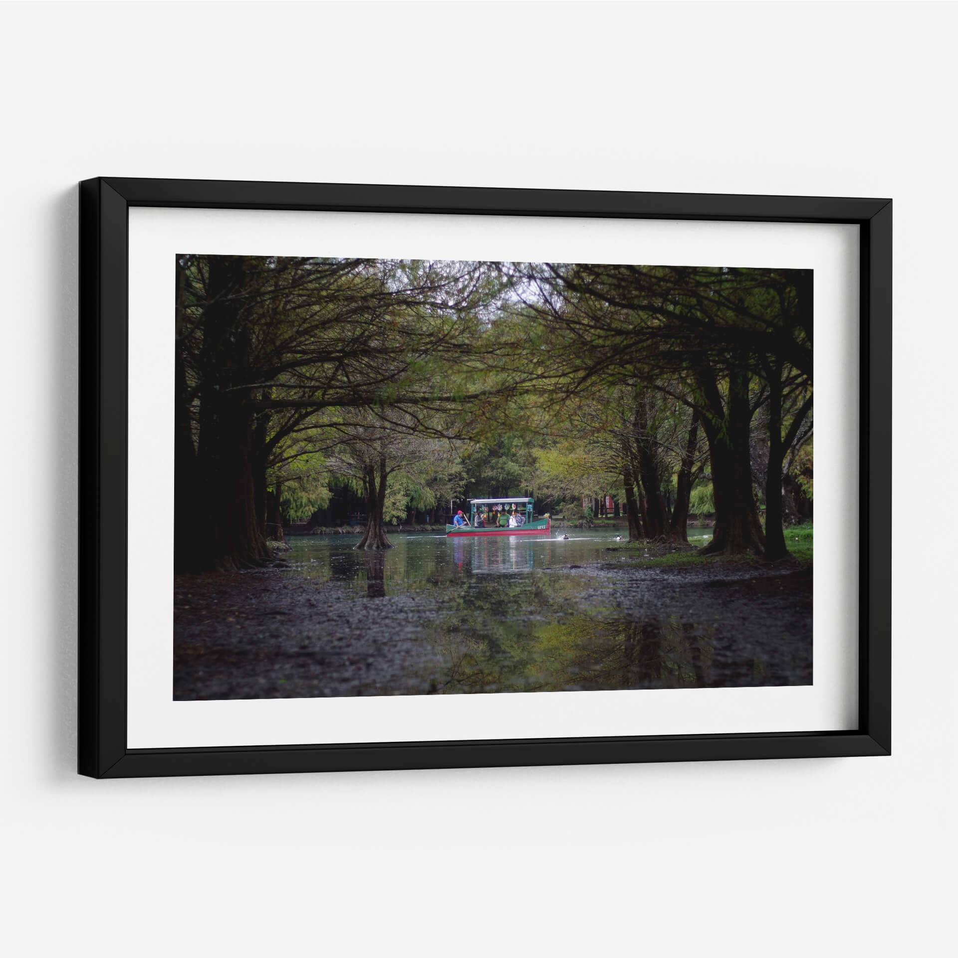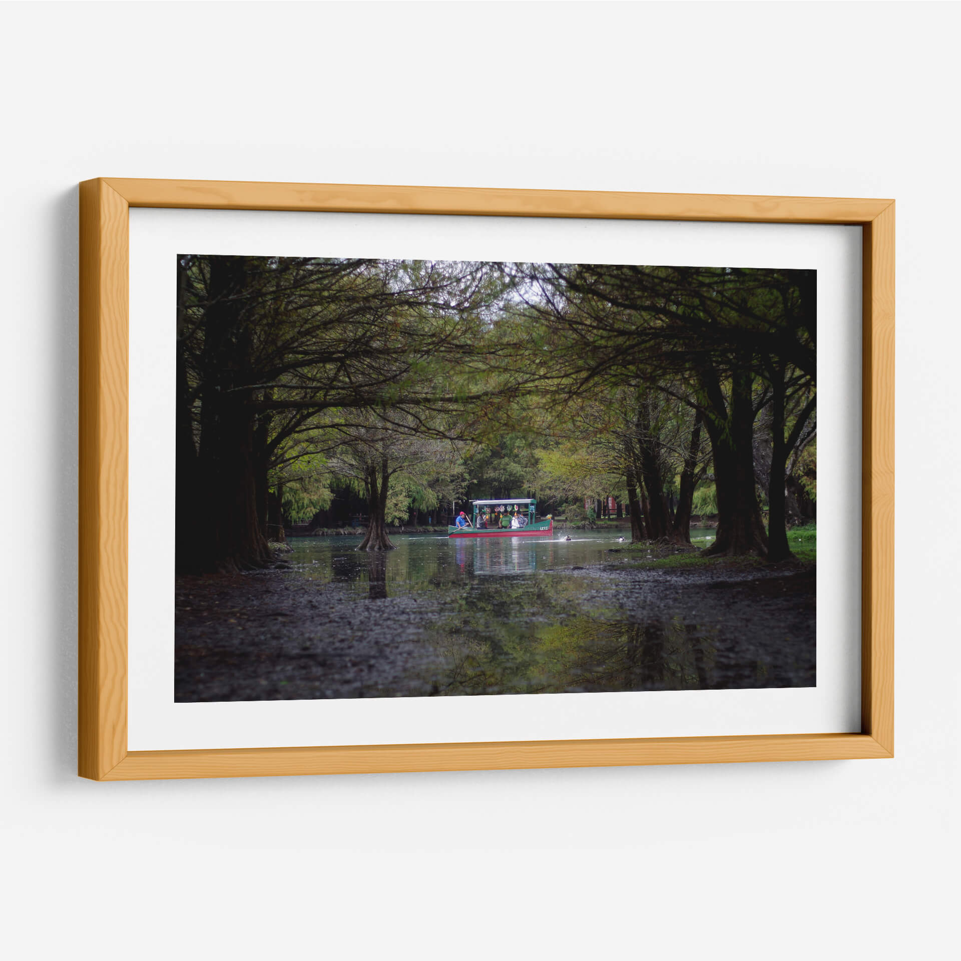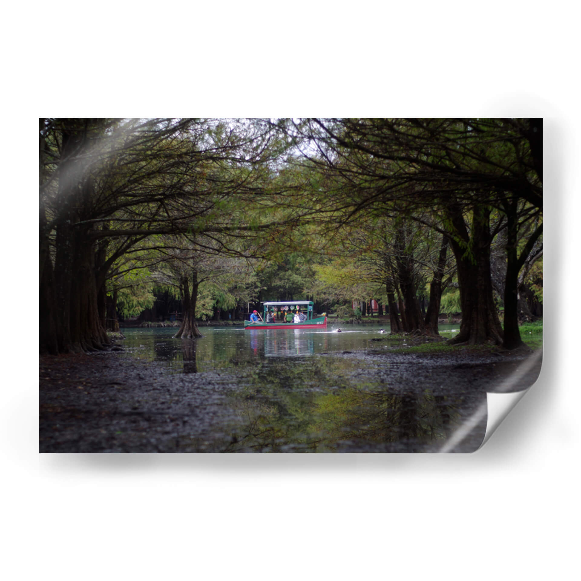 Sumérgete en la serenidad y el encanto del paisaje mexicano con este cautivador cuadro decorativo titulado 'camecuaro' del artista moraviorato. La obra nos transporta a la orilla de un lago rodeado de frondosos árboles, cuyas ramas se entrelazan creando un túnel natural que invita a la contemplación. En el centro, una colorida barca navega apaciblemente, llevando consigo a un grupo de personas que disfrutan de la tranquilidad del entorno. Los tonos verdes profundos de la vegetación se combinan con los reflejos del agua y la luz tenue, creando una atmósfera de calma y armonía. Los detalles sutiles, como las raíces expuestas de los árboles y las pequeñas aves acuáticas, añaden realismo y vida a la escena. Este cuadro es una invitación a la introspección y a la conexión con la naturaleza, ideal para quienes buscan añadir un toque de paz y belleza escénica a su hogar u oficina. Su estilo fotográfico y su composición equilibrada lo convierten en una pieza versátil, perfecta para salones, dormitorios o estudios, aportando una sensación de escapismo y serenidad a cualquier espacio. Descubre la magia de 'camecuaro' y transforma tu ambiente con esta obra de arte única.
