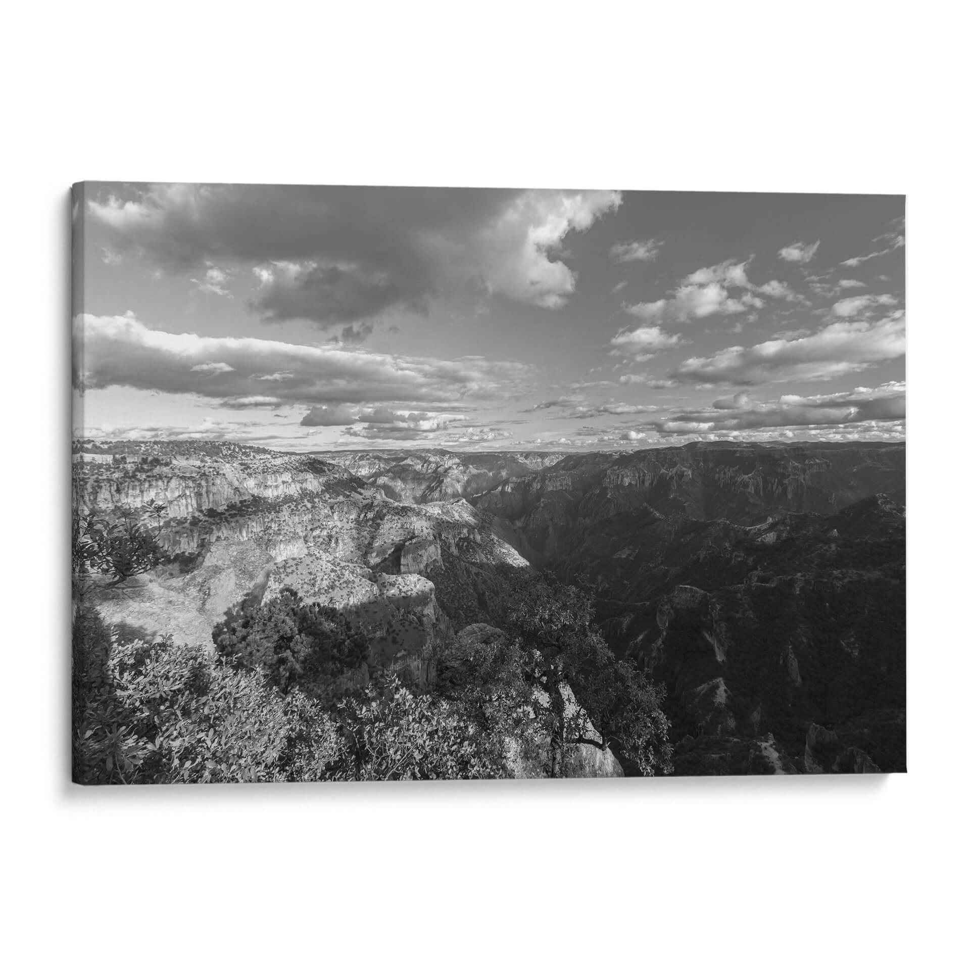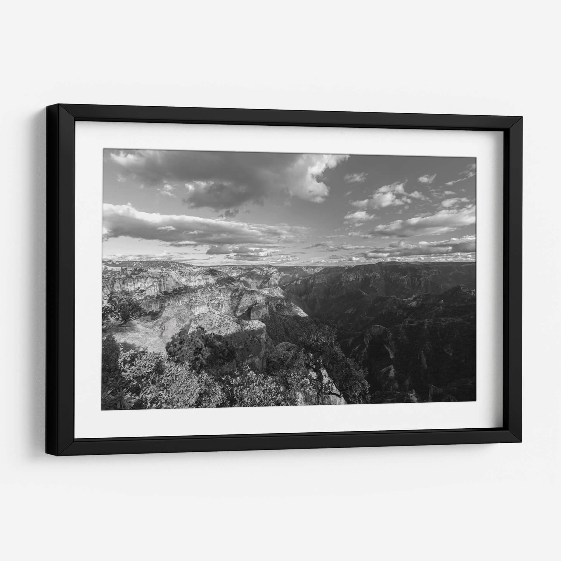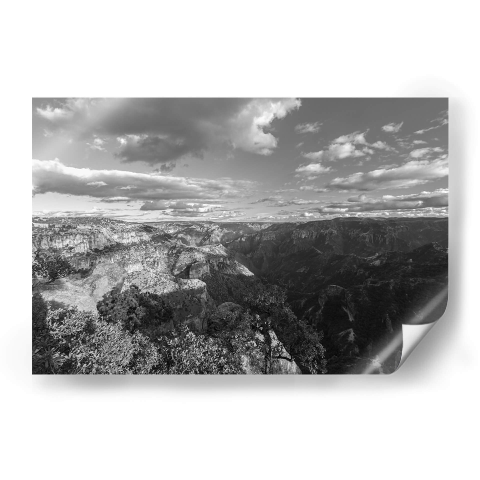 Sumérgete en la majestuosidad y el misterio de "Cañones y Sombras, Blanco y Negro", una cautivadora obra de arte de Bernardo Miranda. Esta pieza captura la inmensidad de un paisaje montañoso en una paleta monocromática que resalta las texturas y los contrastes dramáticos entre la luz y la oscuridad. Las formaciones rocosas escarpadas, esculpidas por el tiempo, se despliegan ante el espectador, creando una sensación de profundidad y escala abrumadora. Las nubes dinámicas en el cielo añaden un elemento de movimiento y fugacidad, contrastando con la solidez de la tierra. El estilo fotográfico, con su enfoque en la composición y el juego de luces, evoca una atmósfera de serenidad contemplativa y grandeza natural. Este cuadro decorativo es perfecto para añadir un toque de sofisticación y poder a cualquier espacio, ya sea una sala de estar moderna, un estudio o una oficina. Su diseño atemporal en blanco y negro lo convierte en un complemento versátil que inspira reflexión y admiración, transformando cualquier pared en una ventana a la majestuosidad de la naturaleza. Una elección ideal para amantes de la fotografía paisajística y el arte con carácter.