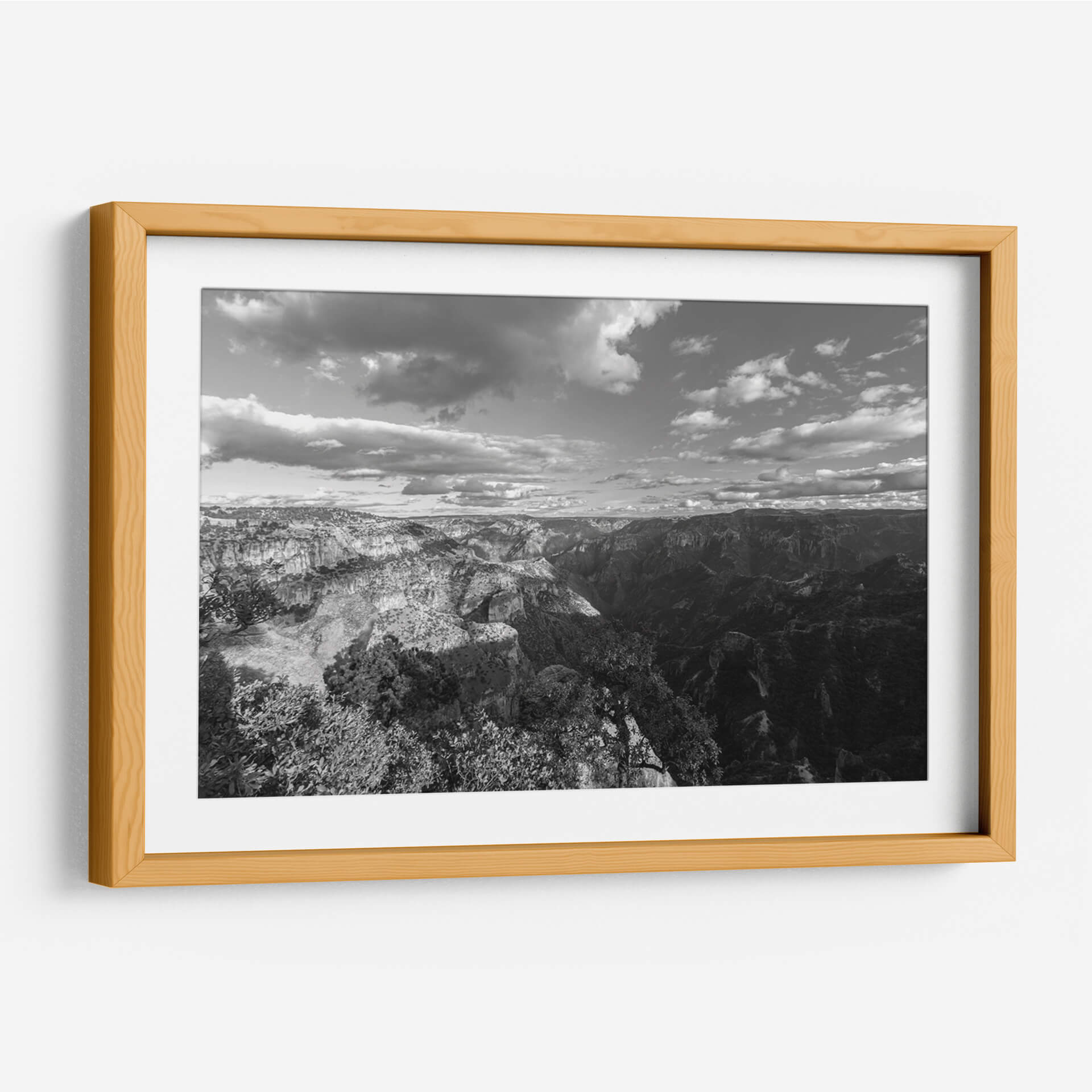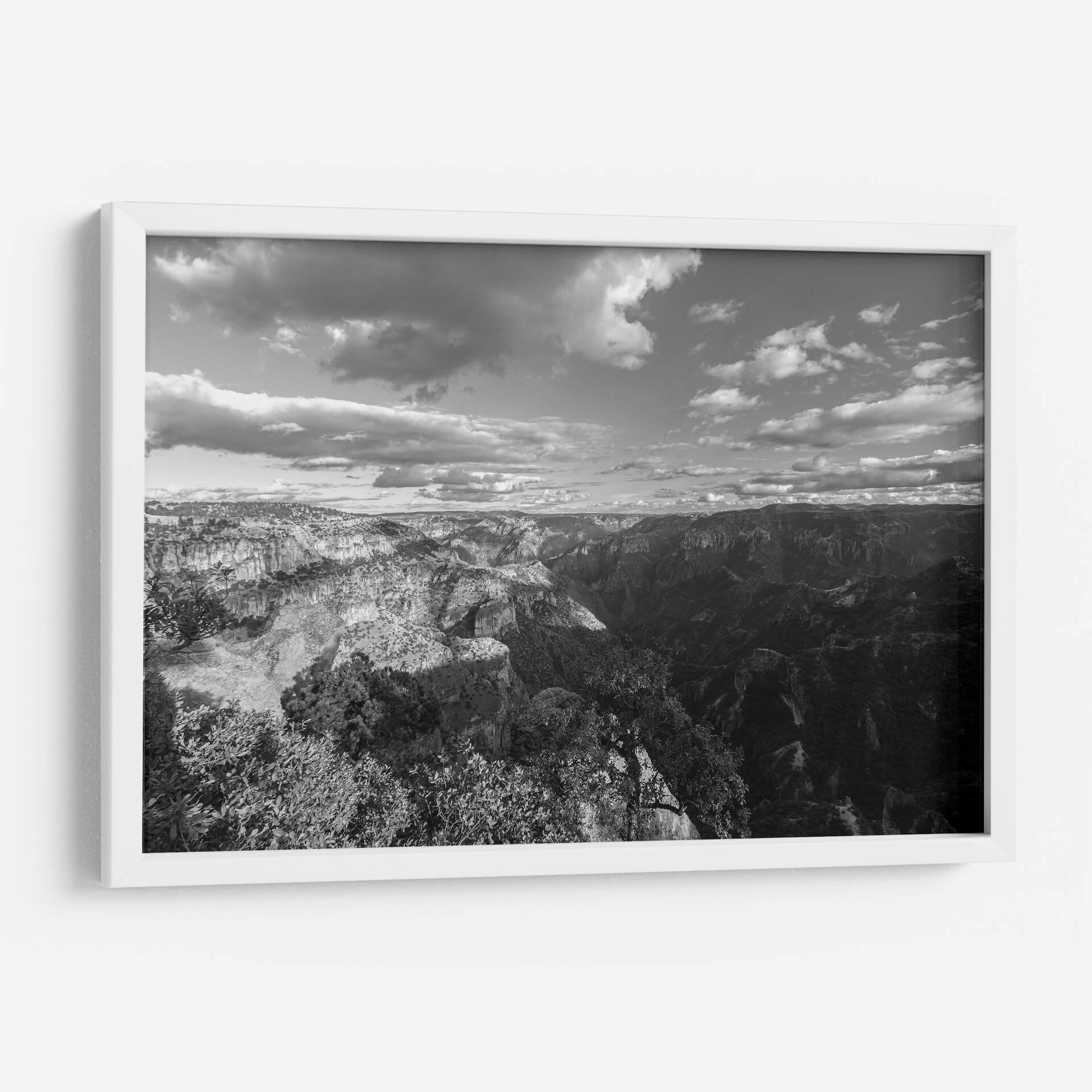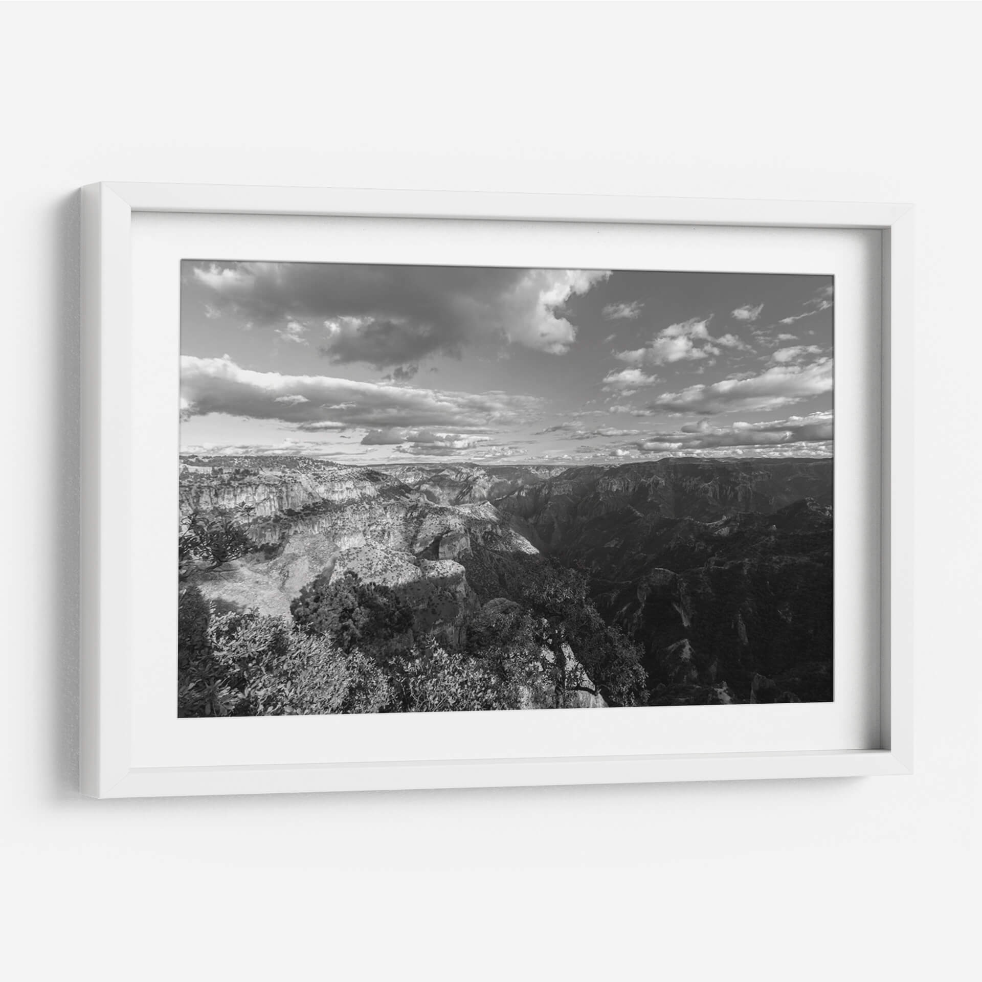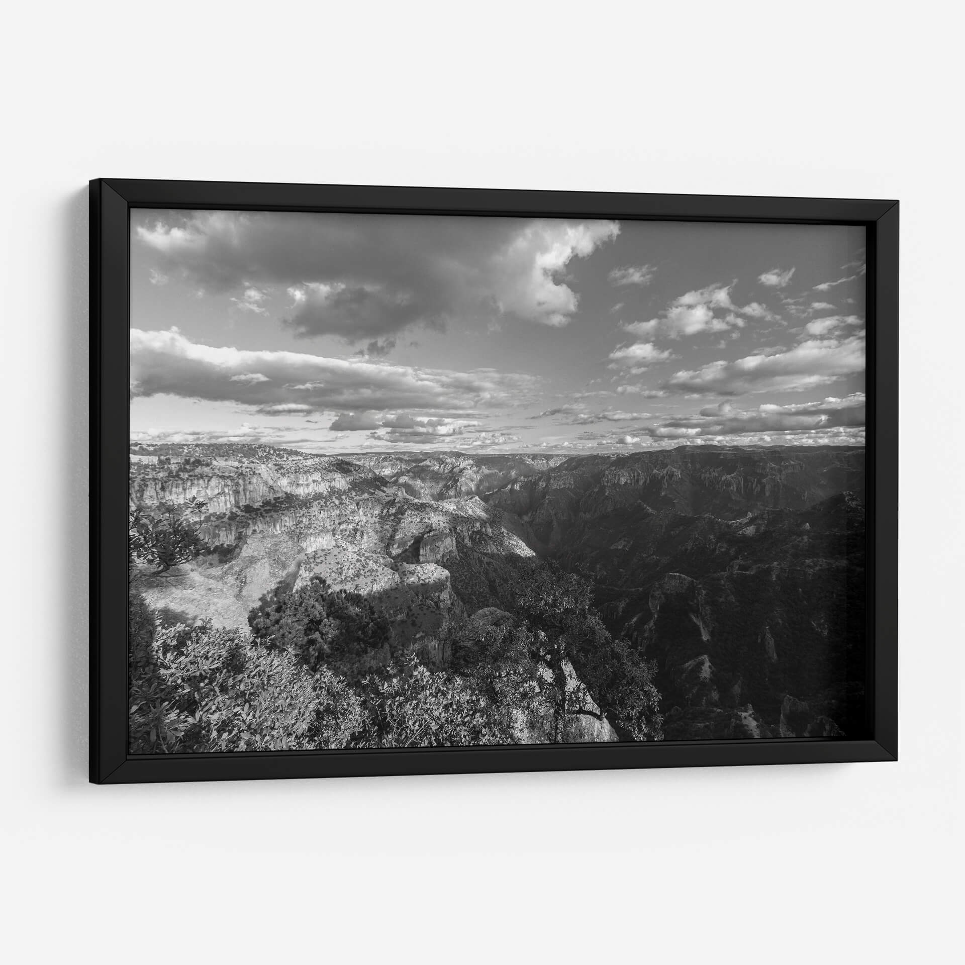 Sumérgete en la majestuosidad y el misterio de "Cañones y Sombras, Blanco y Negro", una cautivadora obra de arte de Bernardo Miranda. Esta pieza captura la inmensidad de un paisaje montañoso en una paleta monocromática que resalta las texturas y los contrastes dramáticos entre la luz y la oscuridad. Las formaciones rocosas escarpadas, esculpidas por el tiempo, se despliegan ante el espectador, creando una sensación de profundidad y escala abrumadora. Las nubes dinámicas en el cielo añaden un elemento de movimiento y fugacidad, contrastando con la solidez de la tierra. El estilo fotográfico, con su enfoque en la composición y el juego de luces, evoca una atmósfera de serenidad contemplativa y grandeza natural. Este cuadro decorativo es perfecto para añadir un toque de sofisticación y poder a cualquier espacio, ya sea una sala de estar moderna, un estudio o una oficina. Su diseño atemporal en blanco y negro lo convierte en un complemento versátil que inspira reflexión y admiración, transformando cualquier pared en una ventana a la majestuosidad de la naturaleza. Una elección ideal para amantes de la fotografía paisajística y el arte con carácter.