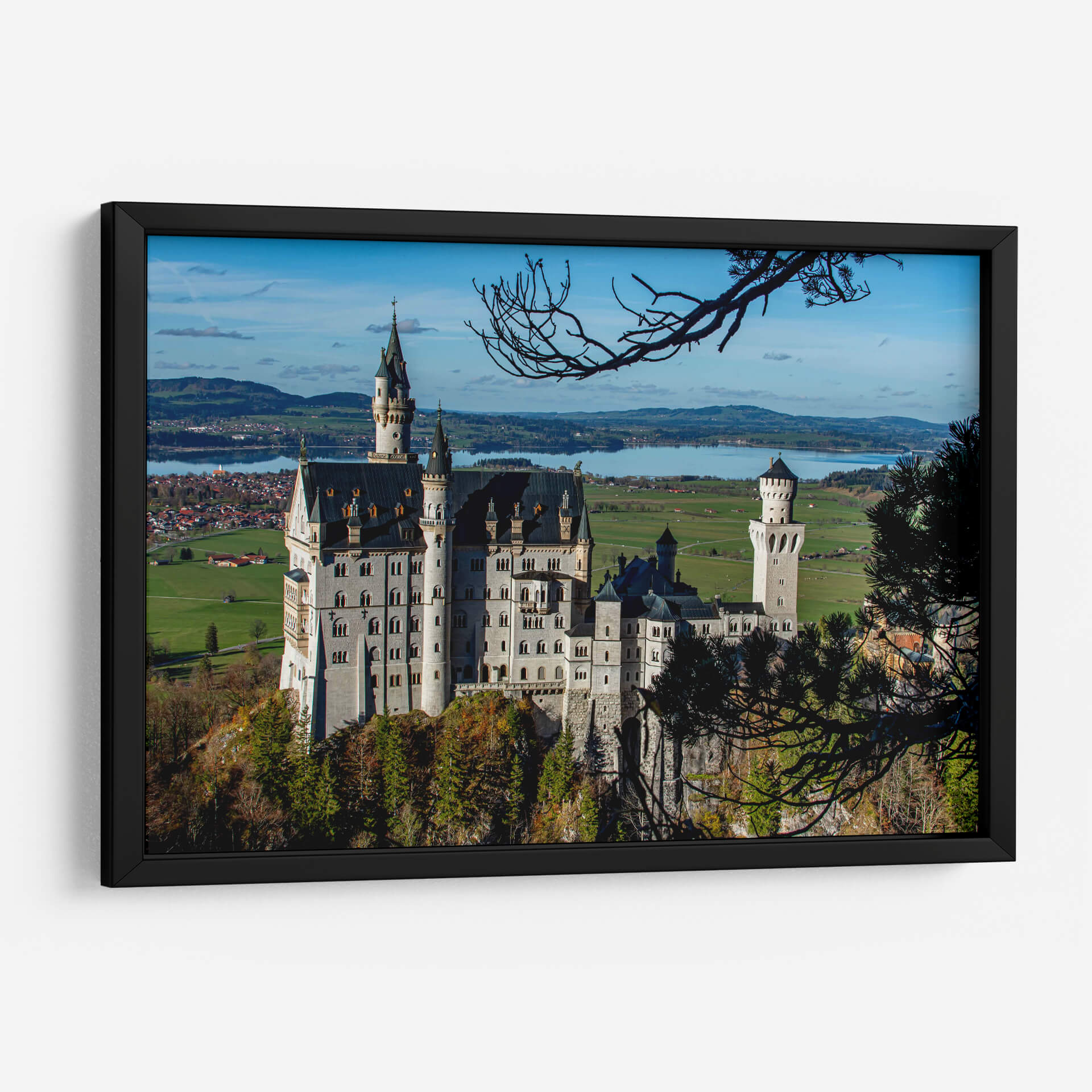 Transporta tu imaginación a un reino de cuento de hadas con "Castillo Neuschwanstein 1", una obra de arte magistral del artista Gustavo Cohen. Esta cautivadora pieza captura la majestuosidad de uno de los castillos más icónicos del mundo, Neuschwanstein, enclavado en un pintoresco paisaje bávaro. La obra destaca por su detallada representación arquitectónica, con imponentes torres, intrincadas fachadas y una presencia imponente que evoca una sensación de historia y romanticismo. La paleta de colores, dominada por los tonos grises del castillo contrastando con el verde vibrante de las colinas y el azul profundo del cielo y el lago, crea una atmósfera serena pero a la vez poderosa. La composición, con la silueta de ramas de árbol en primer plano, añade profundidad y un toque de misterio natural, enmarcando la grandiosidad del castillo. "Castillo Neuschwanstein 1" es ideal para quienes buscan infundir sus espacios con una dosis de elegancia atemporal, inspiración viajera o un toque de fantasía arquitectónica. Este cuadro decorativo es perfecto para salas de estar, estudios u oficinas donde se desee una pieza que inspire y maraville, convirtiéndose en un punto focal que evoca sueños de aventuras y épocas pasadas. Deja que la belleza de este castillo de ensueño transforme tu hogar en un lugar de ensueño.
