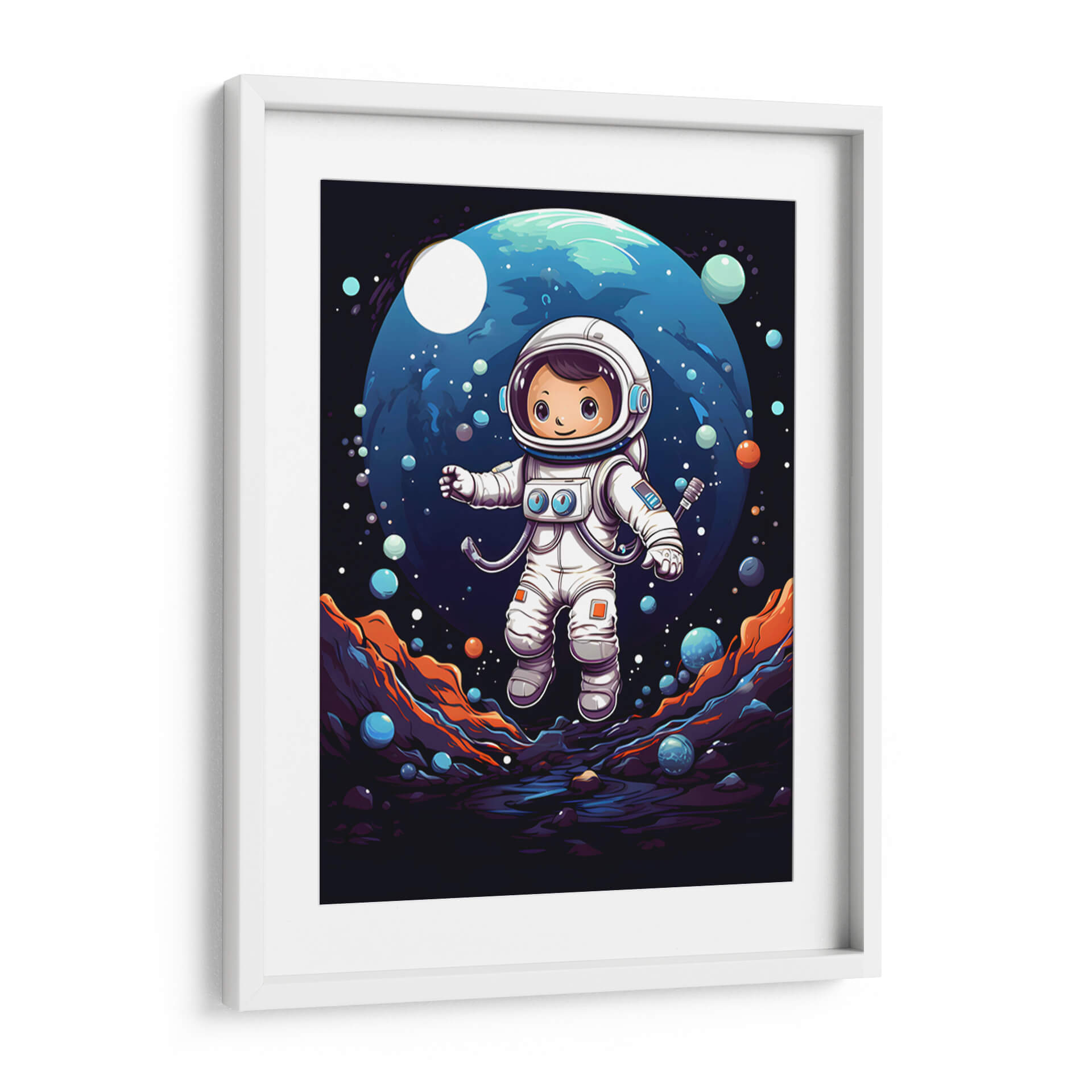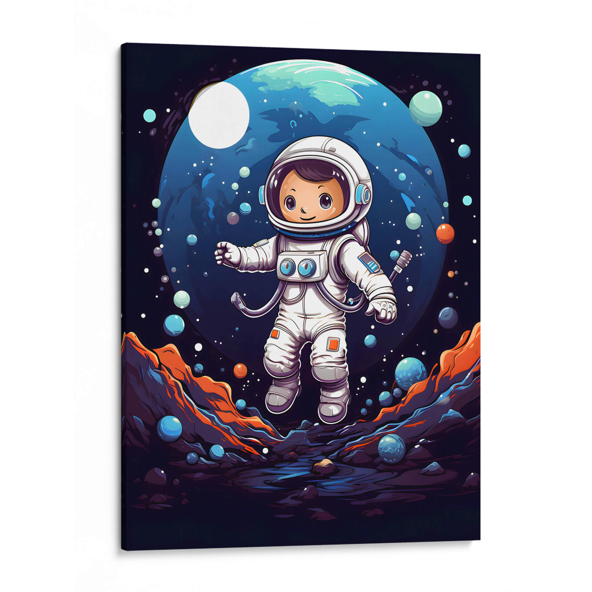 Embárcate en una aventura cósmica con este cautivador cuadro decorativo que presenta a un adorable astronauta flotando en el espacio. La obra, titulada 'Cat Nurs 110' del artista DEA Digital Esoteric Art, te transporta a un universo vibrante y misterioso. Predominan los tonos profundos del espacio, contrastando con la luz brillante de un planeta lejano y la luna. El astronauta, con su traje blanco impecable y una expresión de curiosidad en su rostro, se encuentra rodeado de esferas flotantes en diversas tonalidades de azul, verde y naranja, y un terreno rocoso y anaranjado que sugiere un paisaje extraterrestre. El estilo artístico, con sus contornos definidos y colores saturados, evoca una sensación de asombro y exploración, ideal para inspirar la imaginación. Este cuadro decorativo es perfecto para añadir un toque de fantasía y descubrimiento a la habitación de un niño, una sala de juegos o cualquier espacio que busque un acento divertido y moderno. Su temática de exploración espacial y su estética digital lo convierten en una pieza única para coleccionistas de arte contemporáneo y amantes de la ciencia ficción. Dale vida a tus paredes con esta invitación a explorar lo desconocido.