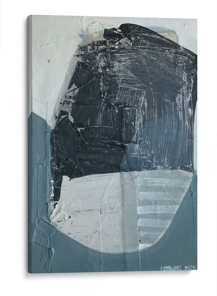 Sumérgete en la enigmática obra abstracta 'Célula' de LUNNAWABI, una pieza que invita a la contemplación y añade profundidad a cualquier espacio. Esta composición se caracteriza por sus texturas ricas y contrastantes, donde formas oscuras y audaces emergen sobre un fondo de tonos neutros y fríos. La paleta de colores, dominada por grises profundos, blancos cremosos y toques de azul verdoso, crea una atmósfera de misterio y serenidad, ideal para ambientes que buscan un equilibrio entre lo moderno y lo introspectivo. Las pinceladas visibles y la aplicación empastada de la pintura confieren a la obra un carácter dinámico y tangible, sugiriendo la energía contenida dentro de una estructura aparentemente simple. 'Célula' es más que una simple decoración; es una invitación a explorar las formas, las sombras y la interconexión de elementos. Perfecta para salas de estar contemporáneas, estudios o despachos que buscan un punto focal distintivo y sofisticado, esta obra de arte abstracto contemporáneo transformará tu pared en una ventana a la imaginación. Añade un toque de arte moderno y original a tu hogar.