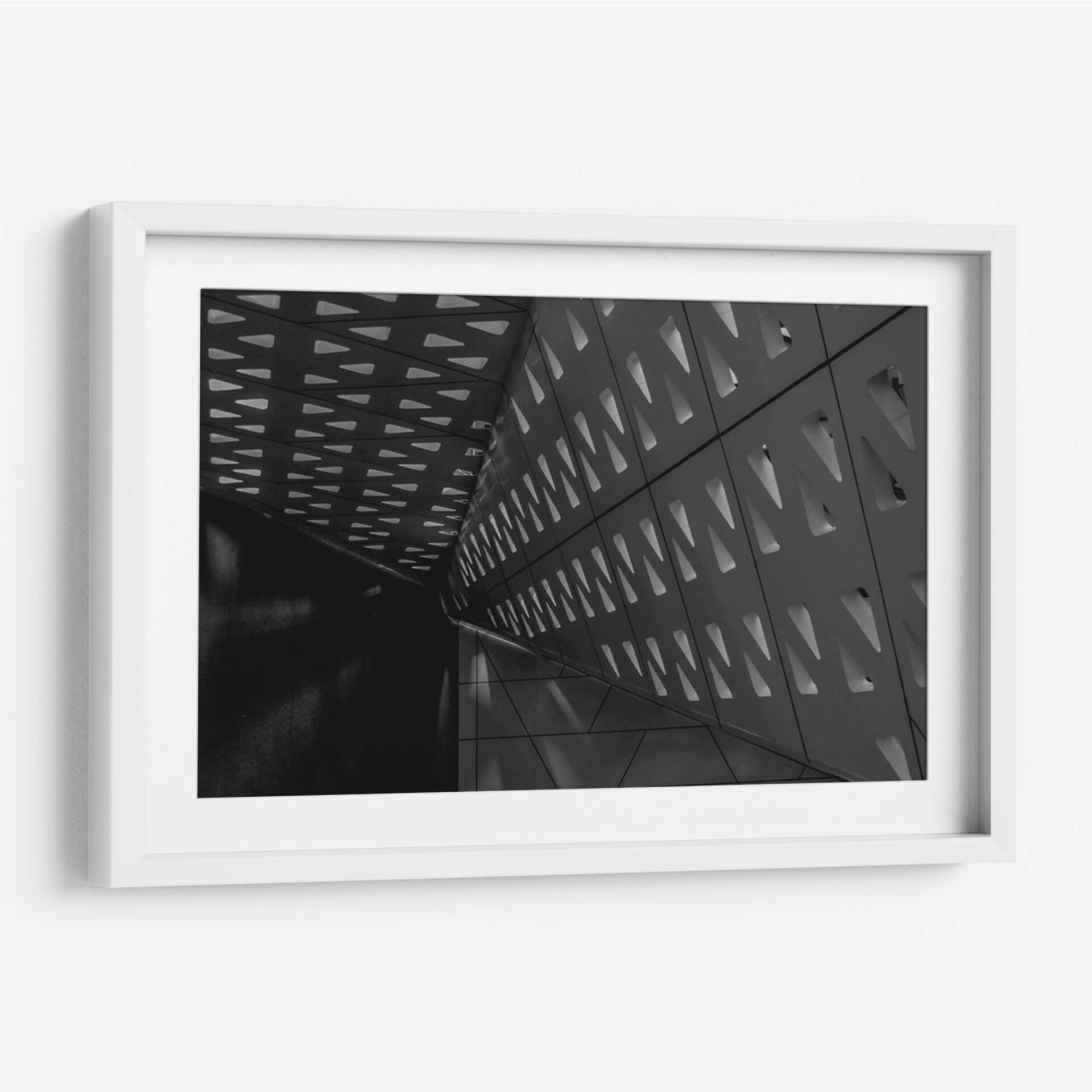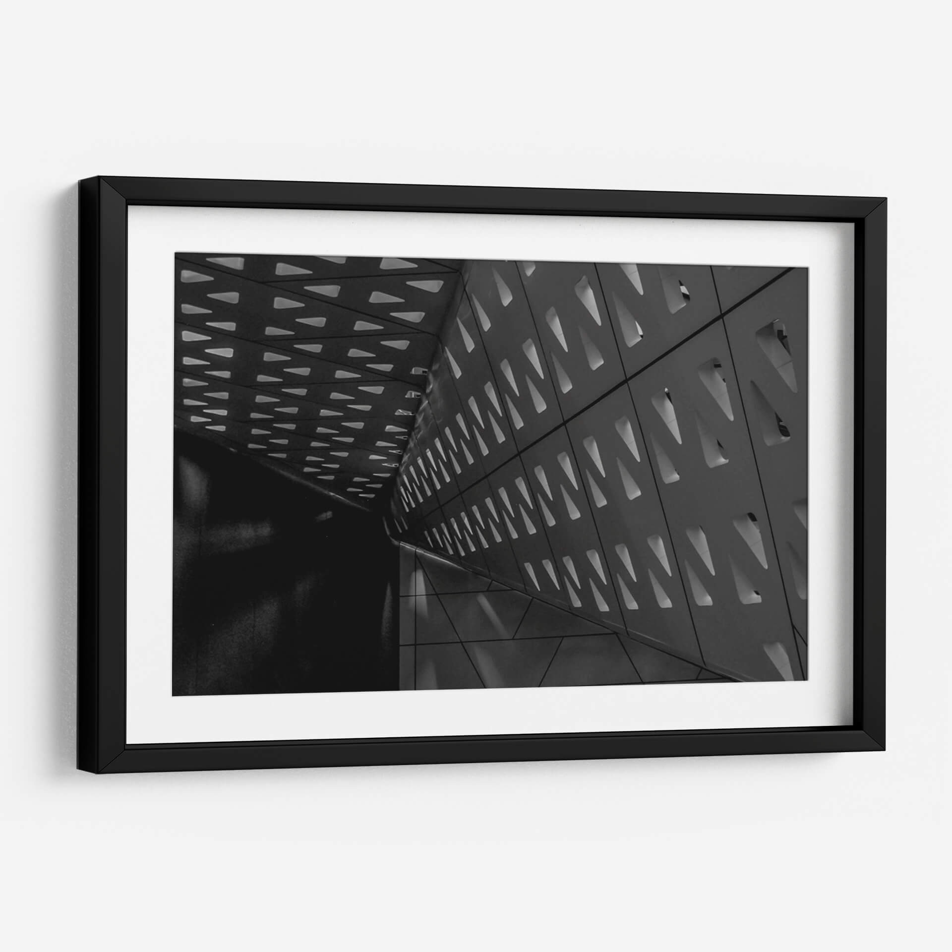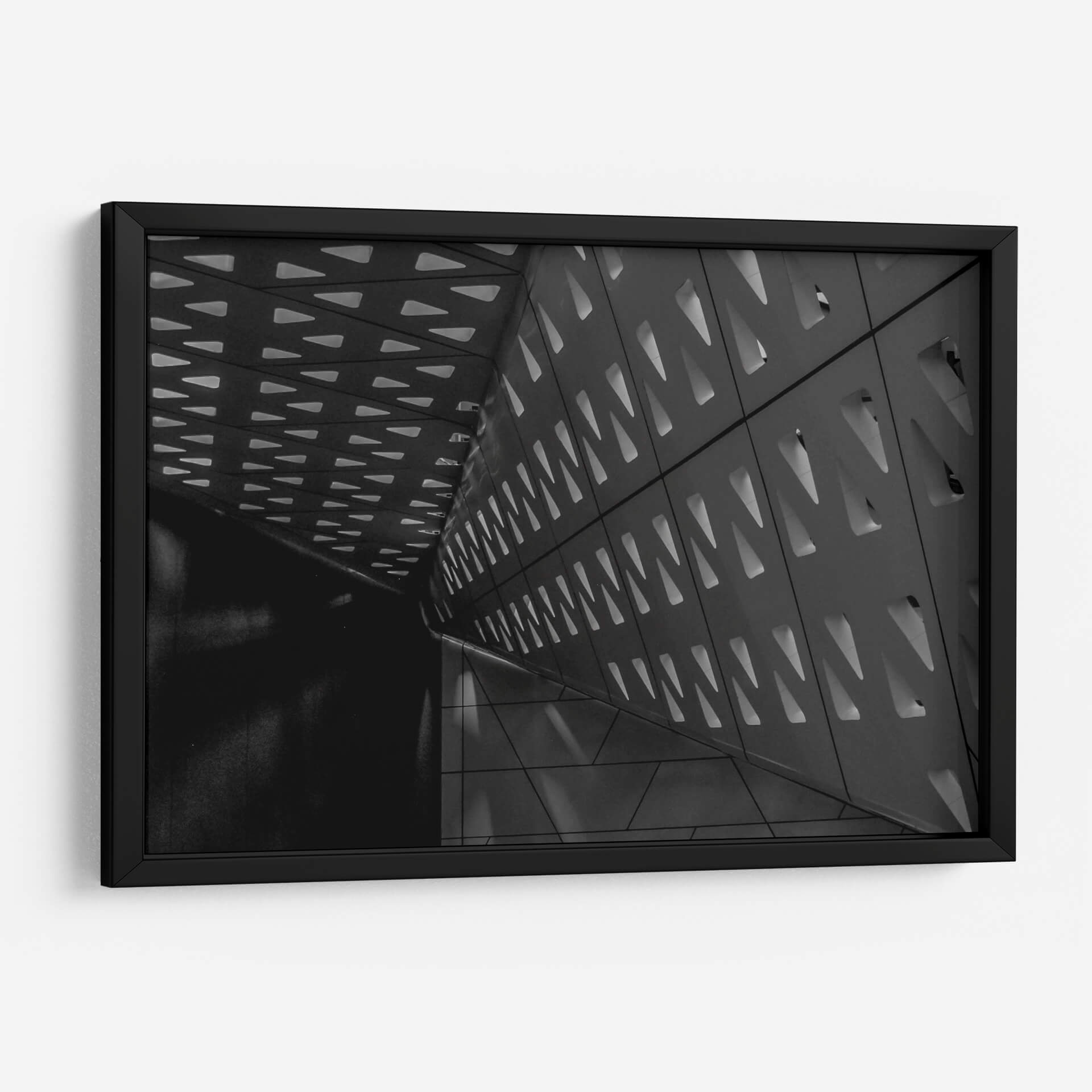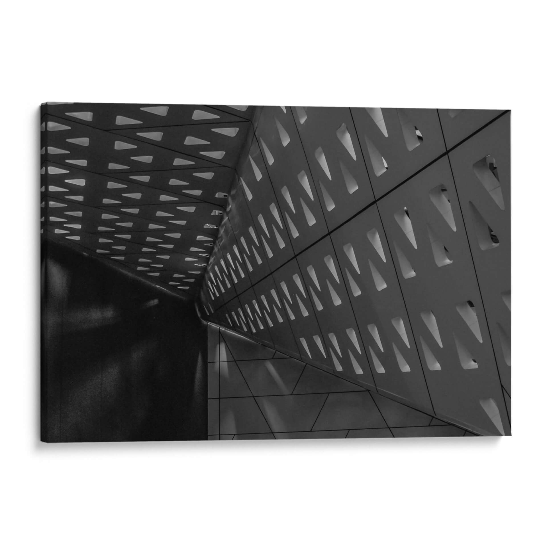 Sumérgete en la arquitectura moderna con "Cineteca Nacional", una obra de arte visualmente cautivadora de Gustavo Cohen. Este cuadro decorativo abstracto captura la esencia de las formas geométricas y la interacción de luces y sombras en un espacio arquitectónico, evocando una sensación de profundidad y dinamismo. La paleta de colores monocromática, dominada por grises y negros, crea una atmósfera sofisticada y contemporánea, perfecta para añadir un toque de elegancia urbana a cualquier ambiente. Las líneas limpias y los patrones repetitivos de los elementos perforados generan un juego visual fascinante que invita a la contemplación. Ideal para salones modernos, oficinas o espacios que buscan un diseño vanguardista, este cuadro abstracto se convierte en un punto focal que estimula la imaginación y la apreciación por el diseño arquitectónico. La composición, que dirige la mirada hacia un punto de fuga, añade una dimensión intrigante, haciendo de esta pieza una elección excepcional para quienes valoran el arte con una fuerte influencia estructural y estética.