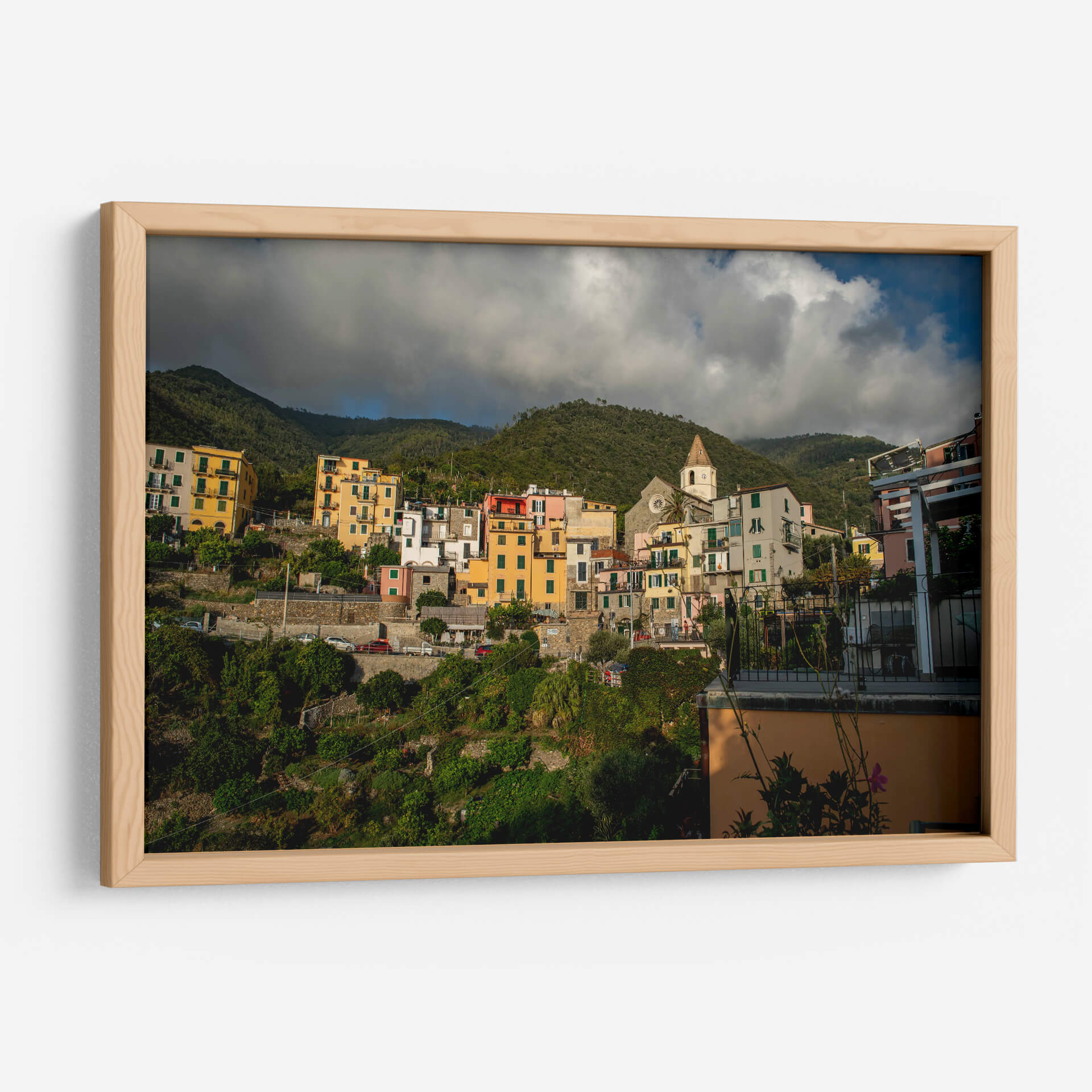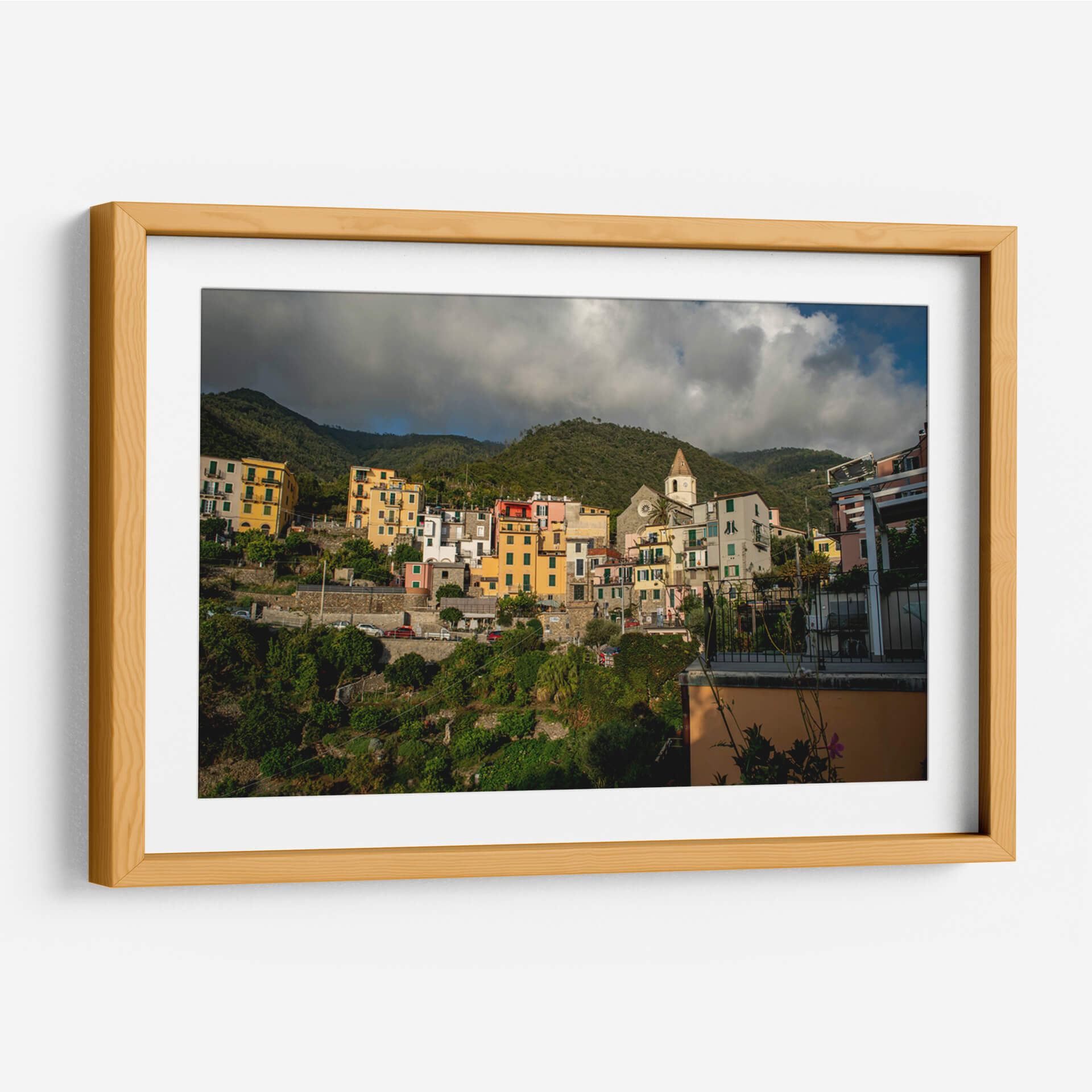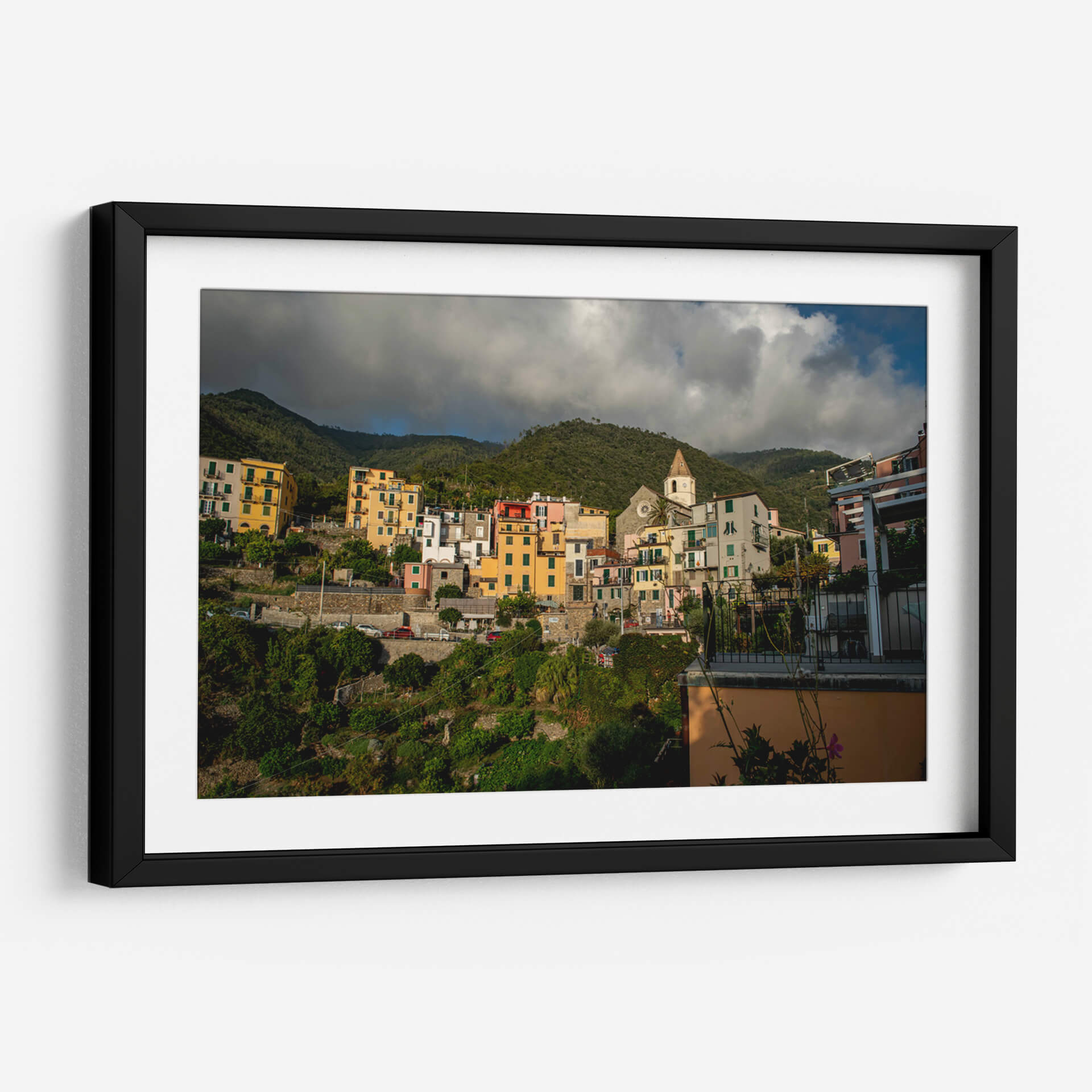 Captura la esencia vibrante de la costa italiana con este evocador cuadro decorativo "Cinque Terre Corniglia" de Gustavo Cohen. La obra transporta al espectador a un pintoresco pueblo aferrado a la ladera, donde casas de colores vivos se escalonan hacia un cielo dramático cubierto de nubes. La paleta de colores, dominada por amarillos intensos, naranjas cálidos y verdes exuberantes de la vegetación, crea una atmósfera llena de vida y energía, contrastando con las sombras y la luz que juegan sobre la arquitectura y las montañas circundantes. El estilo, con su detallada representación realista de la arquitectura y el paisaje, evoca una sensación de autenticidad y la belleza atemporal de los pueblos costeros mediterráneos. La composición, que presenta una vista panorámica del pueblo con la iglesia como punto focal, invita a la contemplación y al anhelo de viajar. Este cuadro decorativo es ideal para añadir un toque de calidez, color y encanto italiano a tu salón, comedor o cualquier espacio que desees llenar de luz y carácter. Perfecto para amantes de los viajes, la arquitectura y las escenas costeras.