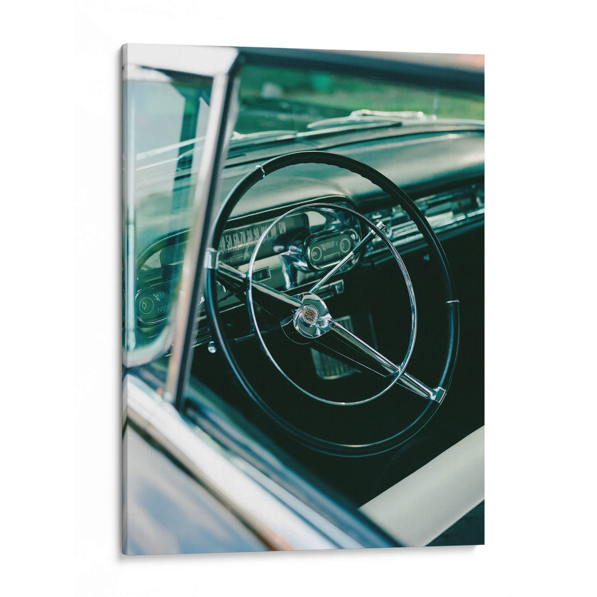 Sumérgete en la nostalgia y la elegancia de la era dorada de la automoción con nuestro cuadro decorativo "Coche Clásico IV", una obra maestra del artista Bethany Young. Esta pieza captura la esencia de un volante de automóvil clásico, invitando a un viaje nostálgico a través de líneas cromadas brillantes y un diseño atemporal. Los profundos tonos oscuros del interior del coche contrastan sutilmente con los reflejos de luz en el volante y el salpicadero, creando una atmósfera de sofisticación y misterio. La paleta de colores, dominada por negros, grises y toques de verde agua, evoca una sensación de calma y lujo, perfecta para complementar espacios que buscan un toque de distinción y personalidad. El estilo fotográfico y la composición centrada en los detalles icónicos de este vehículo clásico lo convierten en un punto focal ideal para salones, estudios u oficinas, añadiendo carácter y una narrativa visual única. "Coche Clásico IV" no es solo una imagen, es una invitación a revivir la historia y el diseño automotriz, transformando cualquier pared en una ventana a otra época. Este cuadro decorativo es perfecto para entusiastas de los coches clásicos, amantes del diseño retro y aquellos que buscan una pieza de arte con un fuerte carácter visual y emocional.