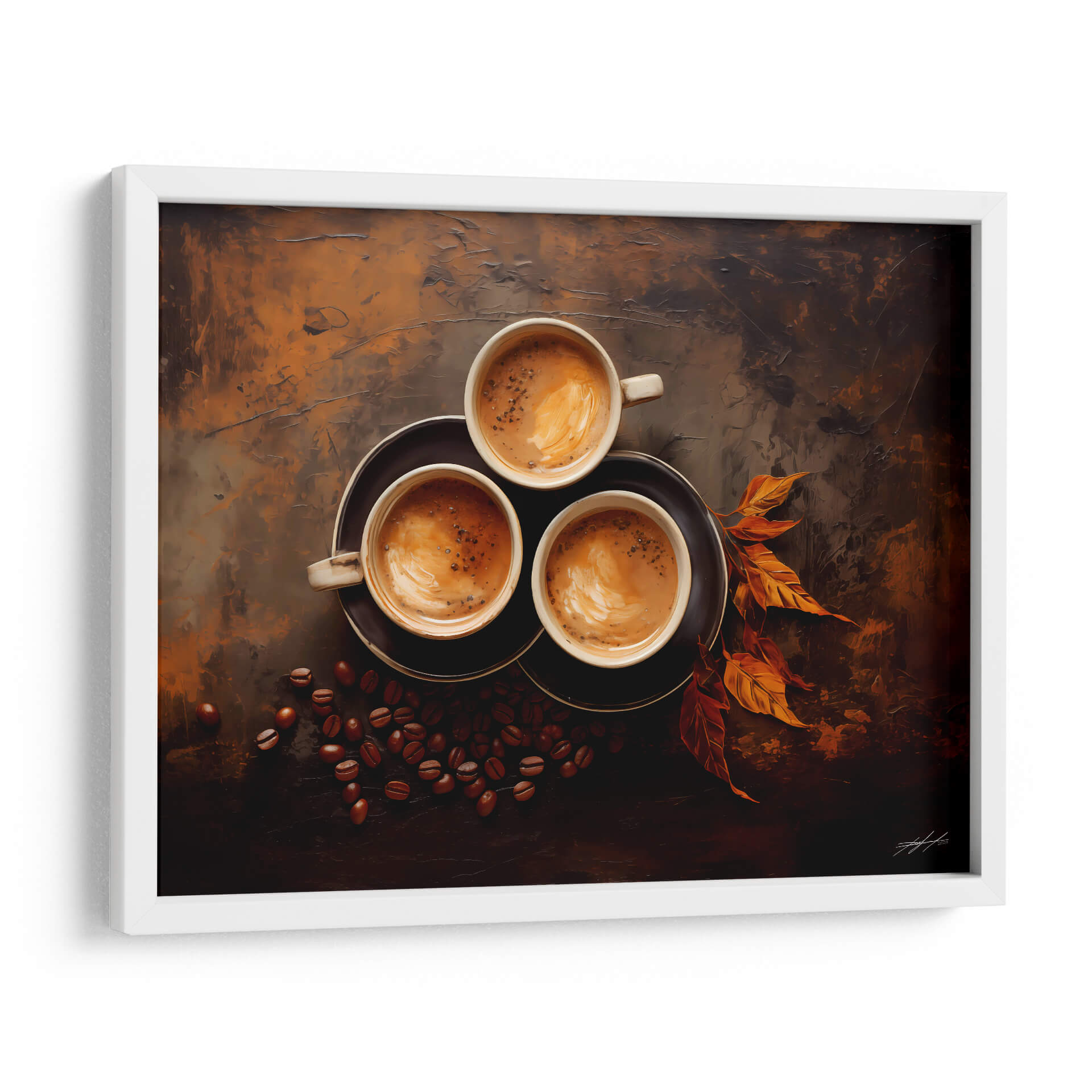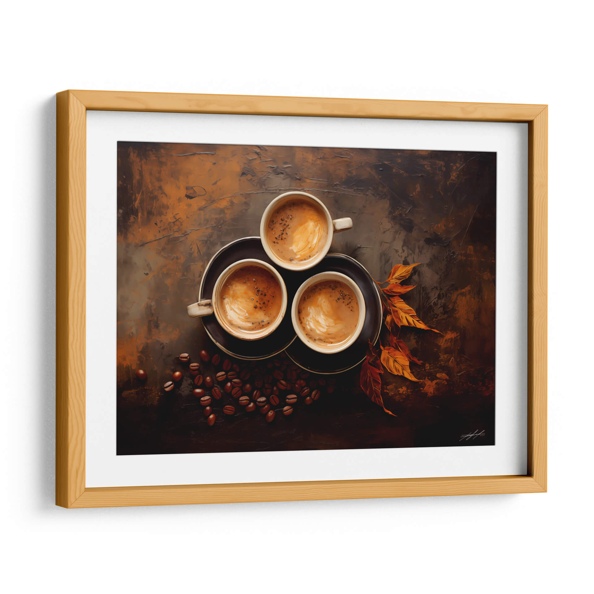 Sumérgete en la calidez y el aroma del café con "Coffee Love - 1", una cautivadora obra de arte que captura la esencia de un momento de placer y reconexión. Este cuadro decorativo presenta una composición íntima de tres tazas de café humeante, dispuestas elegantemente sobre platillos oscuros, rodeadas de granos de café tostados que insinúan una experiencia sensorial completa. La paleta de colores, dominada por ricos tonos tierra, ocres y marrones profundos, evoca una atmósfera acogedora y sofisticada, perfecta para añadir un toque de calidez a cualquier espacio. Las texturas visuales en el fondo, reminiscentes de una superficie rústica o de lienzo pintado a mano, aportan profundidad y un carácter artístico distintivo. Las hojas de otoño, sutilmente integradas, sugieren la estación perfecta para disfrutar de una taza caliente, añadiendo un elemento natural y efímero a la escena. Ideal para cocinas, comedores, cafeterías o cualquier rincón donde se busque crear un ambiente relajante y lleno de encanto, este cuadro es una invitación a saborear los pequeños placeres de la vida. Su estilo realista con toques pictóricos lo convierte en una pieza versátil que complementará tanto decoraciones modernas como rústicas, aportando un punto de interés visual y una sensación de confort. "Coffee Love - 1" no es solo una decoración, es una experiencia que invita a la contemplación y al disfrute.