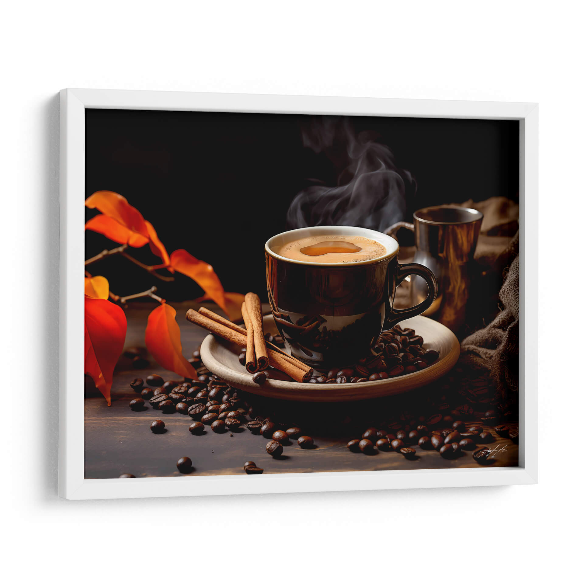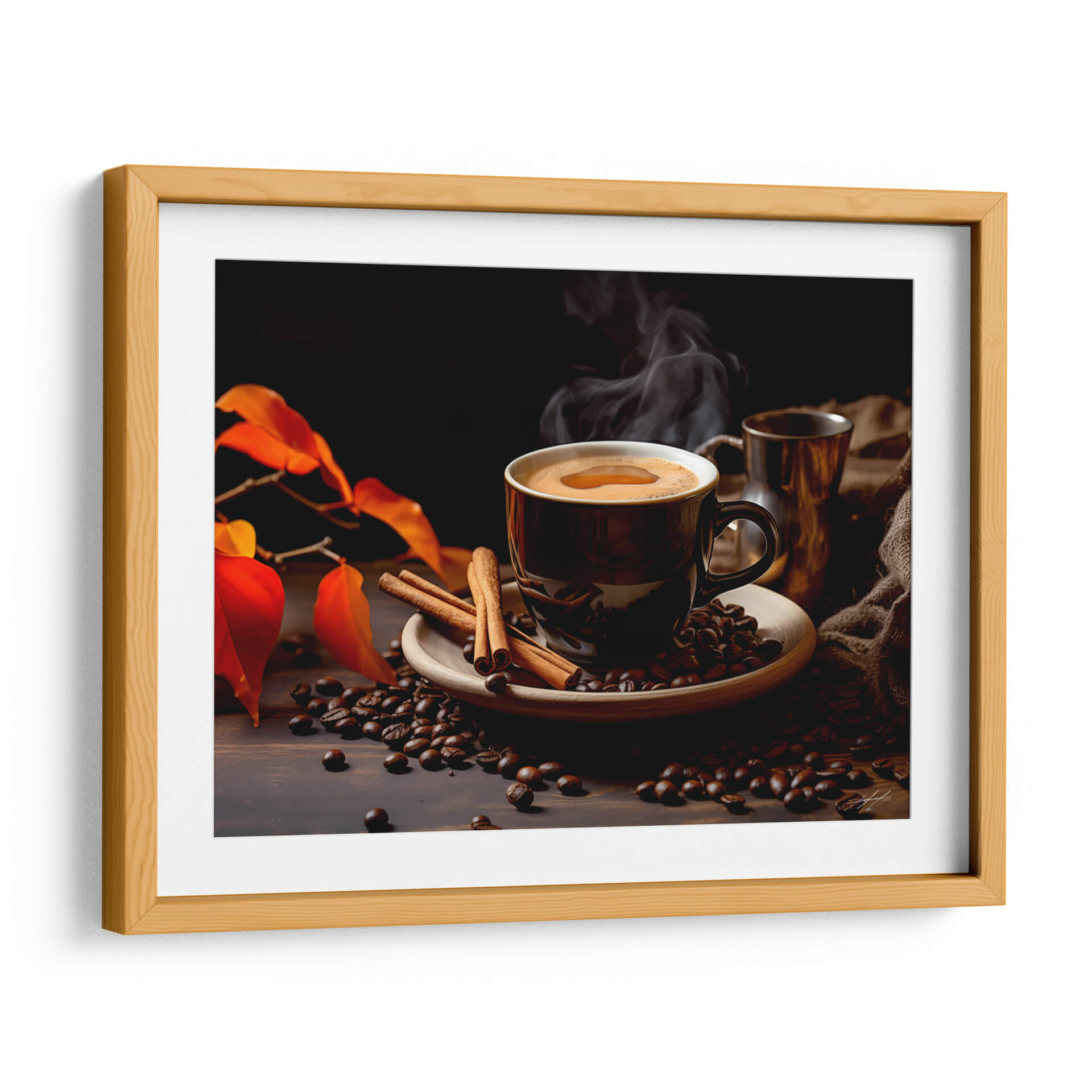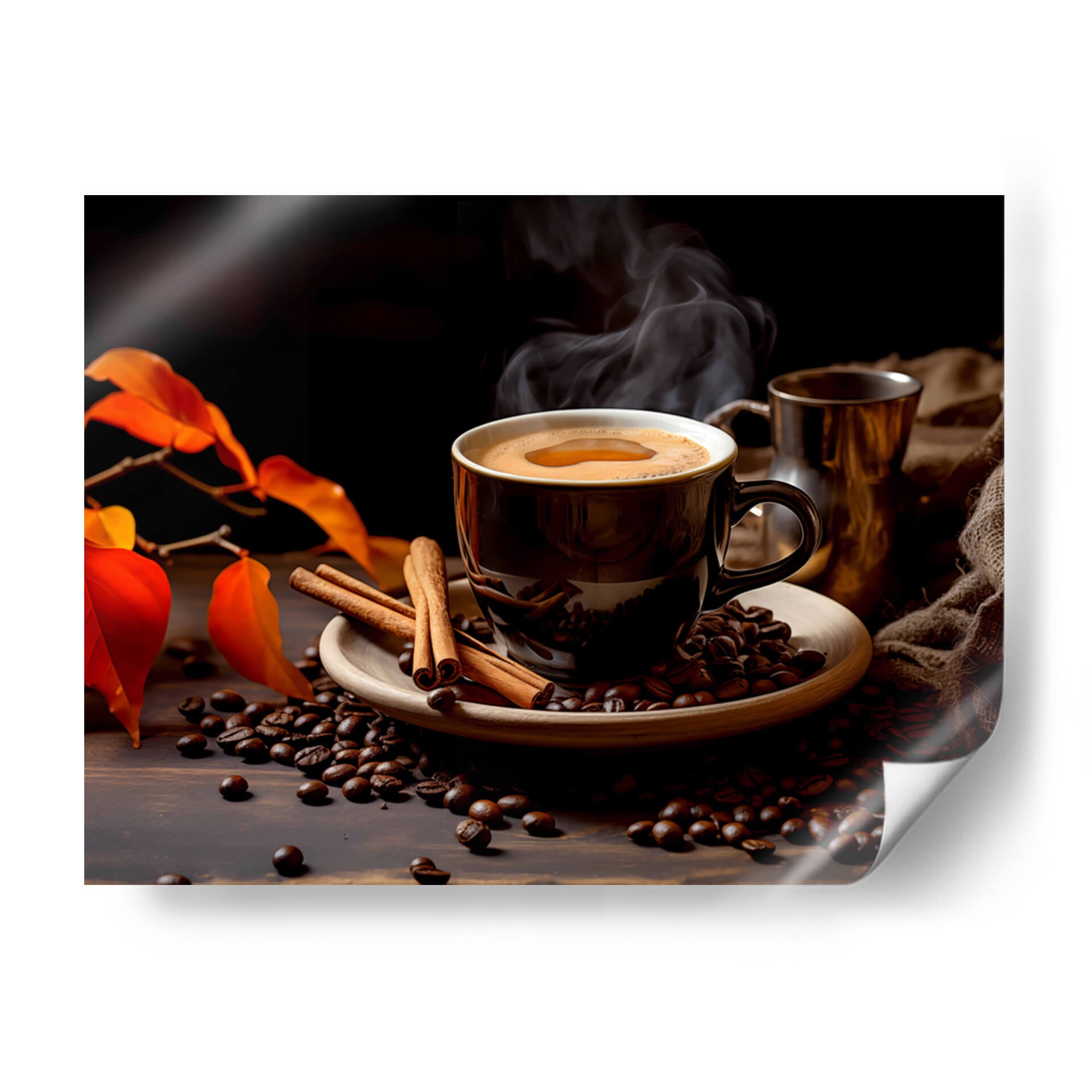 Sumérgete en la calidez y el aroma reconfortante de "Coffee Love - 5", una obra de arte que captura la esencia de un momento íntimo y placentero. Este cuadro decorativo presenta una taza de café humeante, rodeada de granos de café recién tostados y delicados palitos de canela, evocando sensaciones de confort y dedicación. La paleta de colores cálidos, dominada por marrones profundos, tonos ámbar y un toque vibrante de naranja otoñal en las hojas de fondo, crea una atmósfera acogedora y serena. La iluminación dramática resalta las texturas ricas, desde el vapor ascendente hasta la superficie del café y el grano de café, añadiendo una dimensión visual cautivadora. El estilo fotográfico y detallado de la composición hace que esta pieza sea ideal para espacios donde se busca crear un ambiente de tranquilidad y disfrute. Perfecta para cocinas, comedores, cafeterías o cualquier rincón que necesite un toque de calidez y sofisticación. Deja que "Coffee Love - 5" despierte tus sentidos y añada un punto focal exquisito a tu decoración, invitando a la pausa y al placer.