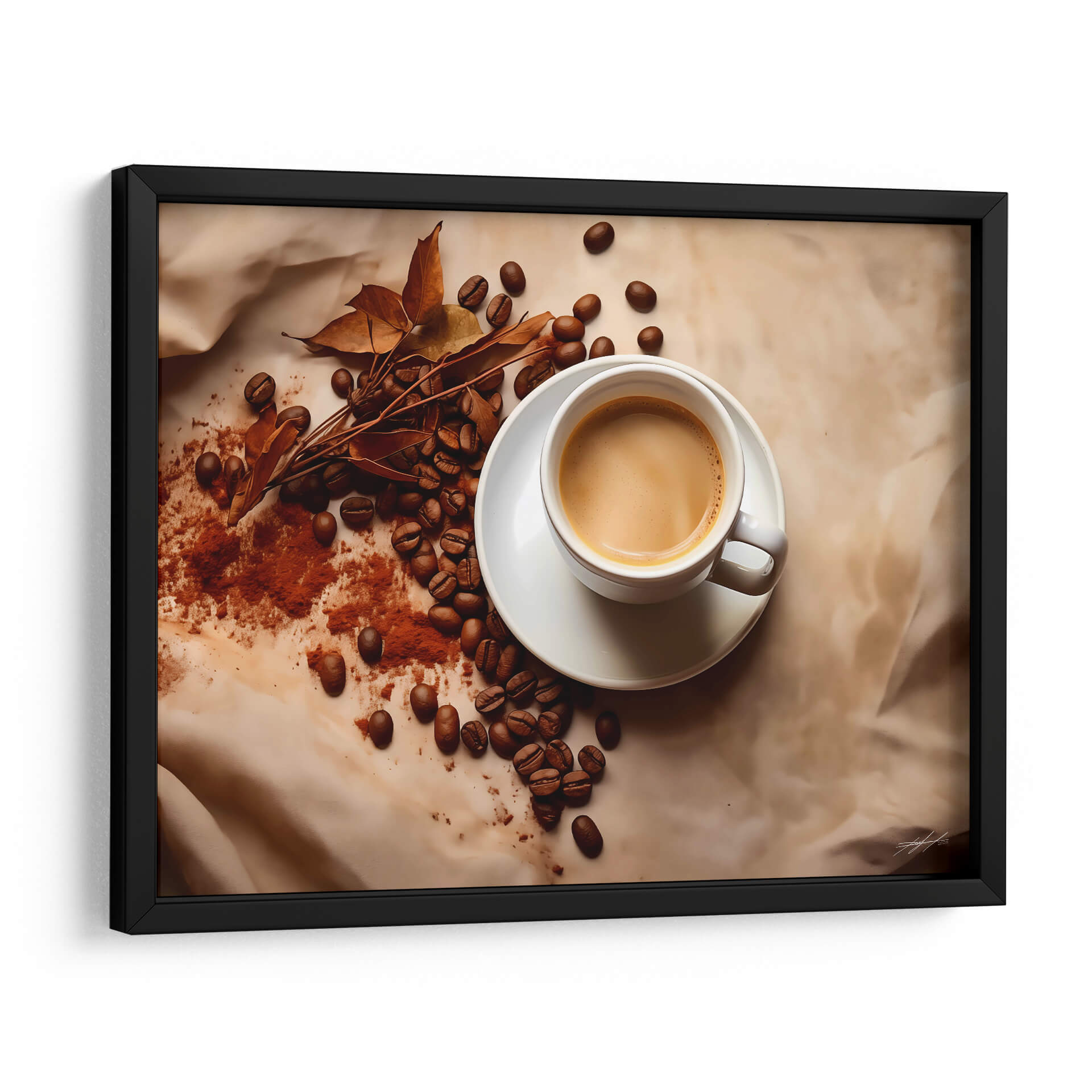 Sumérgete en la calidez y el aroma reconfortante de "Coffee Love - 9", una obra de arte decorativo que captura la esencia de un momento de placer. Este cuadro muestra una taza de café humeante, presentada con delicadeza sobre un platillo blanco, rodeada por granos de café tostados y un toque de canela o cacao en polvo. La composición, con sus tonos tierra y marrones cálidos, evoca una sensación de confort y serenidad, perfecta para iniciar el día o disfrutar de una pausa relajante. Las hojas secas y las ramas añaden un toque rústico y natural, creando una atmósfera acogedora y sofisticada. Ideal para cocinas, comedores, cafeterías o cualquier espacio donde se desee añadir un elemento de calidez y estilo. "Coffee Love - 9" no es solo una pieza decorativa, sino una invitación a disfrutar de los pequeños placeres de la vida, transformada en arte para tu hogar u oficina. Su estilo realista y detallado, junto con una iluminación suave, resalta la textura de los granos y la cremosidad del café, haciendo que la obra sea visualmente atractiva y emocionalmente resonante. Añade un toque de sofisticación y calidez a tu decoración con este hermoso cuadro.