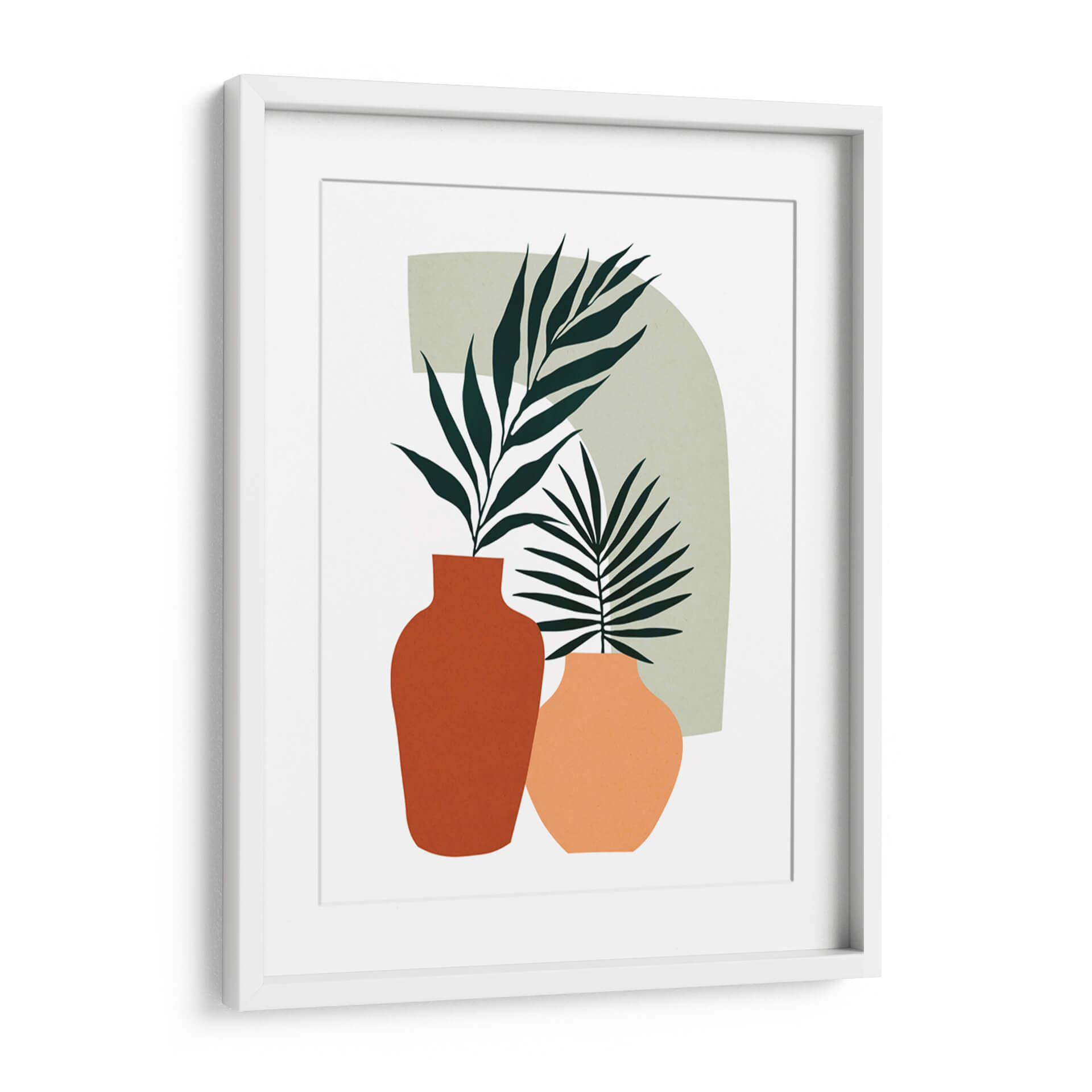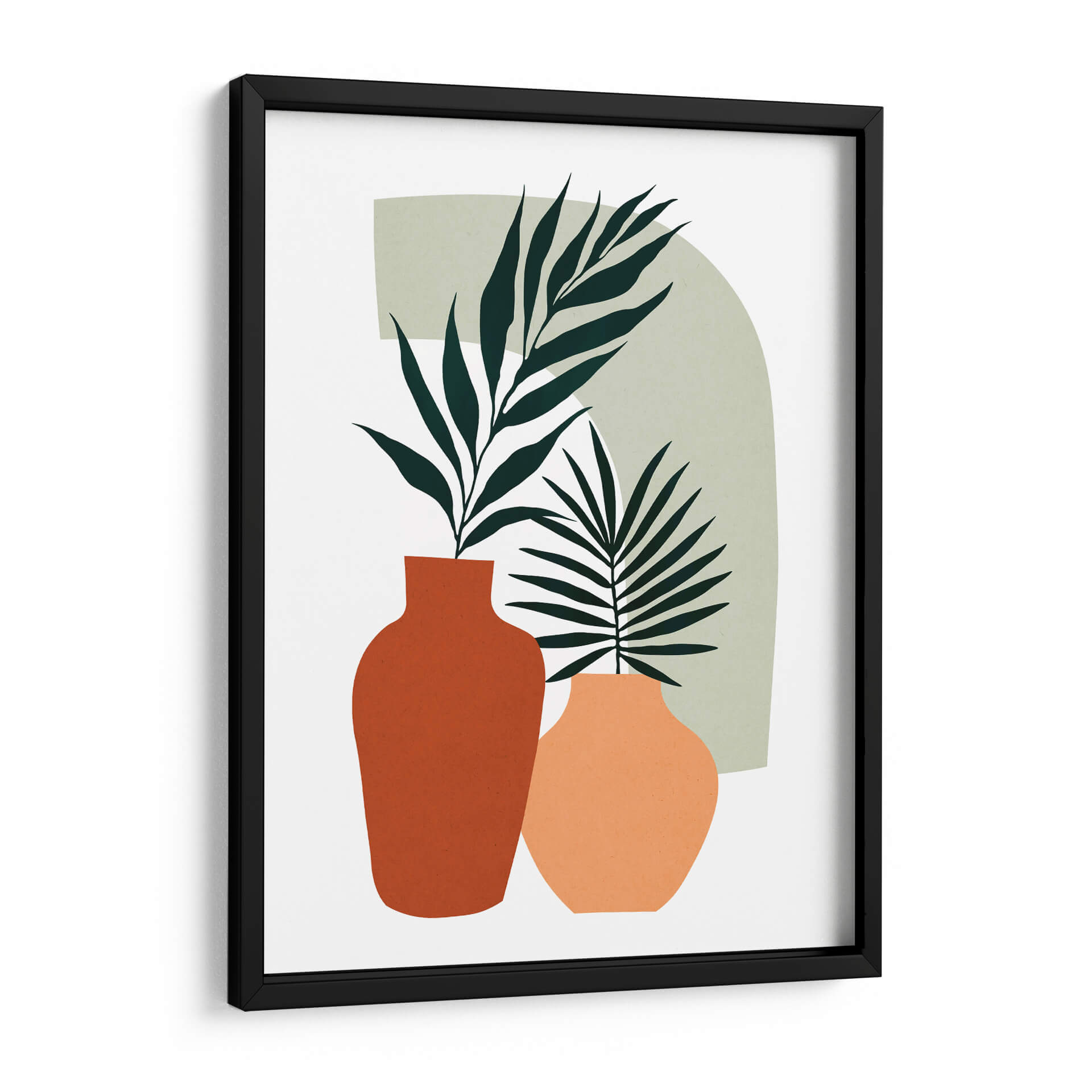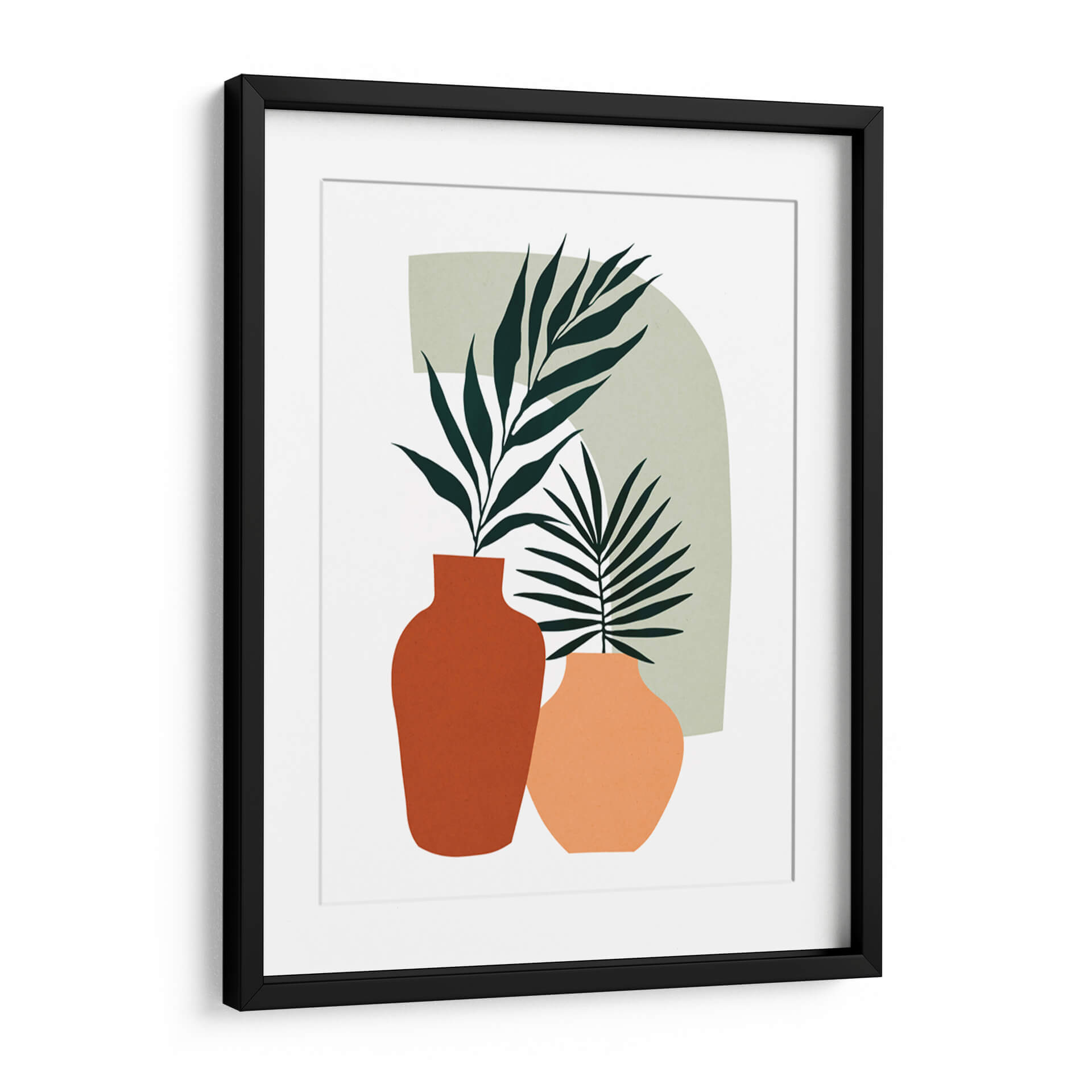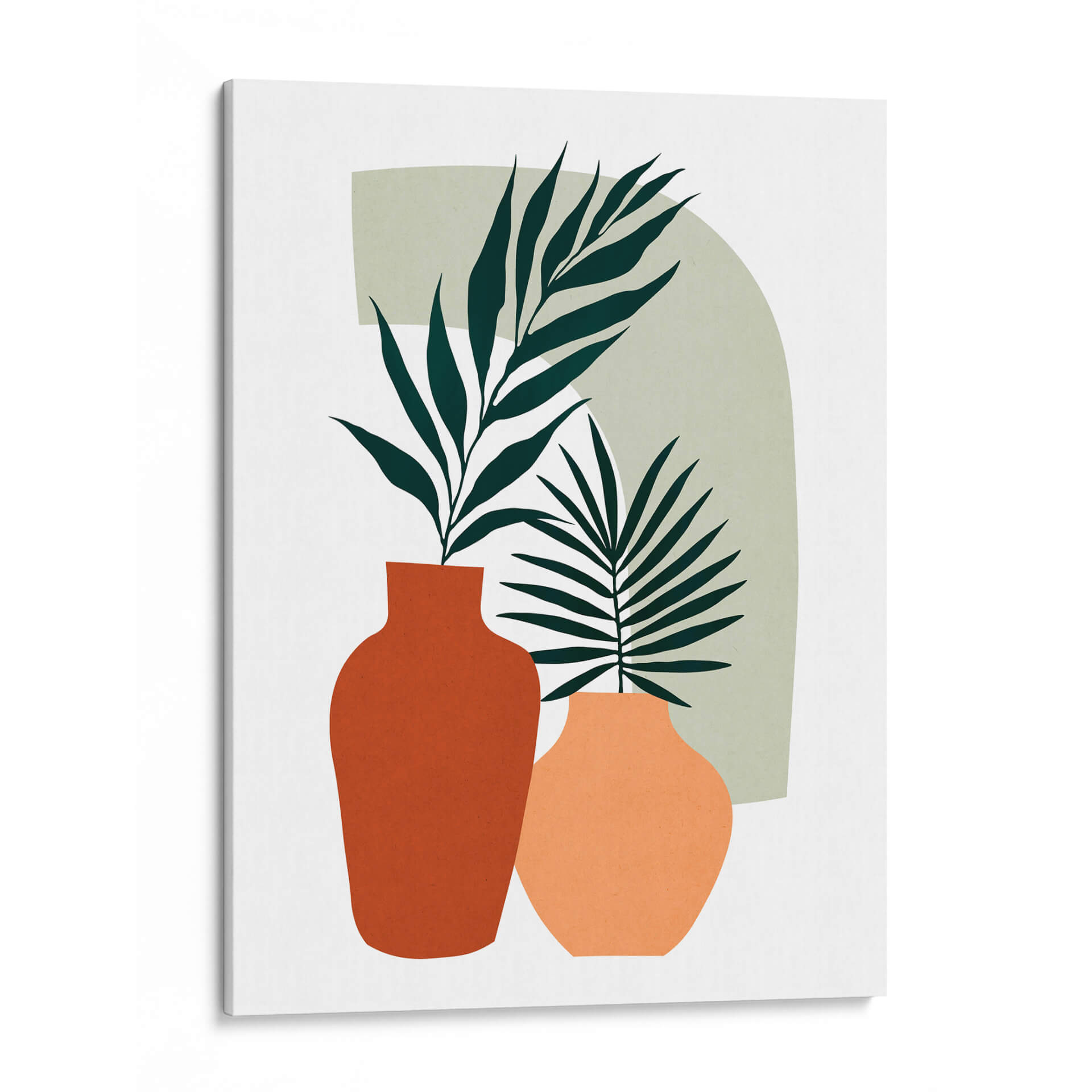 Transforma tu espacio con la cautivadora 'Composición floral 10' de Vitor Costa, una obra de arte moderno que fusiona la serenidad de la naturaleza con la audacia del diseño contemporáneo. Este cuadro decorativo presenta dos jarrones estilizados, uno en un vibrante tono terracota y otro en un suave melocotón, que albergan delicadas hojas de palmera en un profundo verde esmeralda. La composición se complementa con formas abstractas suaves en tonos arena y verde salvia, creando una armonía visual que evoca calma y sofisticación. La paleta de colores cálidos y terrosos, junto con el verde exuberante, aporta una sensación de conexión con la naturaleza, ideal para infundir tranquilidad en cualquier ambiente. Su estilo minimalista y escandinavo lo convierte en una pieza versátil, perfecta para salones, dormitorios, oficinas o estudios, añadiendo un toque de elegancia natural y un punto focal distintivo. Imagina cómo esta pieza puede elevar la atmósfera de tu hogar, brindando una sensación de paz y un acento de diseño moderno. "Composición floral 10" no es solo una decoración, sino una invitación a la contemplación y al bienestar.