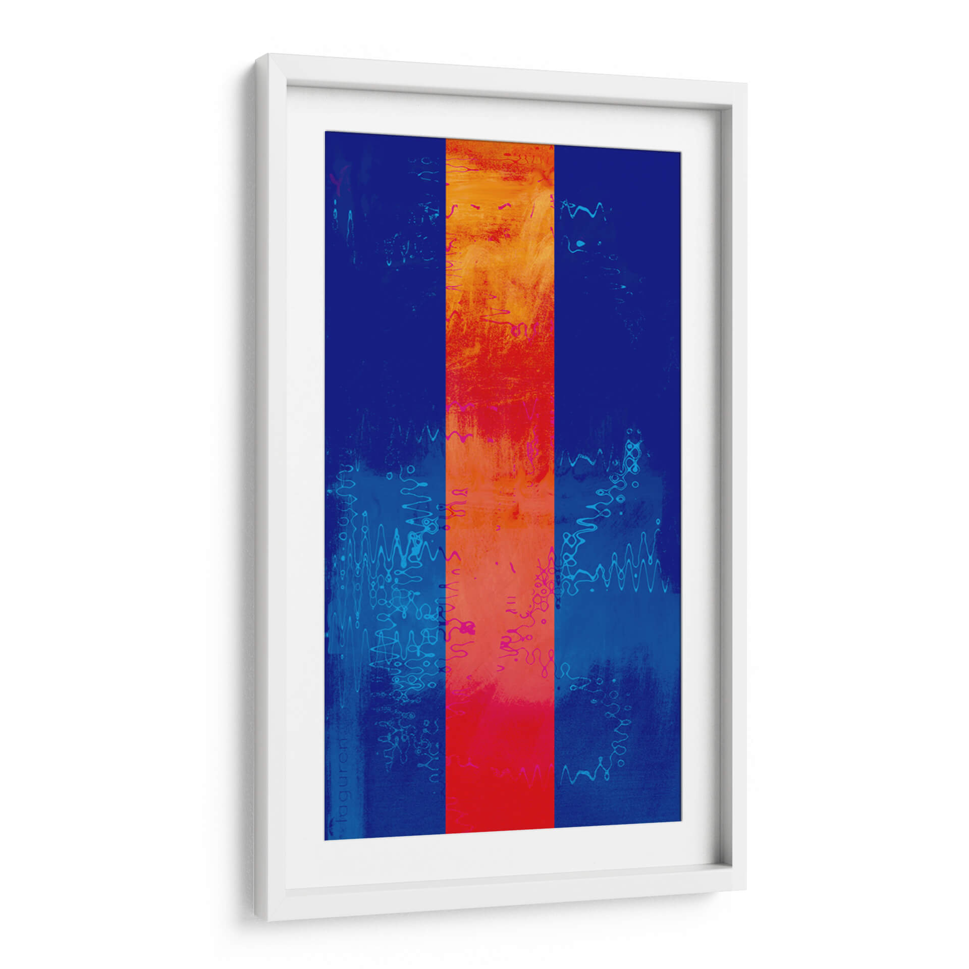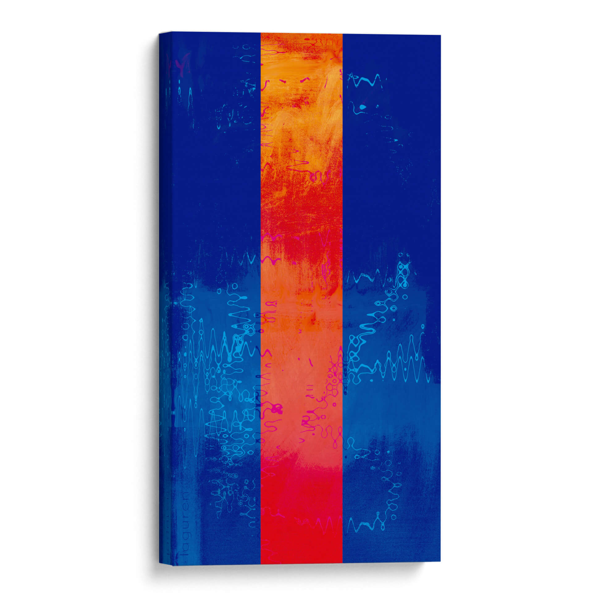 Sumérgete en la vibrante abstracción de "Cosas sin importancia #3", una obra de arte contemporáneo que desafía las convenciones y estimula la imaginación. Este cuadro decorativo se caracteriza por su audaz composición vertical, dominada por profundos tonos de azul que contrastan dramáticamente con una franja central de intensos naranjas y rojos. La textura rica y las pinceladas visibles en la zona central sugieren un dinamismo y una energía palpable, mientras que los sutiles patrones ondulados y las formas orgánicas que adornan los laterales azules añaden un toque de misterio y complejidad. La paleta de colores, que oscila entre la serenidad profunda del azul y la pasión ardiente del rojo y naranja, crea una tensión visual cautivadora. "Cosas sin importancia #3" es una pieza versátil, ideal para inyectar carácter y un toque de arte moderno a cualquier espacio, ya sea una sala de estar, un estudio o una oficina. Su estilo abstracto y contemporáneo la convierte en un punto focal perfecto para quienes buscan una decoración de pared que provoque conversación y refleje una personalidad audaz y creativa. Permite que esta obra maestra de LAGUREN inspire tu entorno con su estética única y su profundidad emocional, transformando tu hogar en una galería personal.