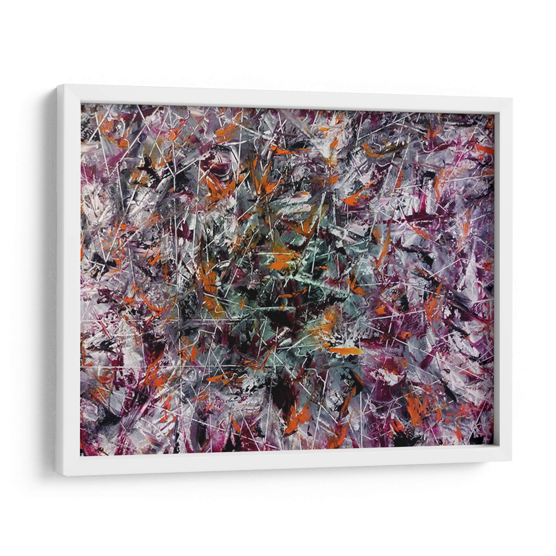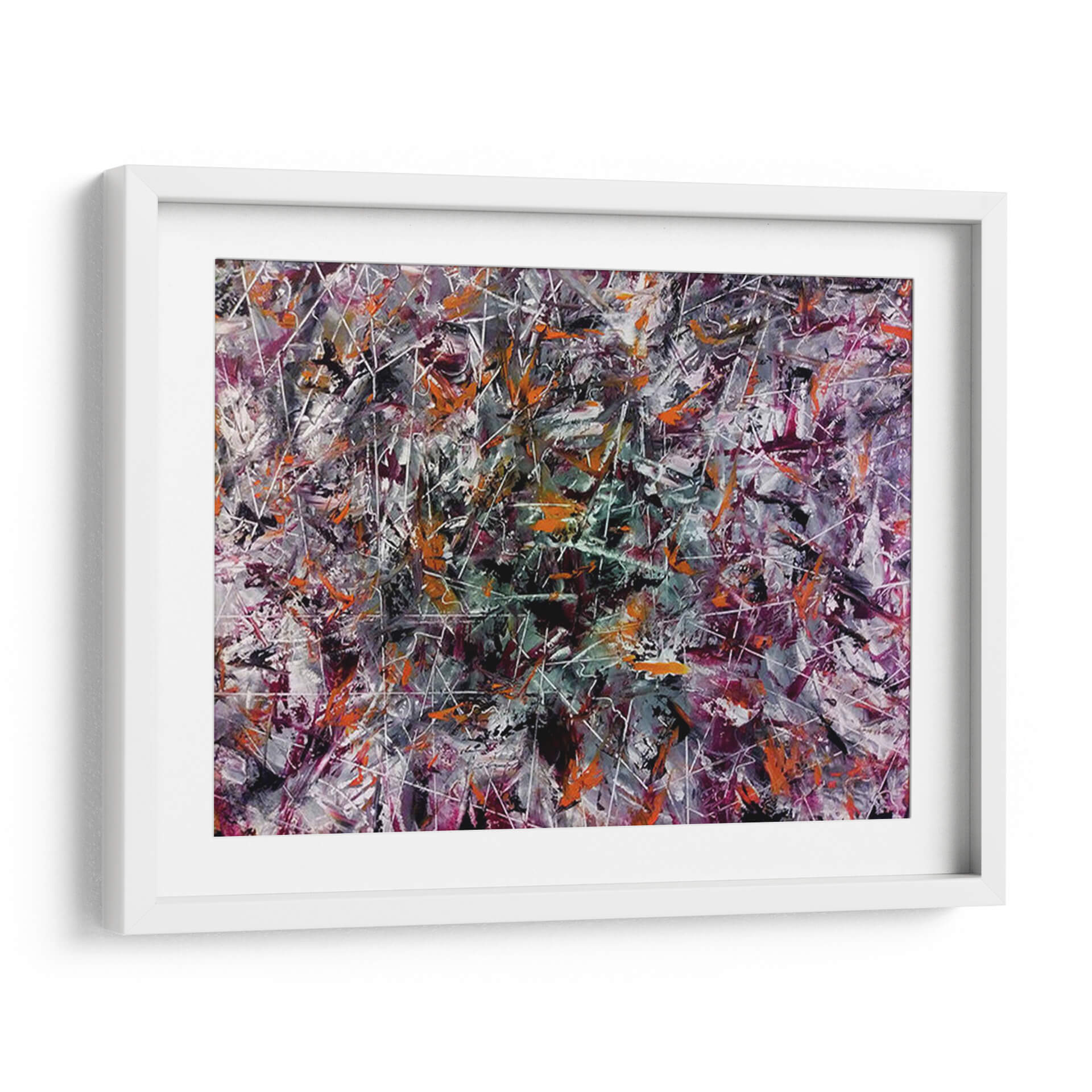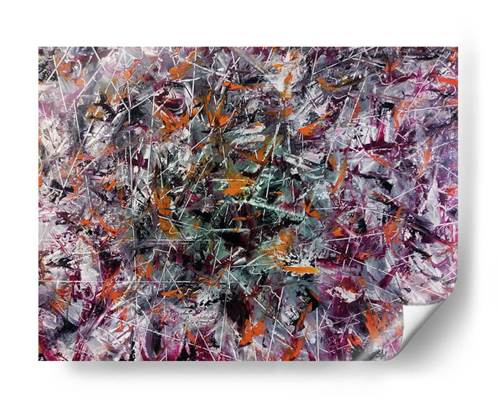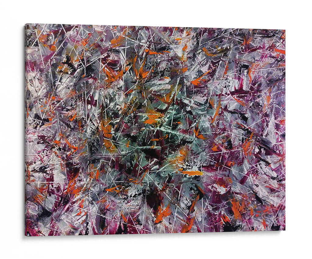 Adéntrate en un universo de explosión creativa con este vibrante cuadro decorativo abstracto, titulado "Creatividad" y obra del artista Mason. La pieza es una danza enérgica de colores y formas, donde pinceladas audaces en tonos naranjas, púrpuras profundos, grises intensos y blancos nítidos se entrelazan con finas líneas blancas que crean una sensación de movimiento y profundidad. La composición, rica en texturas y capas, evoca una atmósfera de dinamismo y pensamiento innovador. Es una obra que invita a la contemplación, estimulando la imaginación y añadiendo un toque de arte contemporáneo audaz a cualquier espacio. Ideal para oficinas, estudios o salas de estar modernas, este cuadro decorativo abstracto actúa como un catalizador visual, promoviendo la originalidad y la energía.