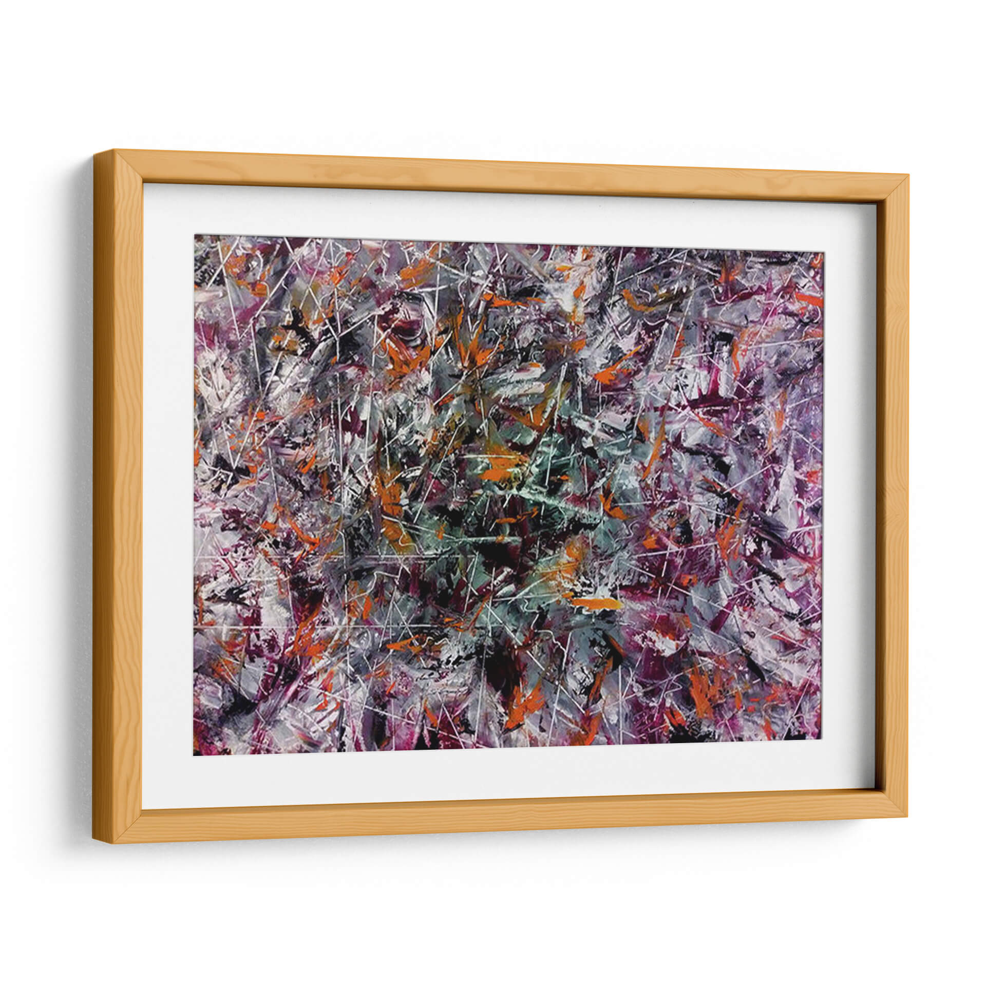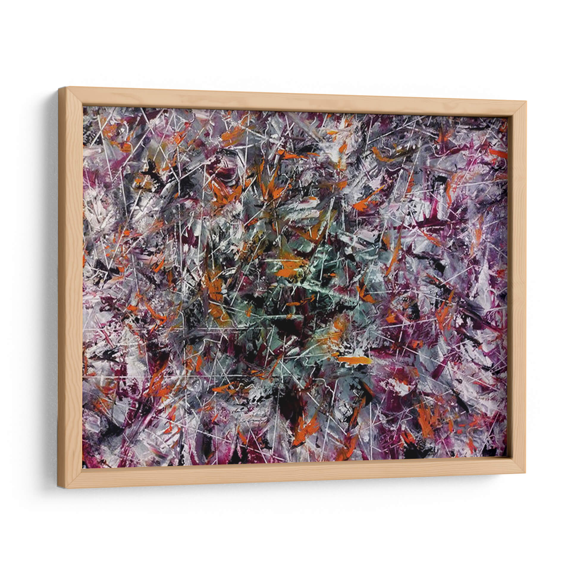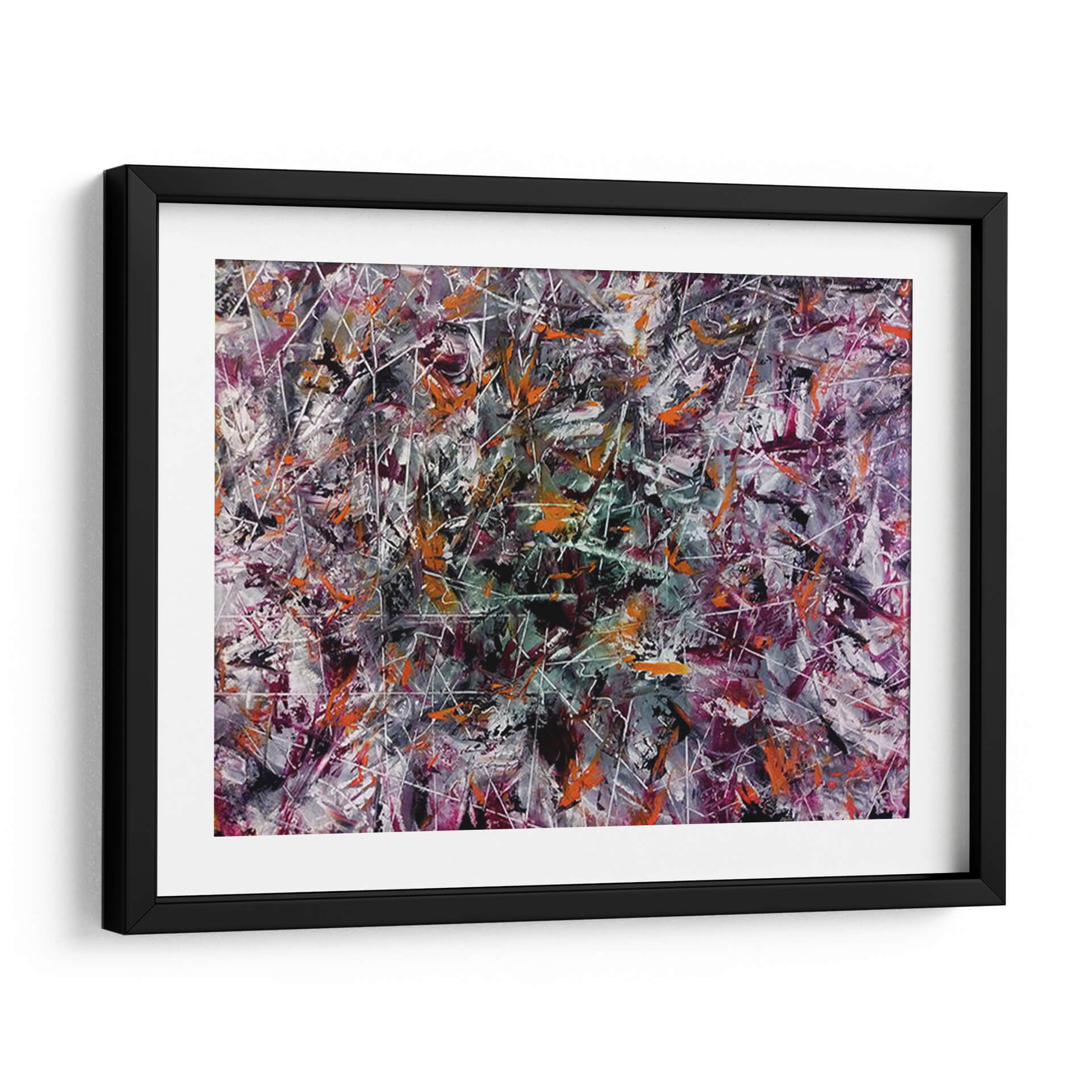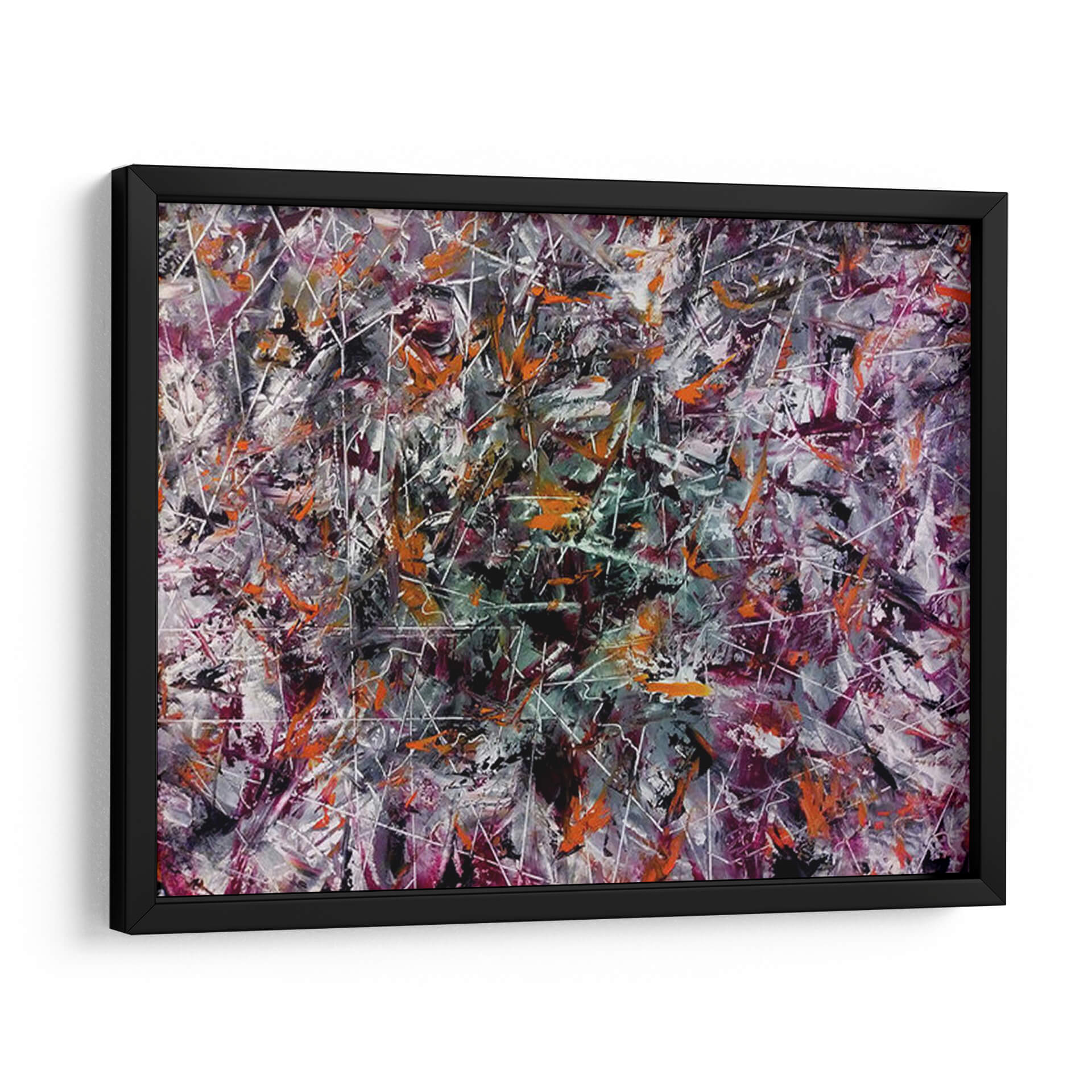 Adéntrate en un universo de explosión creativa con este vibrante cuadro decorativo abstracto, titulado "Creatividad" y obra del artista Mason. La pieza es una danza enérgica de colores y formas, donde pinceladas audaces en tonos naranjas, púrpuras profundos, grises intensos y blancos nítidos se entrelazan con finas líneas blancas que crean una sensación de movimiento y profundidad. La composición, rica en texturas y capas, evoca una atmósfera de dinamismo y pensamiento innovador. Es una obra que invita a la contemplación, estimulando la imaginación y añadiendo un toque de arte contemporáneo audaz a cualquier espacio. Ideal para oficinas, estudios o salas de estar modernas, este cuadro decorativo abstracto actúa como un catalizador visual, promoviendo la originalidad y la energía.