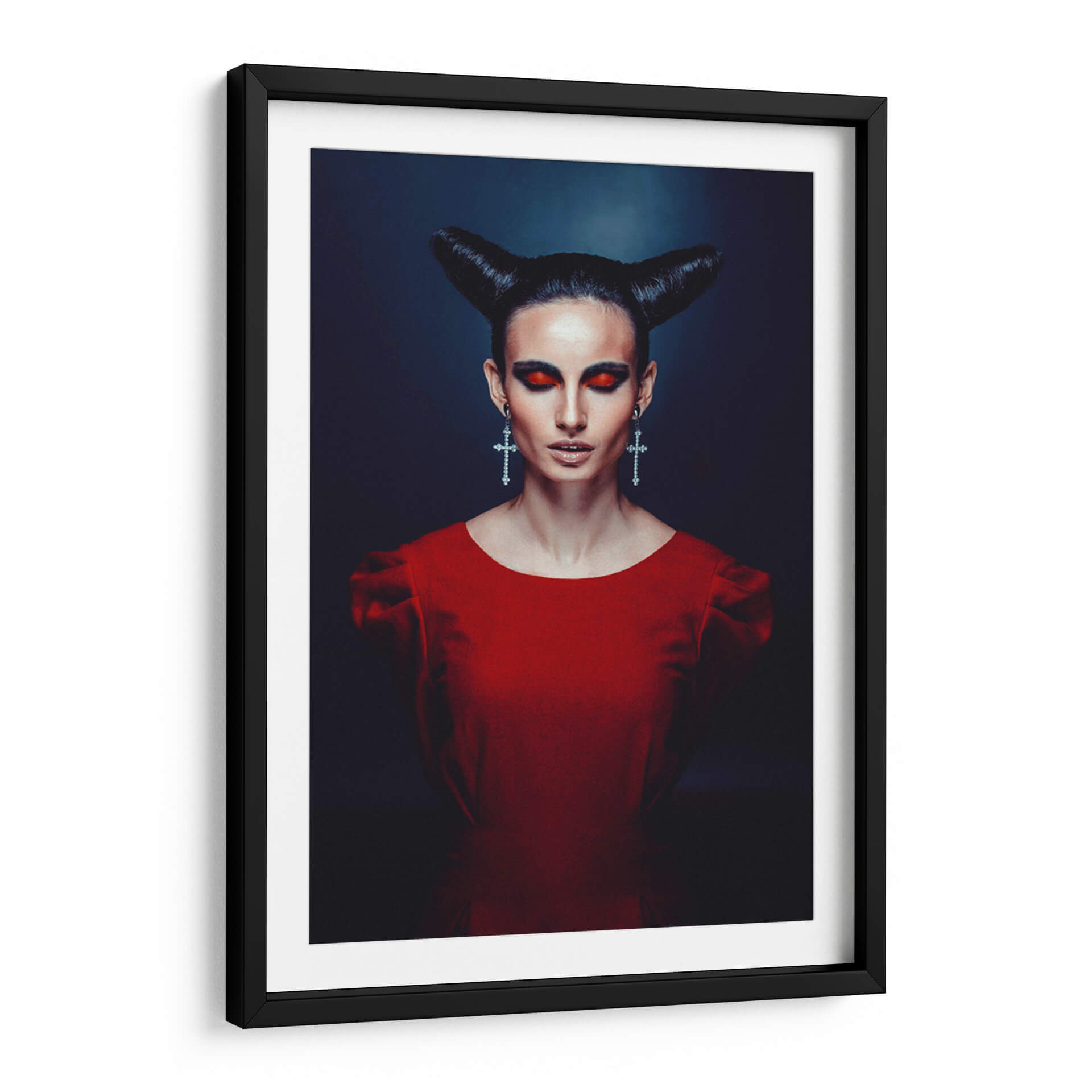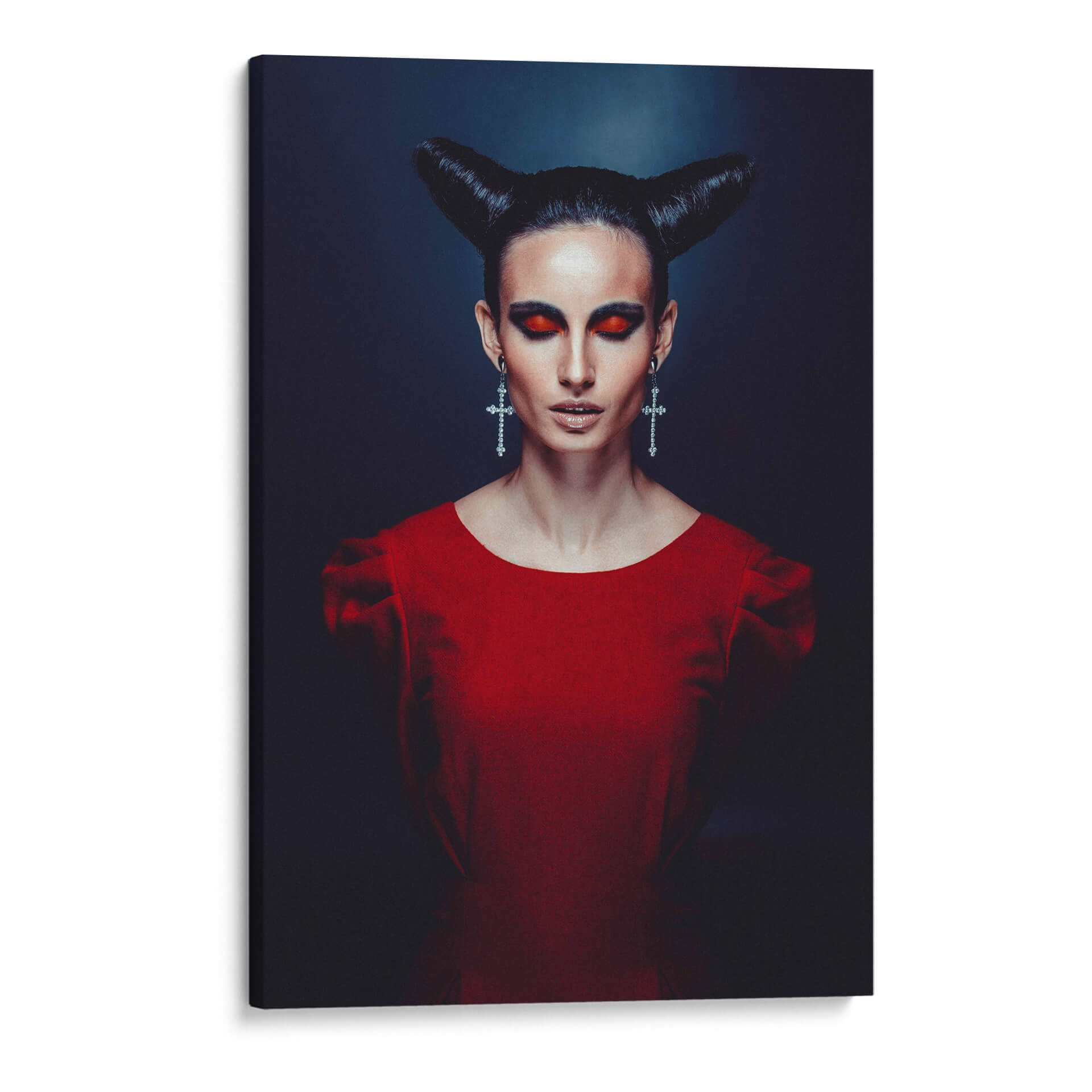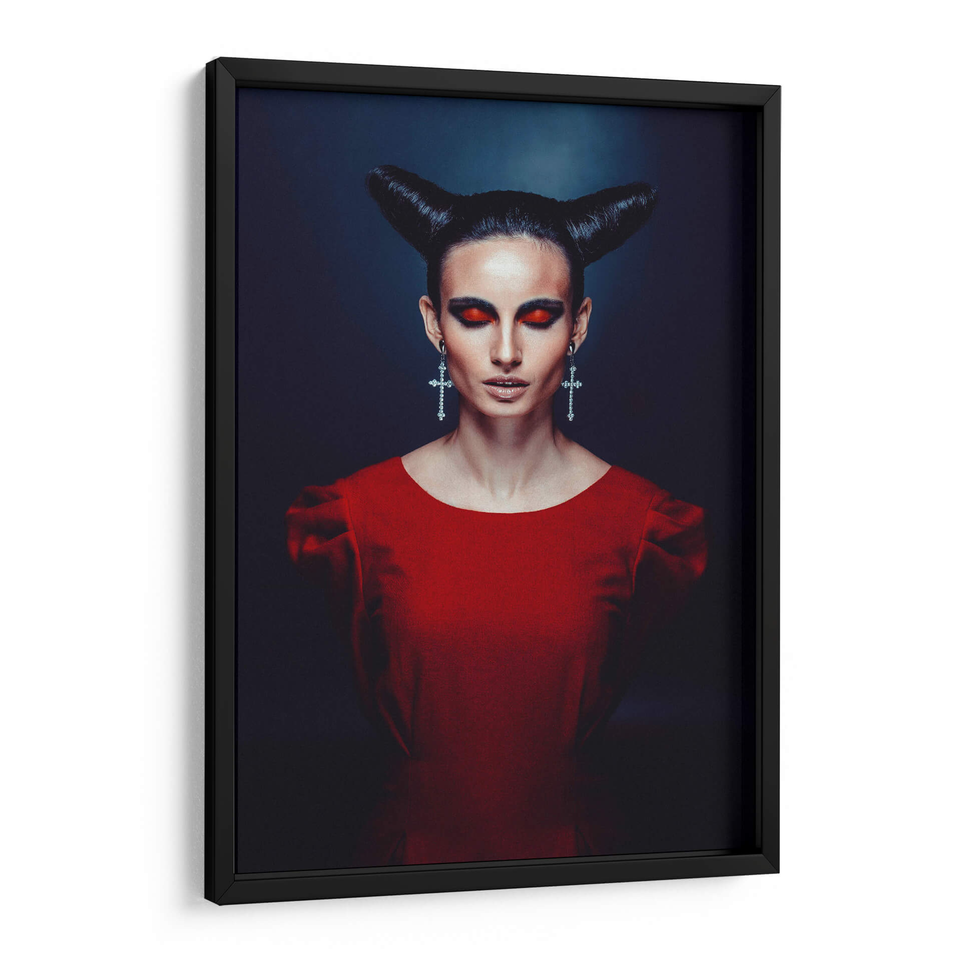 Sumérgete en la intensidad y el misterio de "Demonio en su Corazón", una obra de arte digital cautivadora del artista Alexandr Sutula. Esta pieza presenta un retrato en primer plano de una figura femenina con una mirada penetrante y maquillaje dramático en tonos rojos vibrantes que contrastan con el fondo oscuro y sombrío. Su peinado distintivo, que evoca cuernos o alas, junto con los pendientes en forma de cruz, añade un toque enigmático y poderoso a la composición. El vestido rojo pasión de la figura central irradia una energía audaz, creando un punto focal impactante. El juego de luces y sombras resalta la textura y la profundidad, dotando a la obra de una atmósfera casi teatral. "Demonio en su Corazón" es ideal para aquellos que buscan añadir un elemento de intriga y sofisticación a su decoración, transformando cualquier espacio, ya sea una sala de estar moderna, un estudio o una oficina, en una declaración de estilo audaz y contemporáneo. Este cuadro decorativo invita a la reflexión sobre la dualidad y la fuerza interior, convirtiéndose en una pieza de conversación fascinante para tu hogar u oficina.