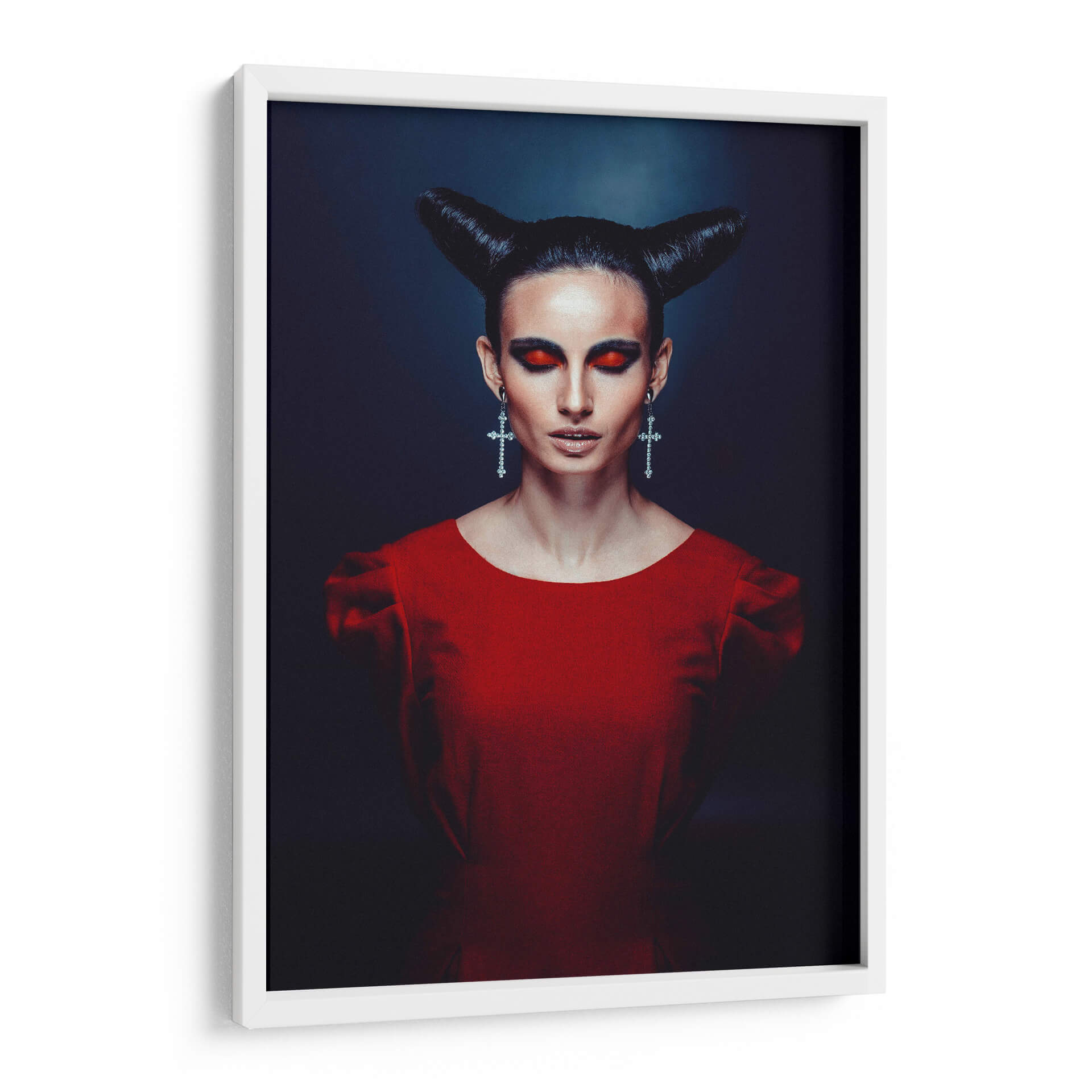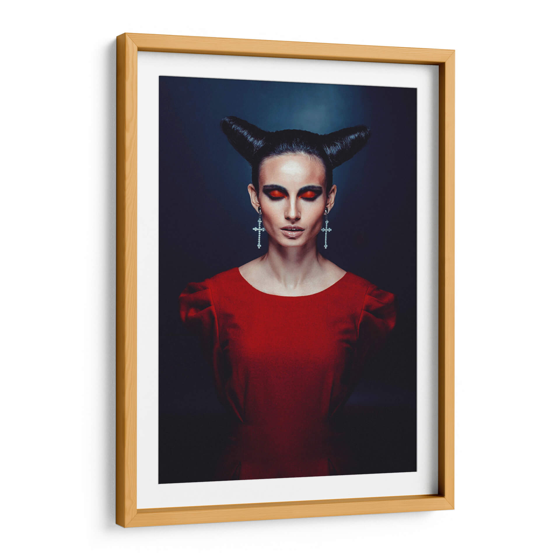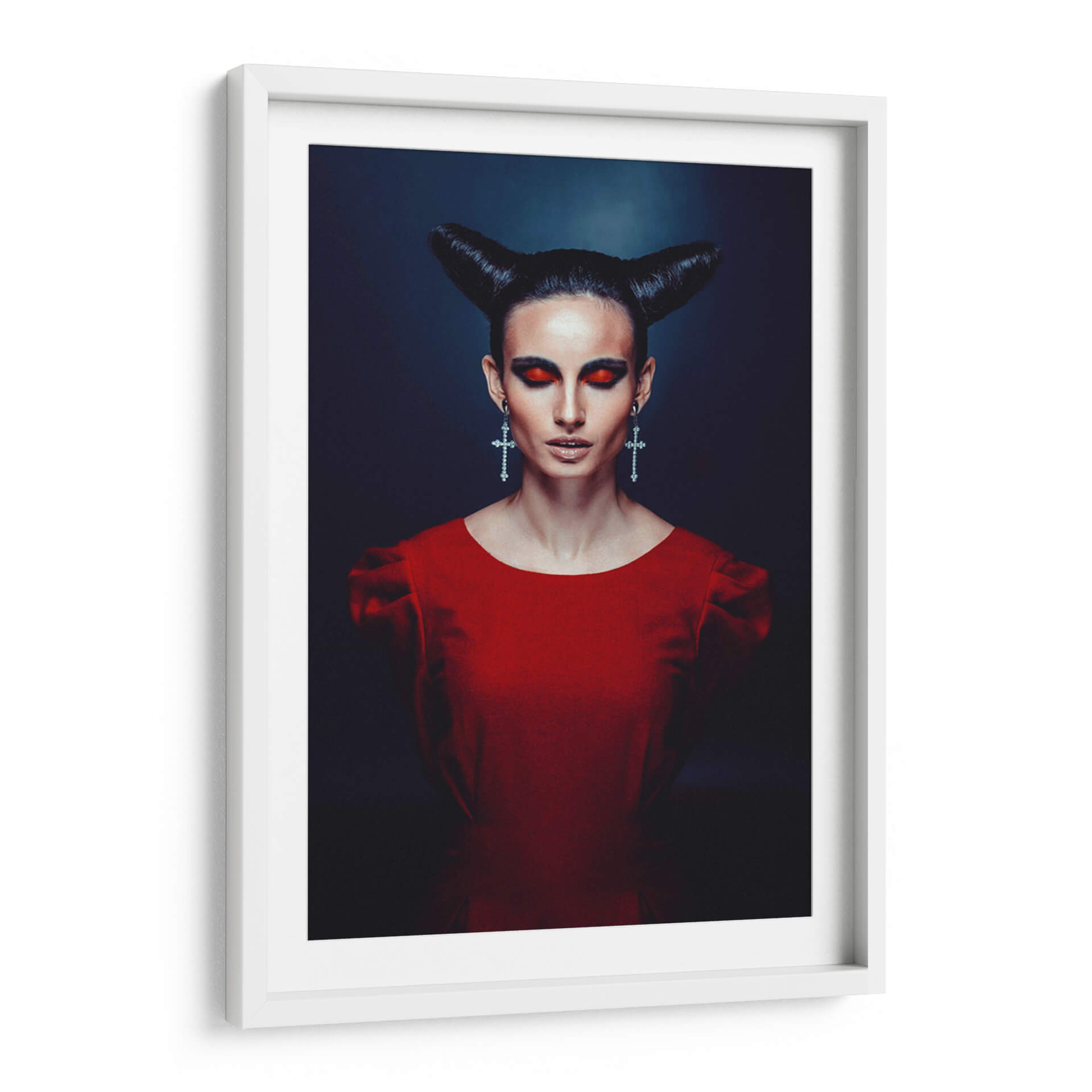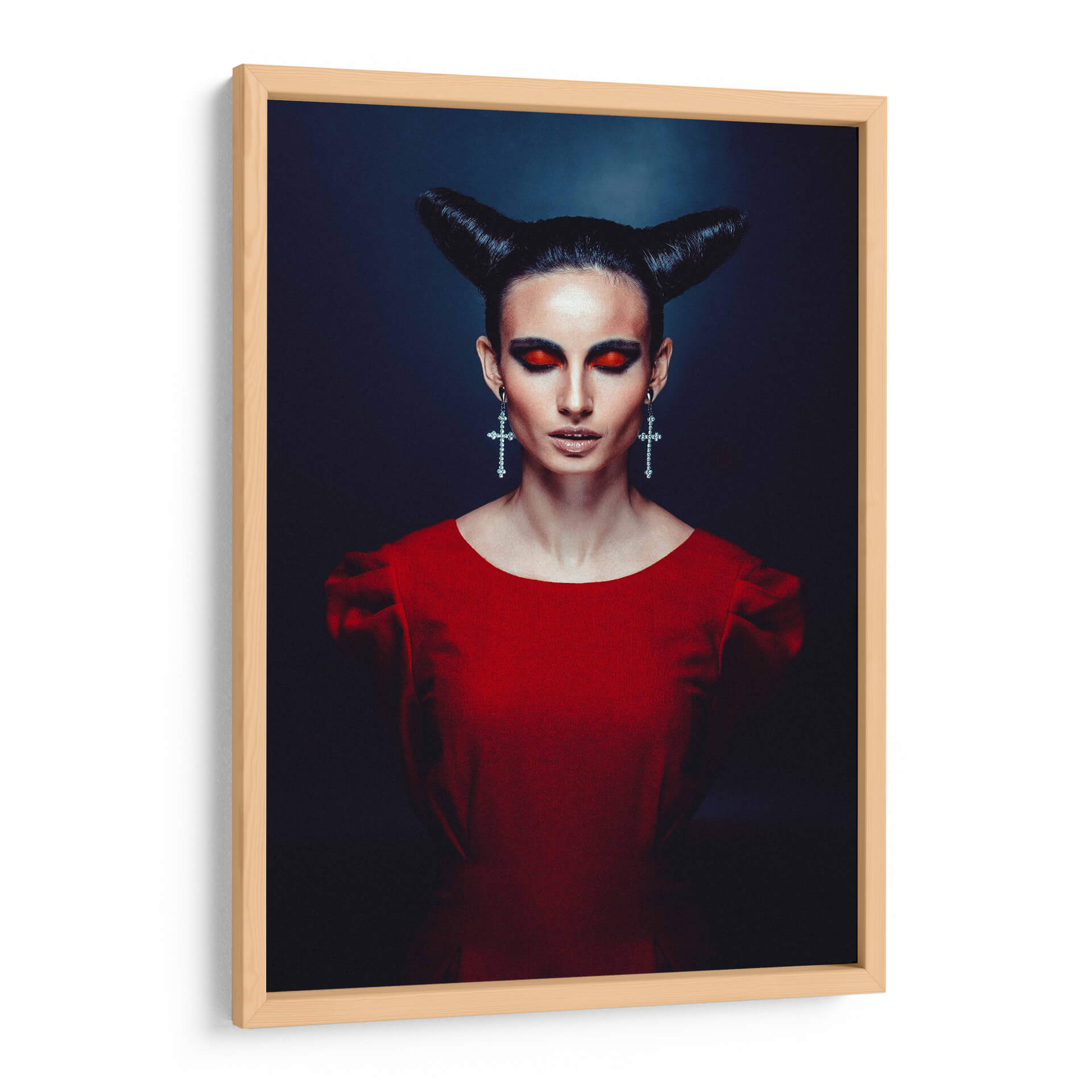 Sumérgete en la intensidad y el misterio de "Demonio en su Corazón", una obra de arte digital cautivadora del artista Alexandr Sutula. Esta pieza presenta un retrato en primer plano de una figura femenina con una mirada penetrante y maquillaje dramático en tonos rojos vibrantes que contrastan con el fondo oscuro y sombrío. Su peinado distintivo, que evoca cuernos o alas, junto con los pendientes en forma de cruz, añade un toque enigmático y poderoso a la composición. El vestido rojo pasión de la figura central irradia una energía audaz, creando un punto focal impactante. El juego de luces y sombras resalta la textura y la profundidad, dotando a la obra de una atmósfera casi teatral. "Demonio en su Corazón" es ideal para aquellos que buscan añadir un elemento de intriga y sofisticación a su decoración, transformando cualquier espacio, ya sea una sala de estar moderna, un estudio o una oficina, en una declaración de estilo audaz y contemporáneo. Este cuadro decorativo invita a la reflexión sobre la dualidad y la fuerza interior, convirtiéndose en una pieza de conversación fascinante para tu hogar u oficina.